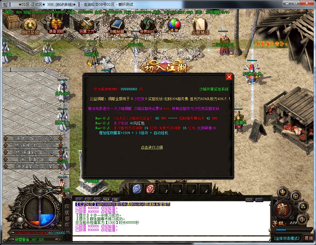 拿沙奖励:2000W元宝 +1666红包+全体沙成员增加0.2倍暴率!!