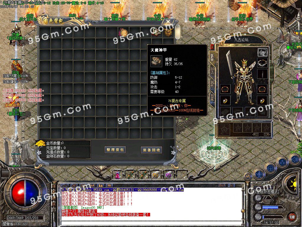 为支持游戏服务器开销,特定制3个礼包,再无其它消费,请土城充值回馈NPC查看,属性强大 !