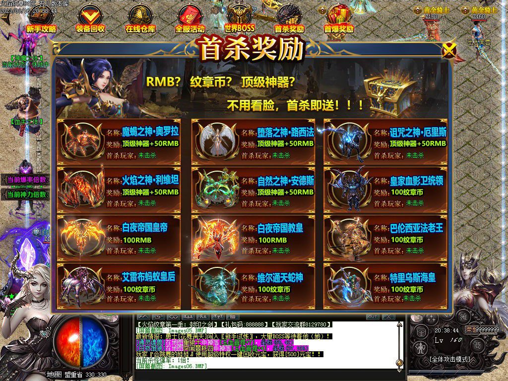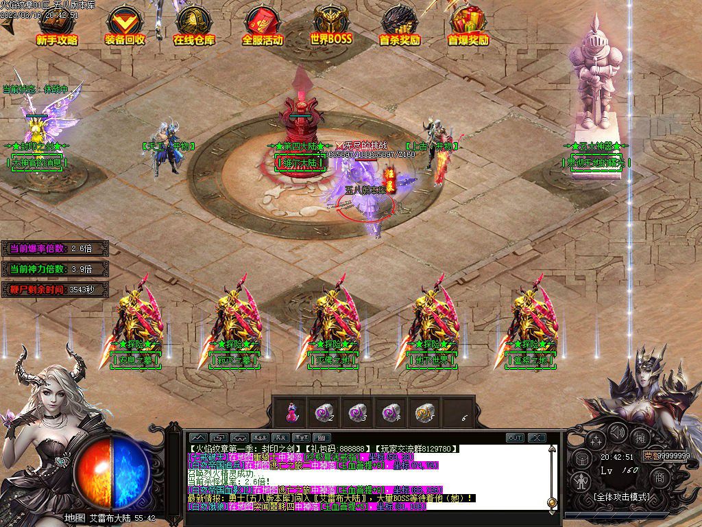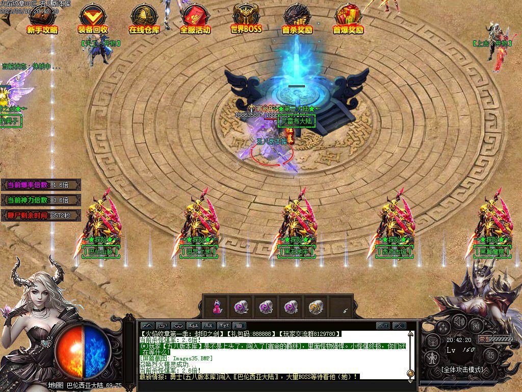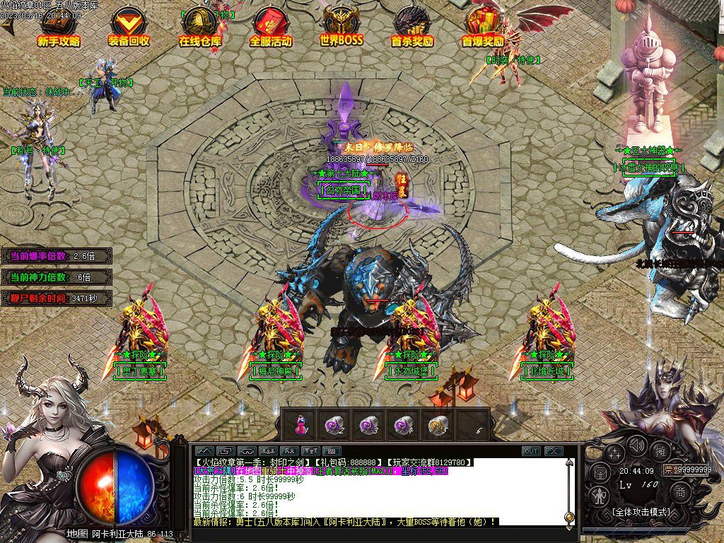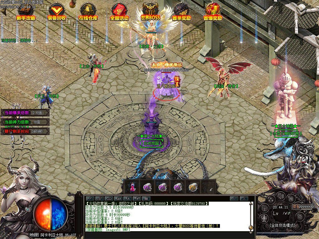 第六大陆阿卡利亚百层塔专爆十二生肖,五大神器地图BOSS首杀不但奖励米,而且必爆神器