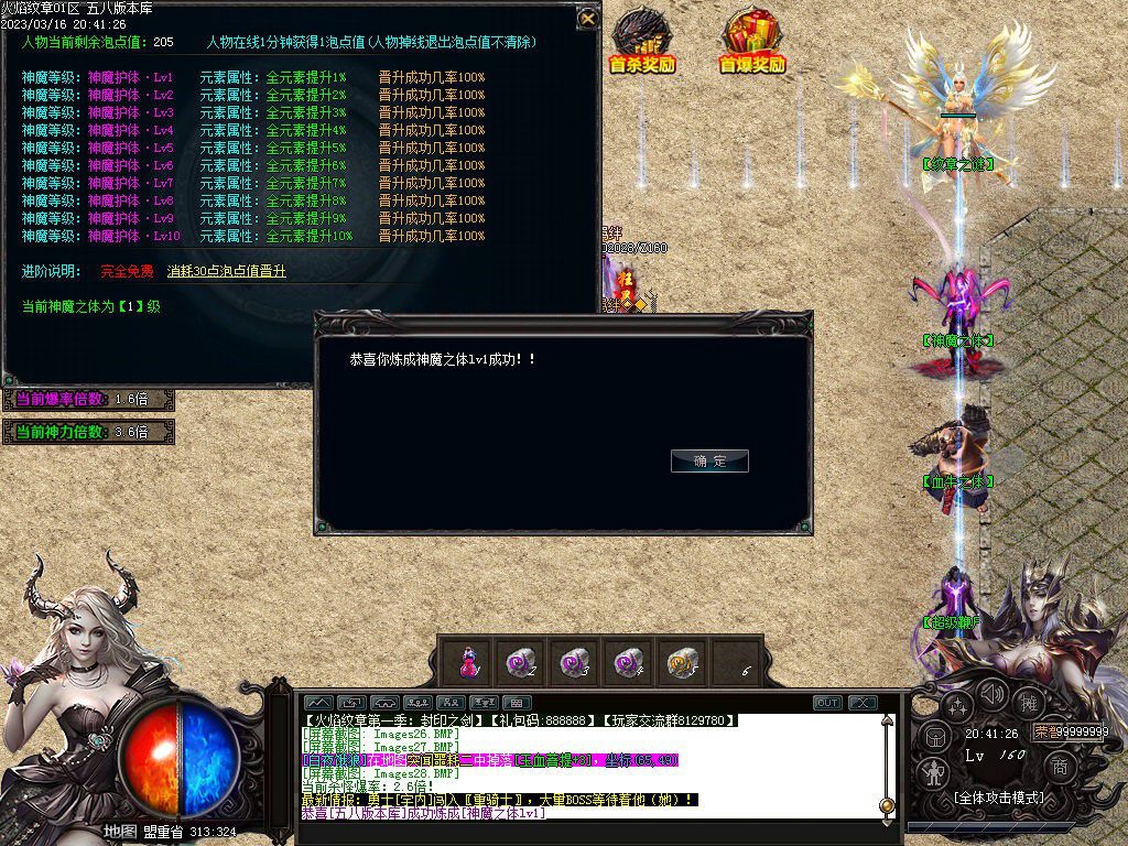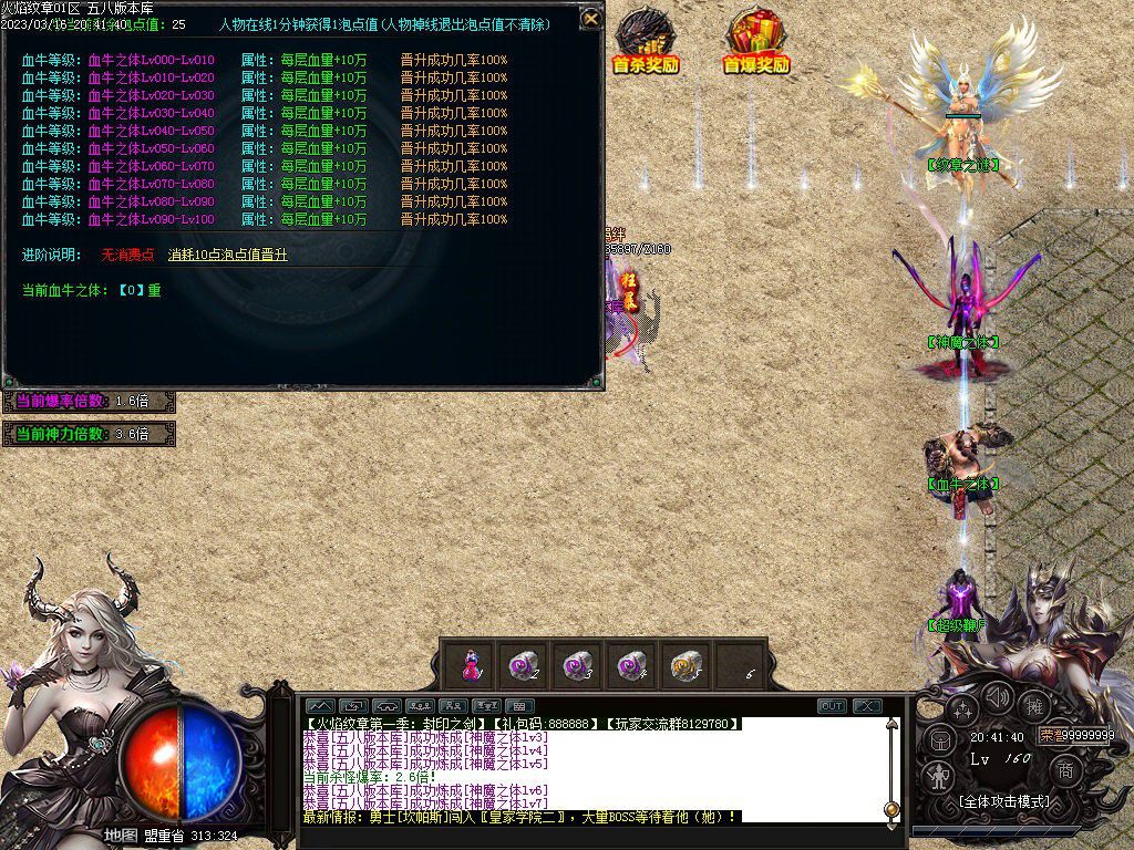 本服满神魔等级10级,满血牛等级100级,泡点免费领取