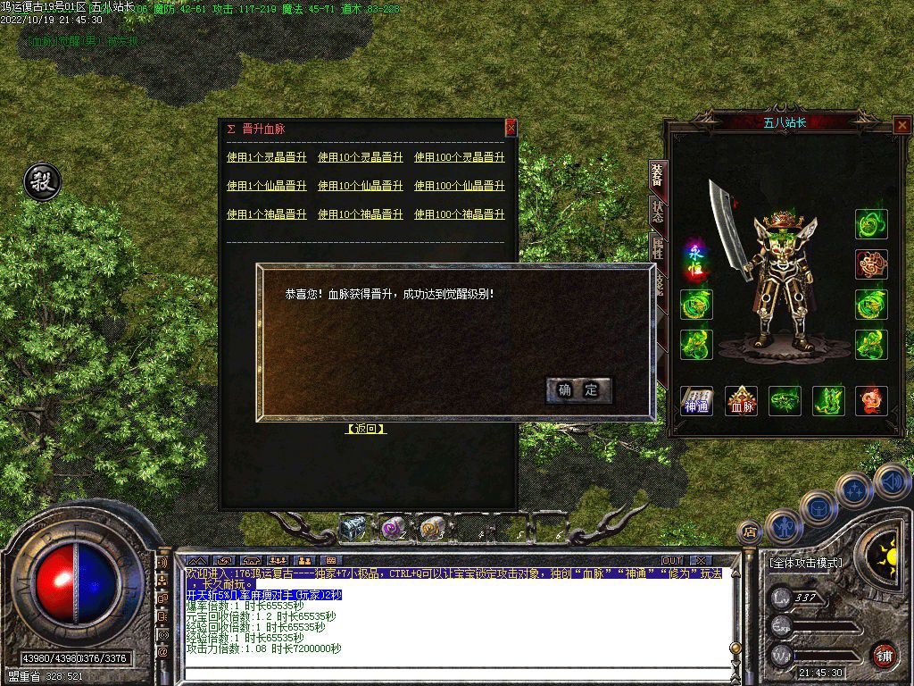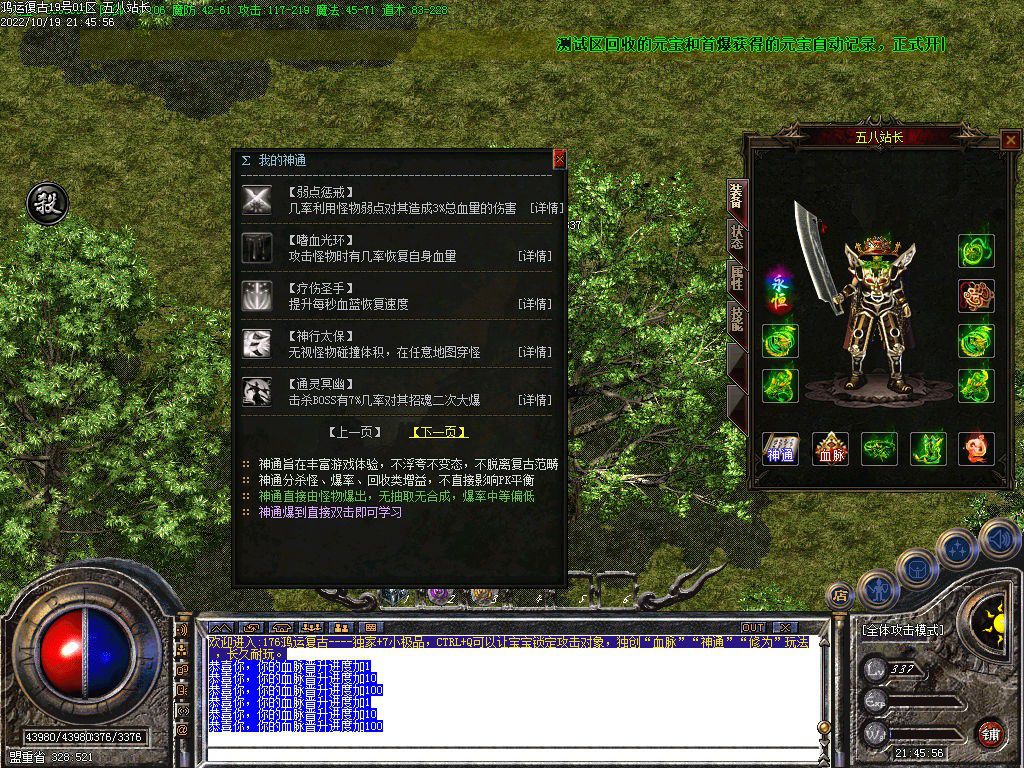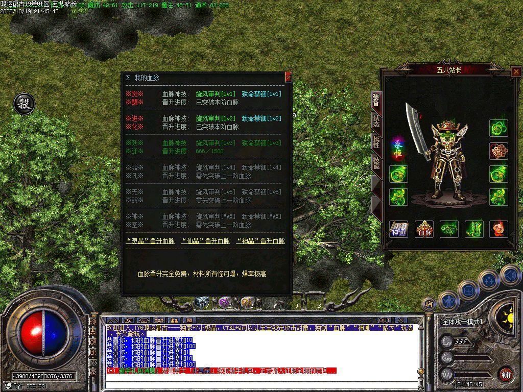[特色玩法] 独创血脉体系,免费晋升,附带超强血技.首创神通体系,各种强大打怪增益.独创装备修为体系,高极品几率觉醒,狠强