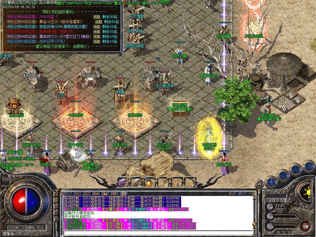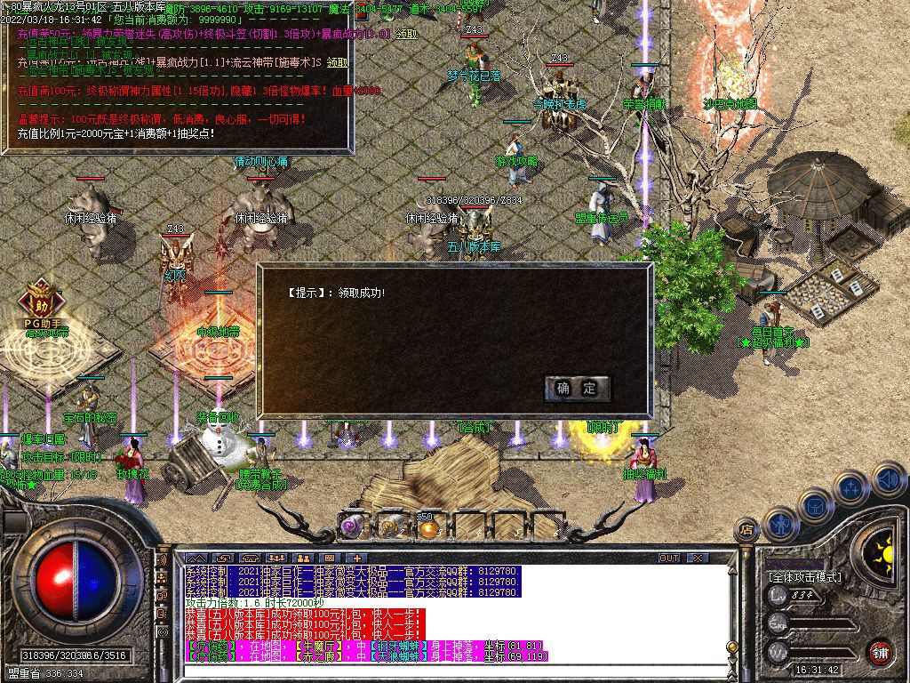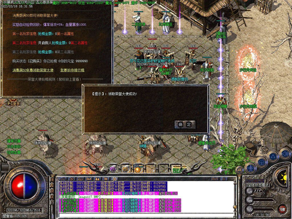 1、暴疯火龙首站区火爆来袭统战拿沙丰厚米奖励,老区每日元宝充值点奖励!
