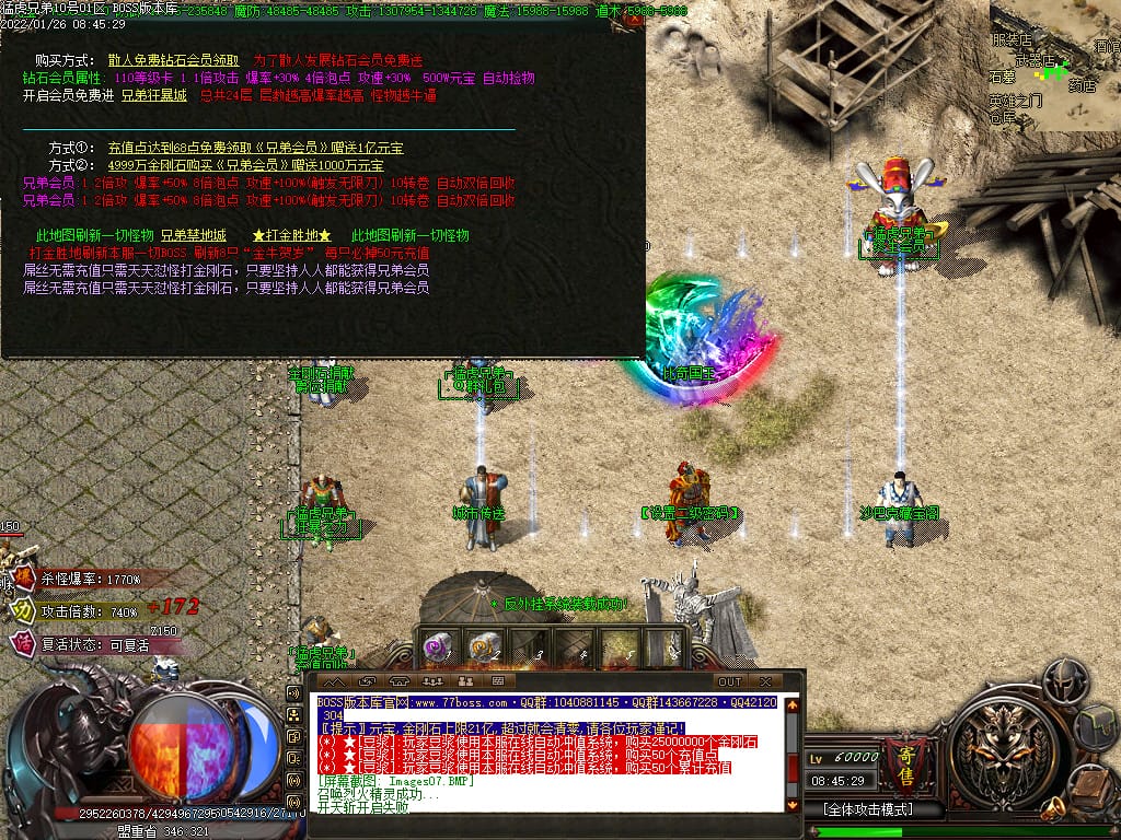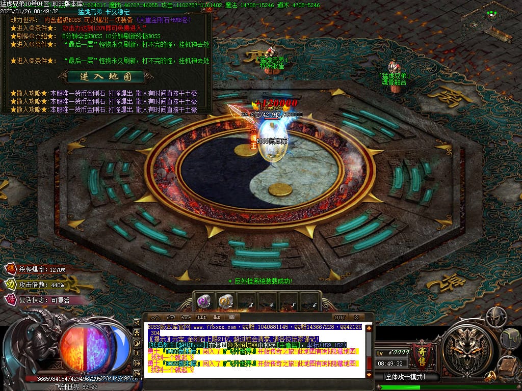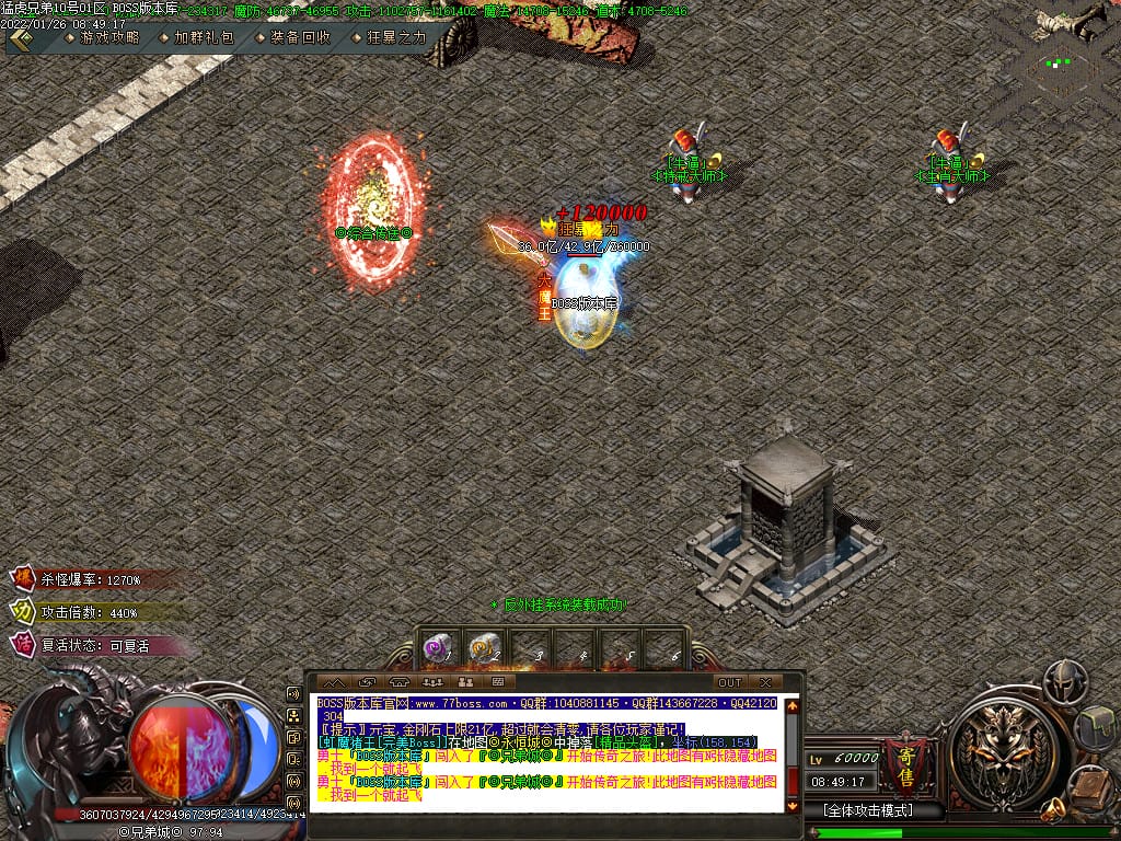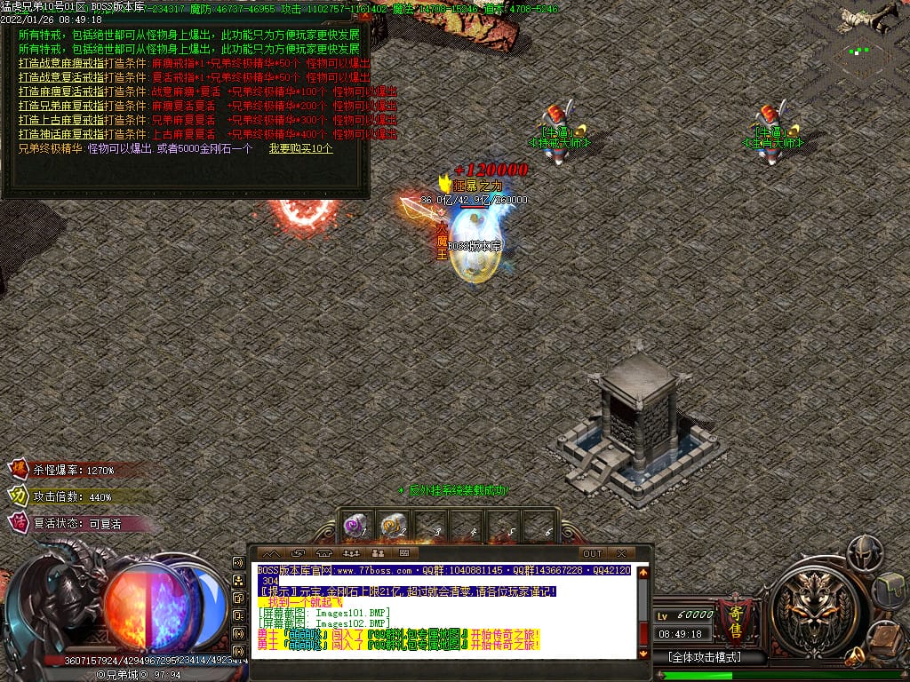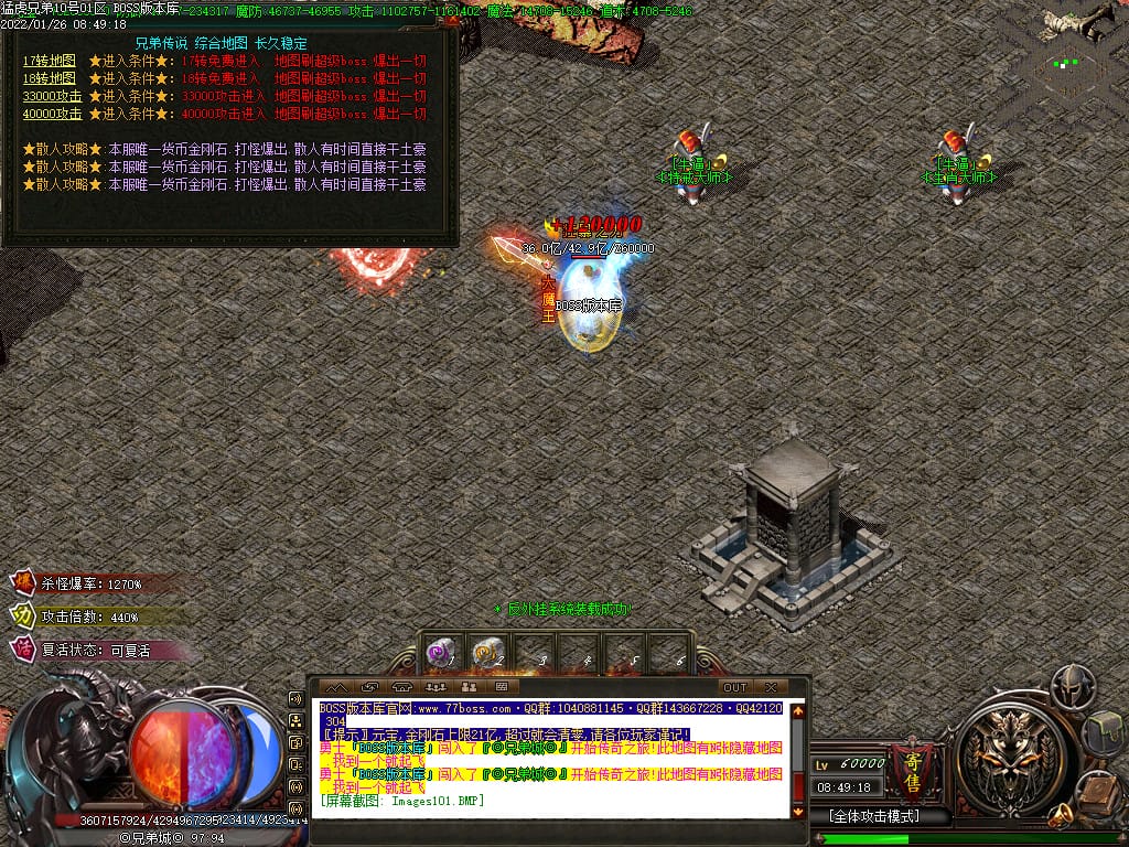 兄弟会员:1.2倍攻爆率+0% 8倍泡点攻速+1008(触融发无限刀)10转卷自动双倍回收