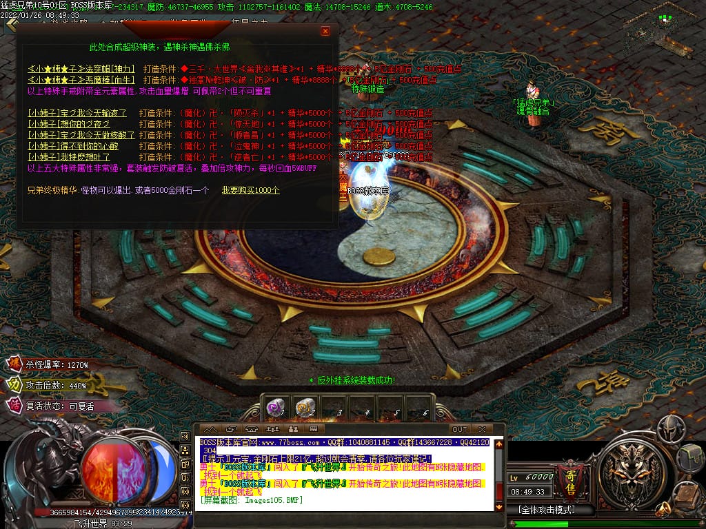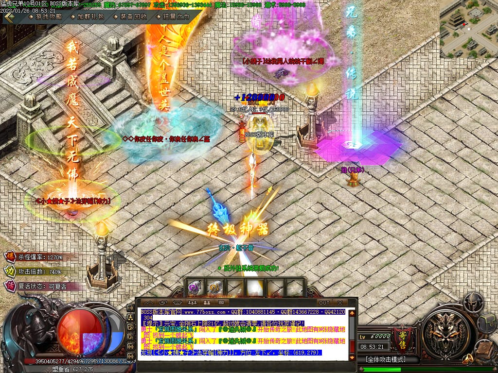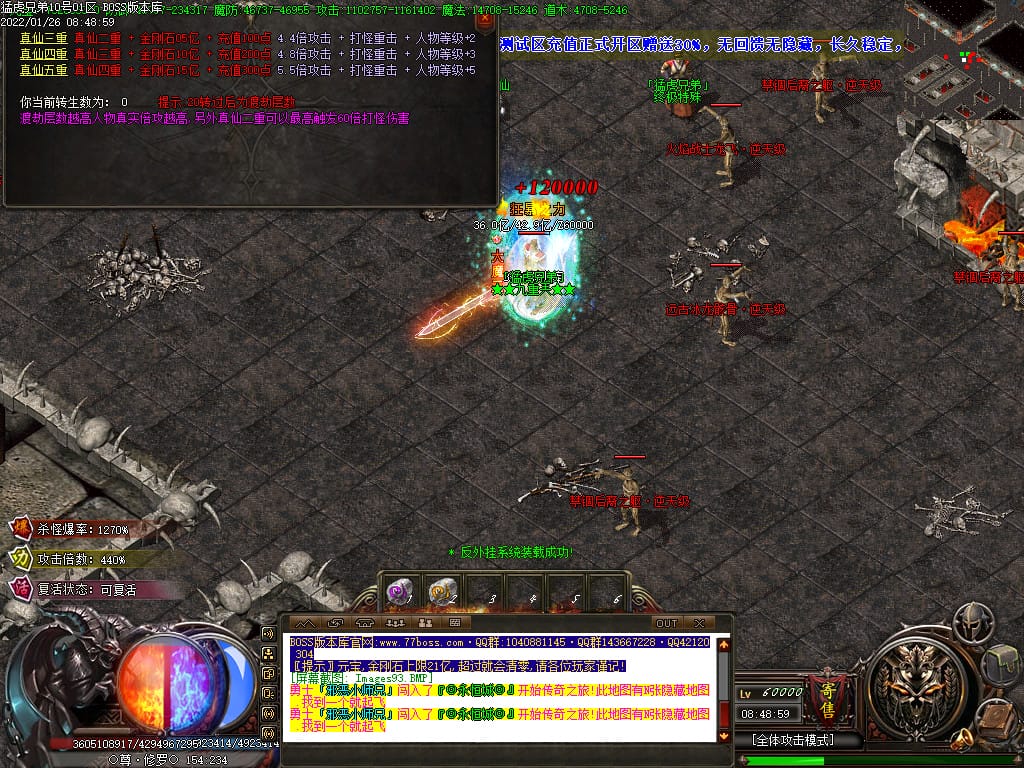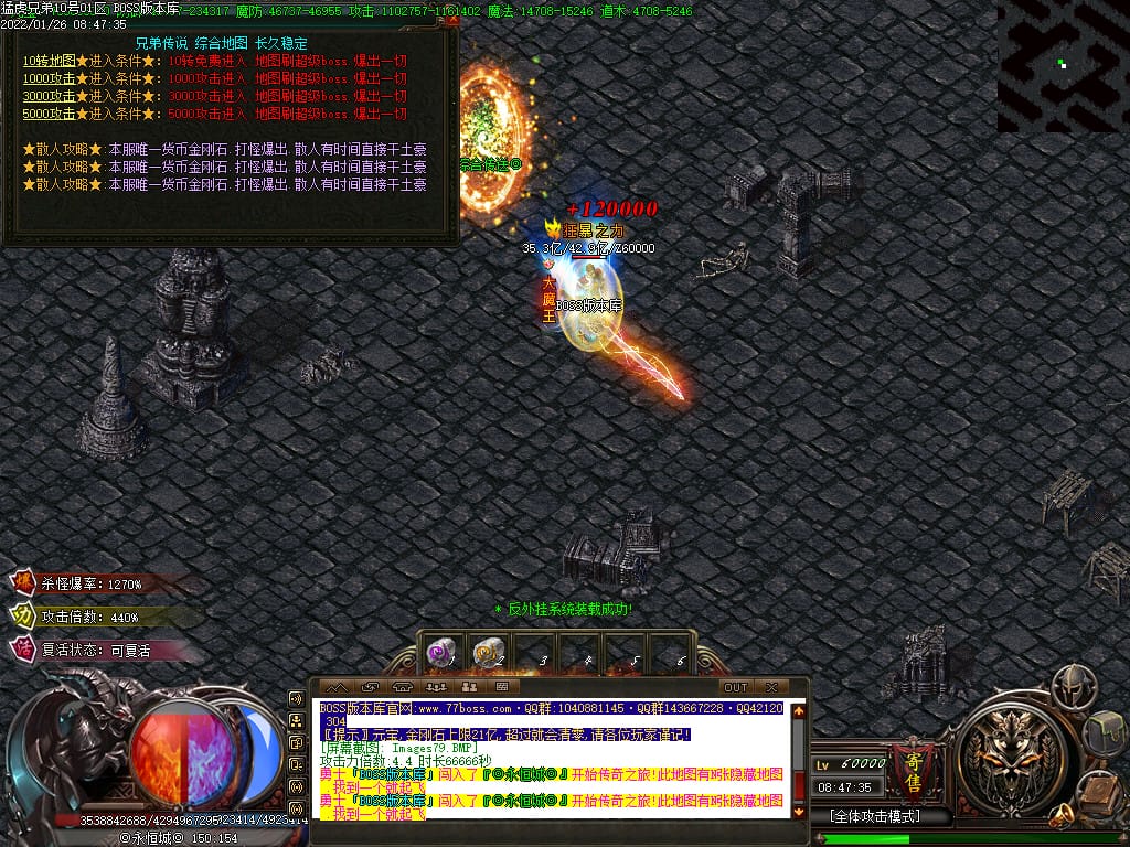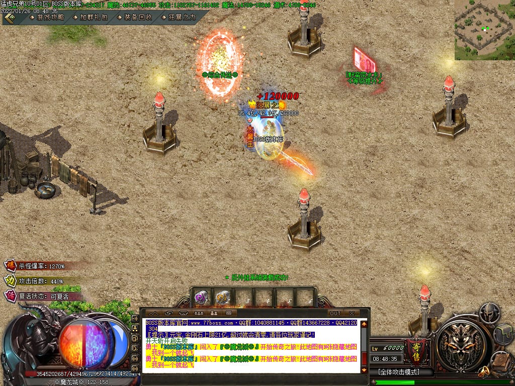 兄弟会员:1.2倍攻爆率+0% 8倍泡点攻速+1008(触融发无限刀)10转卷自动双倍回收