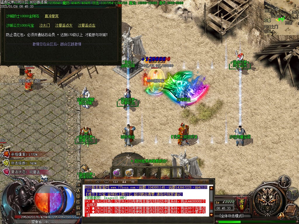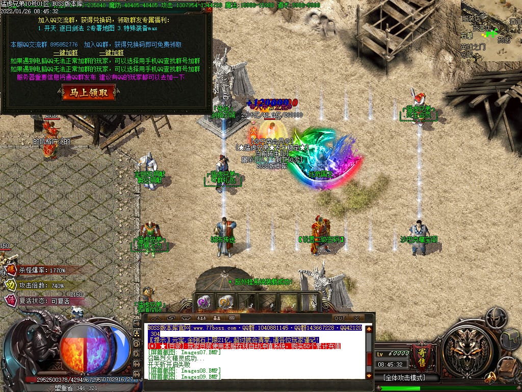 3.新区首次拿沙,21-22点每十分钟在皇宫内下红包雨+至尊生肖装备,只限首次攻城