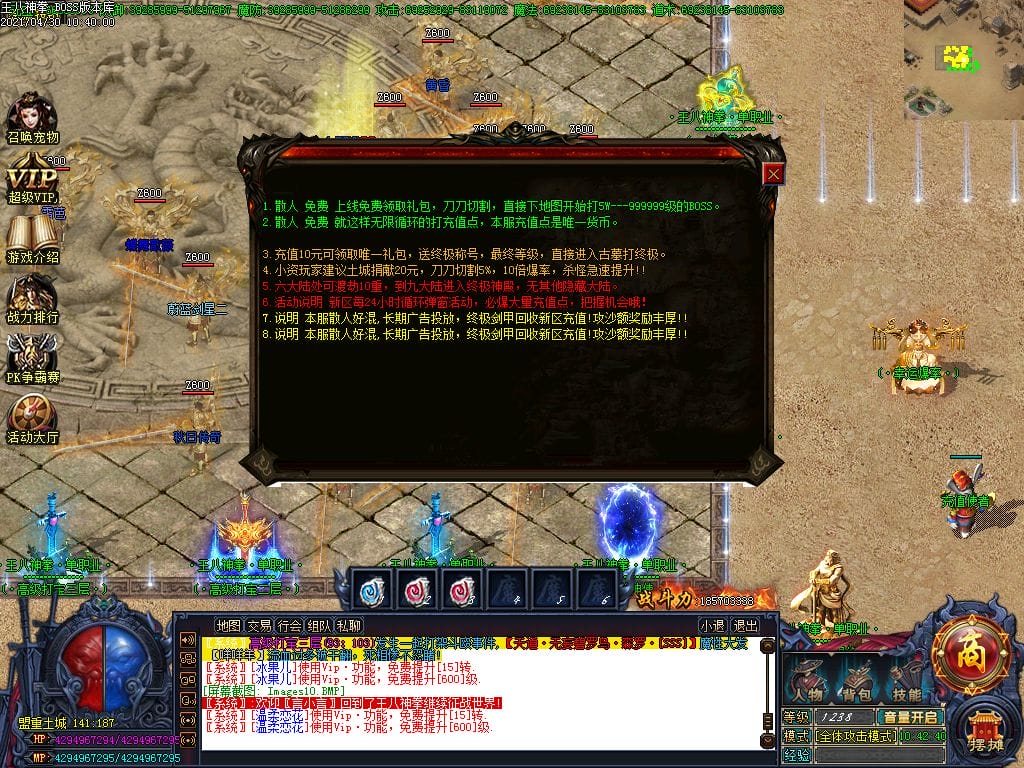 7.说明  本服散人好混,长期广告投放,终极剑甲回收新区充值!攻沙额奖励丰厚!!