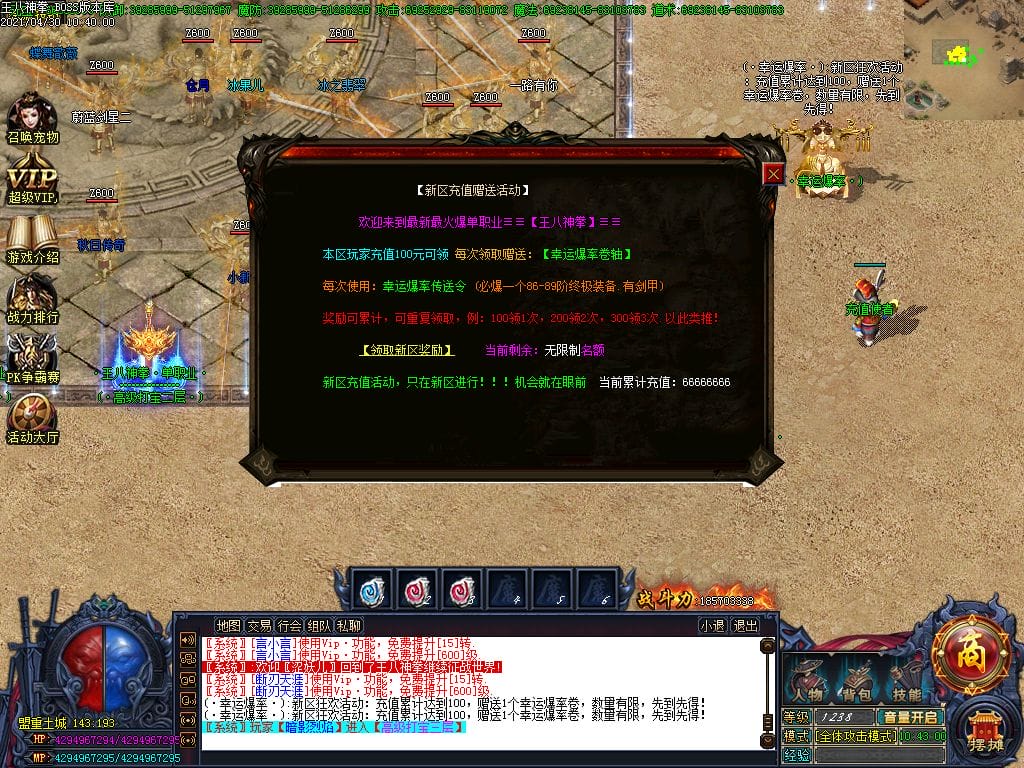 6.活动说明 新区每24小时循环弹窗活动。必爆大量充值点,把握机会哦!