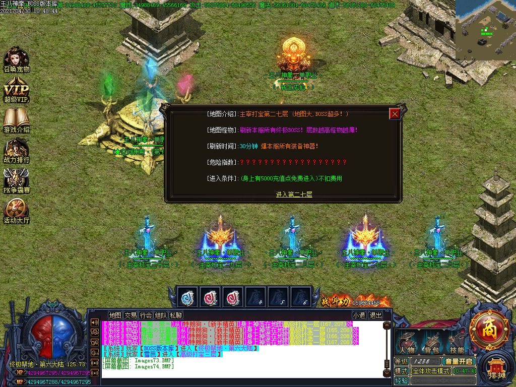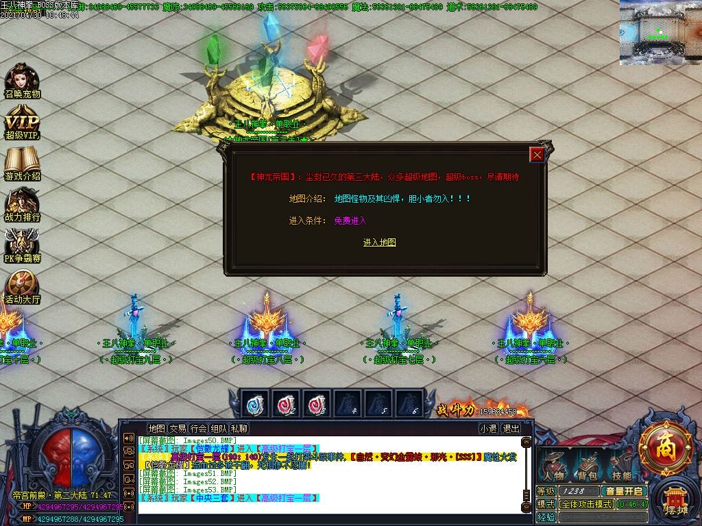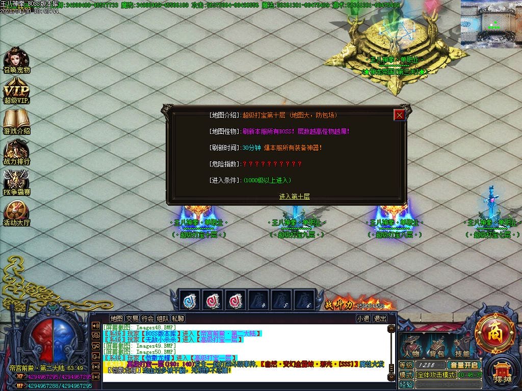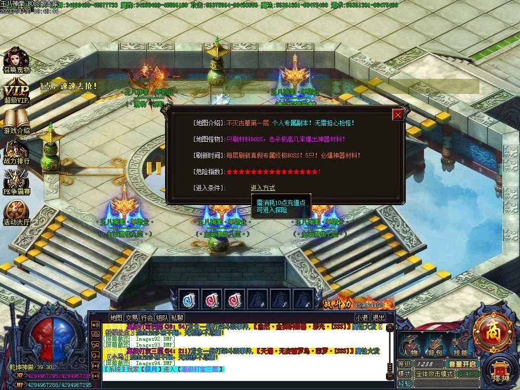 3.充值10米可领取唯一礼包,送终极称号,最终等级,直接进入古墓打终极。