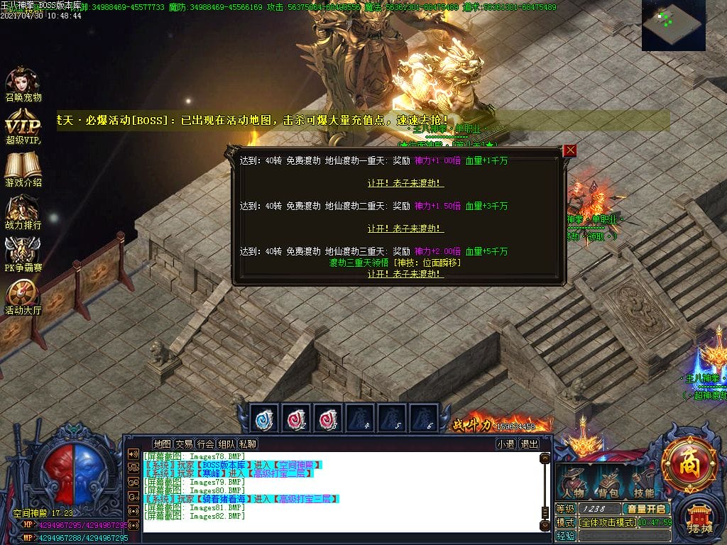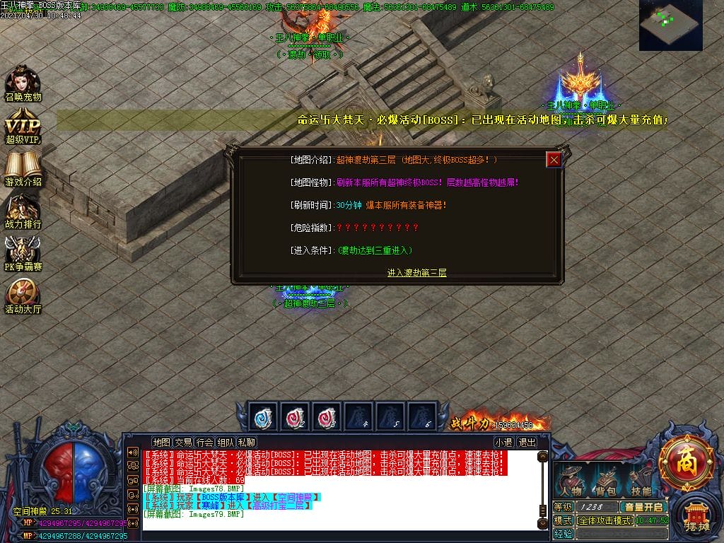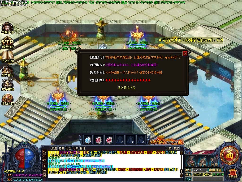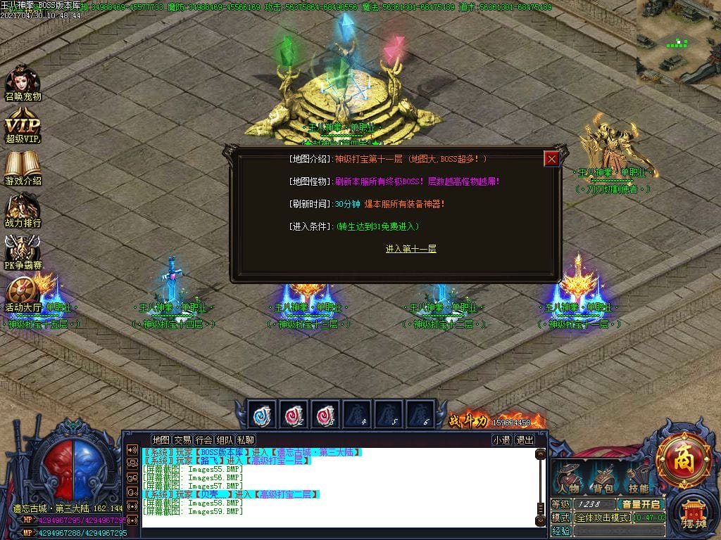 3.充值10米可领取唯一礼包,送终极称号,最终等级,直接进入古墓打终极。