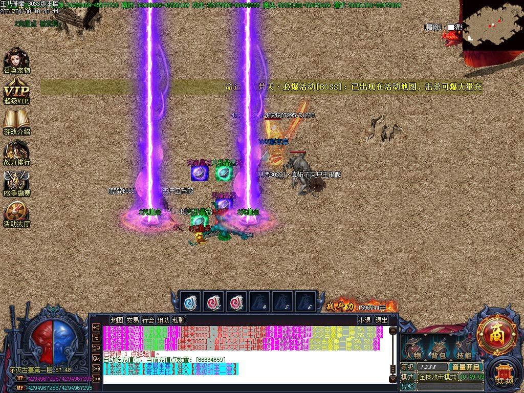 1.散人 免费 上线免费领取礼包,刀刀切割,直接下地图开始打5W——999999级的BOSS