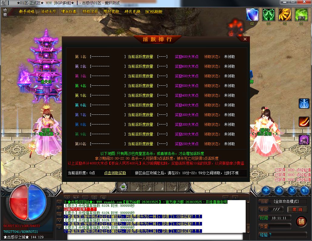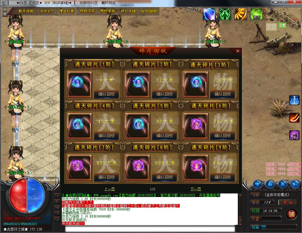1:本服42全满,沙城捐献20米,人物鞭尸20米,狂暴2米!