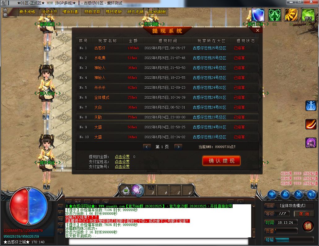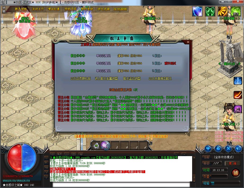 3:本服所有地图全部都有终极Boss,所有全爆!