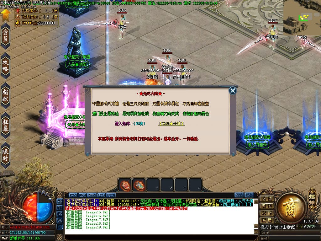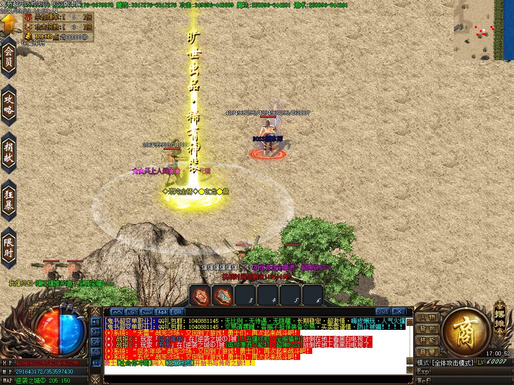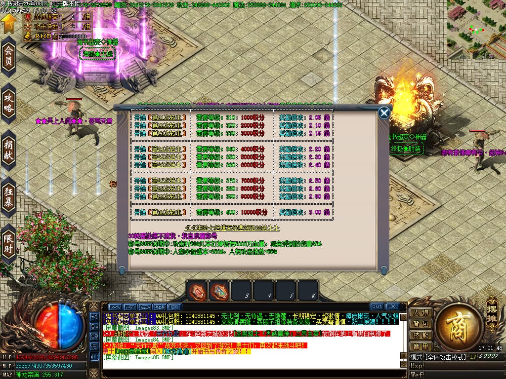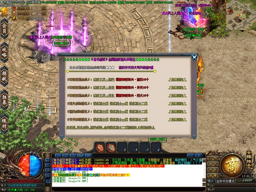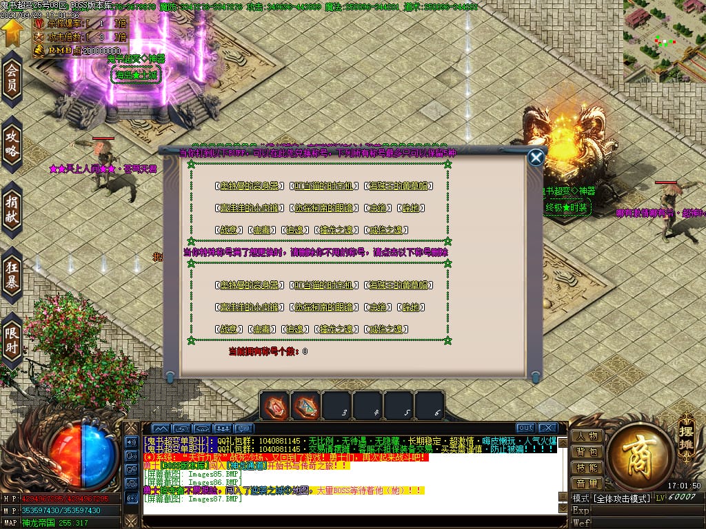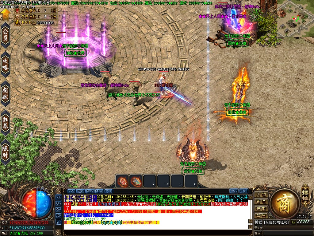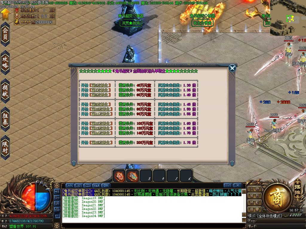 3.转生,等级,爵位都拥有终极大陆,本服活动奖励非常丰厚,记得定时参加,可爆出终极装备