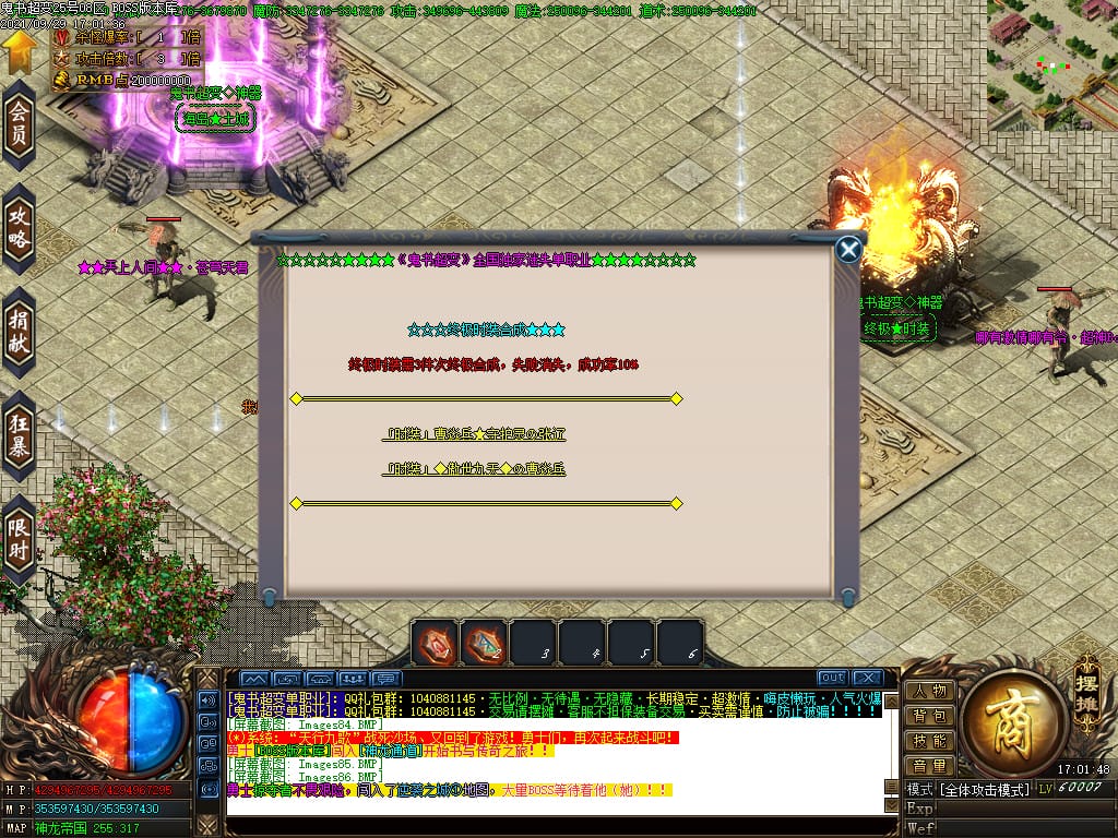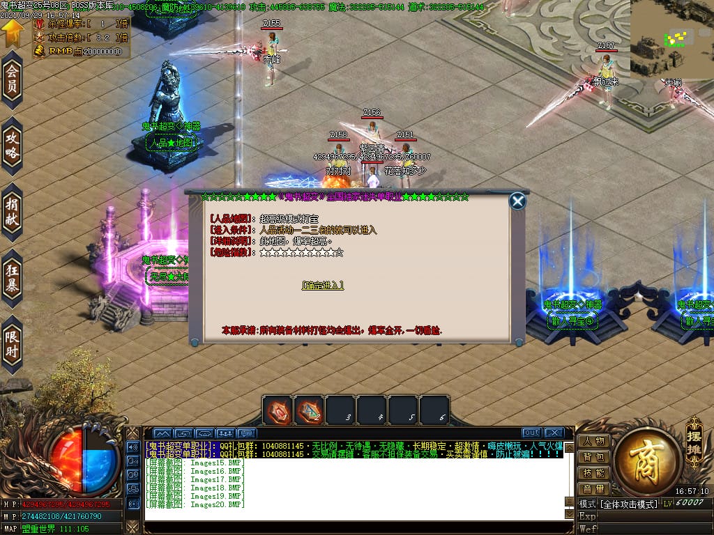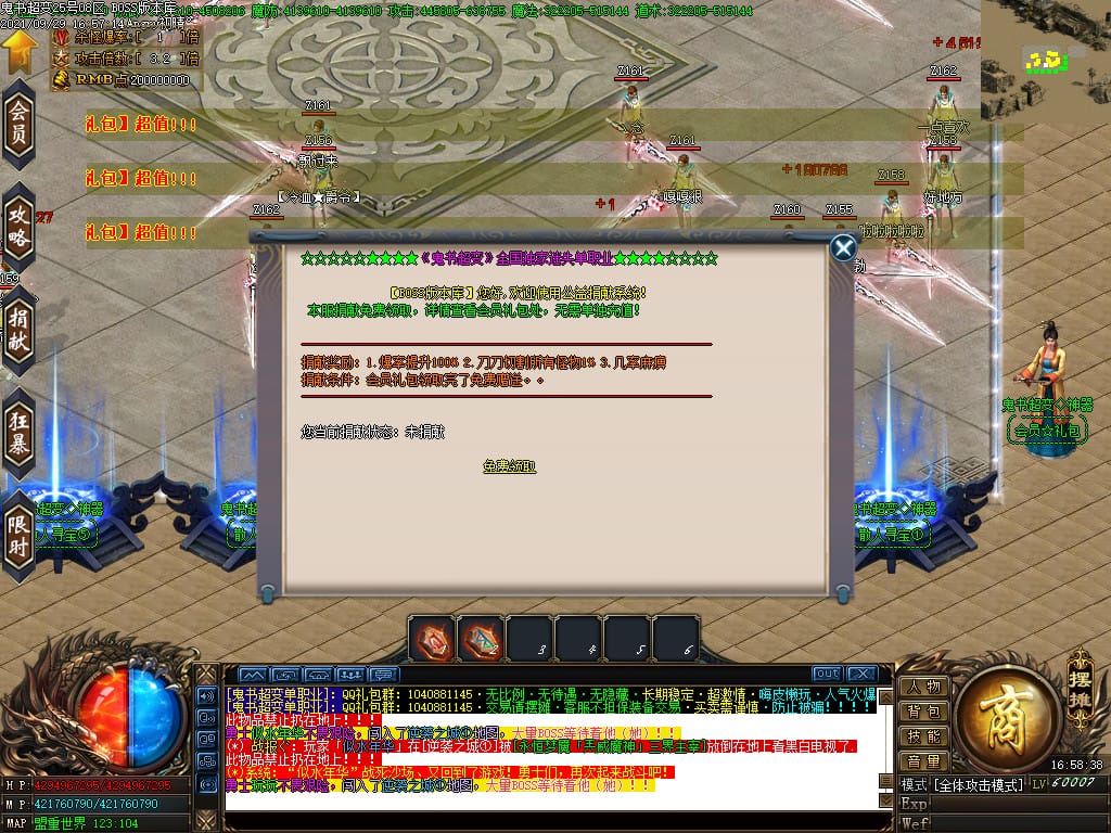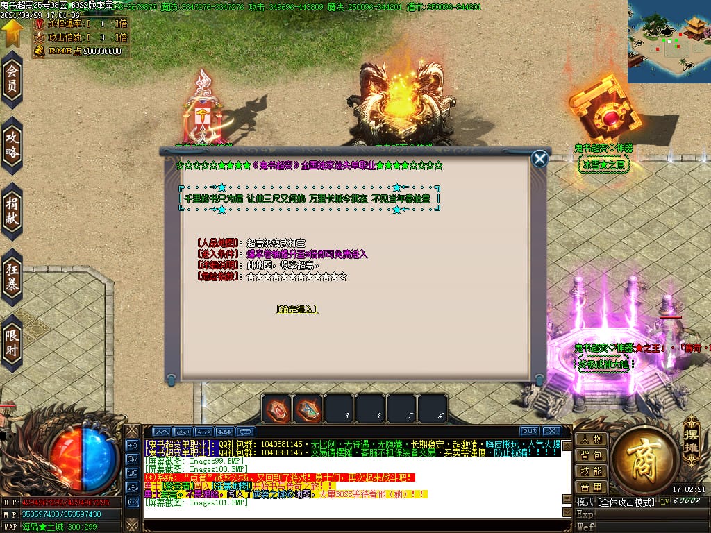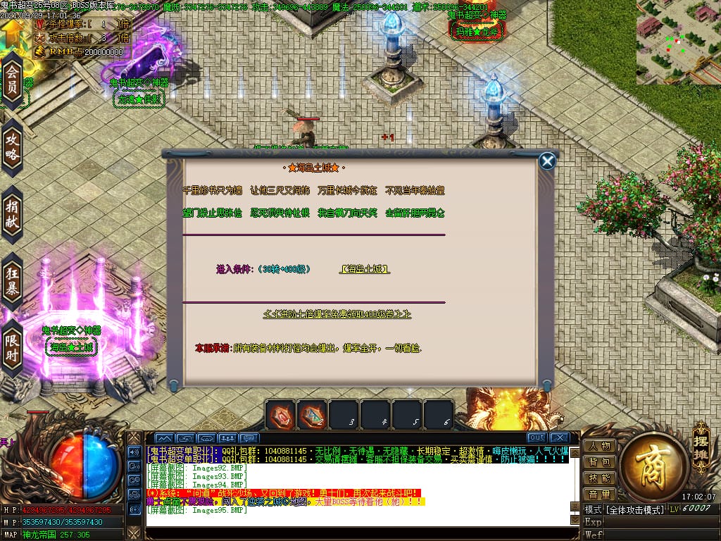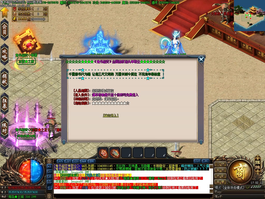 3.转生,等级,爵位都拥有终极大陆,本服活动奖励非常丰厚,记得定时参加,可爆出终极装备