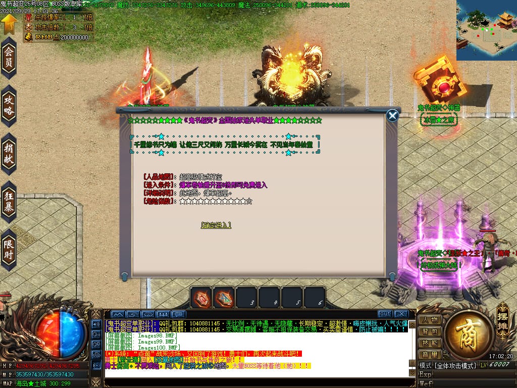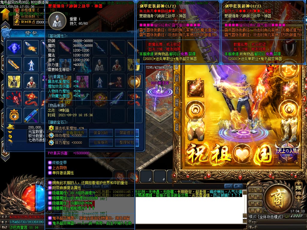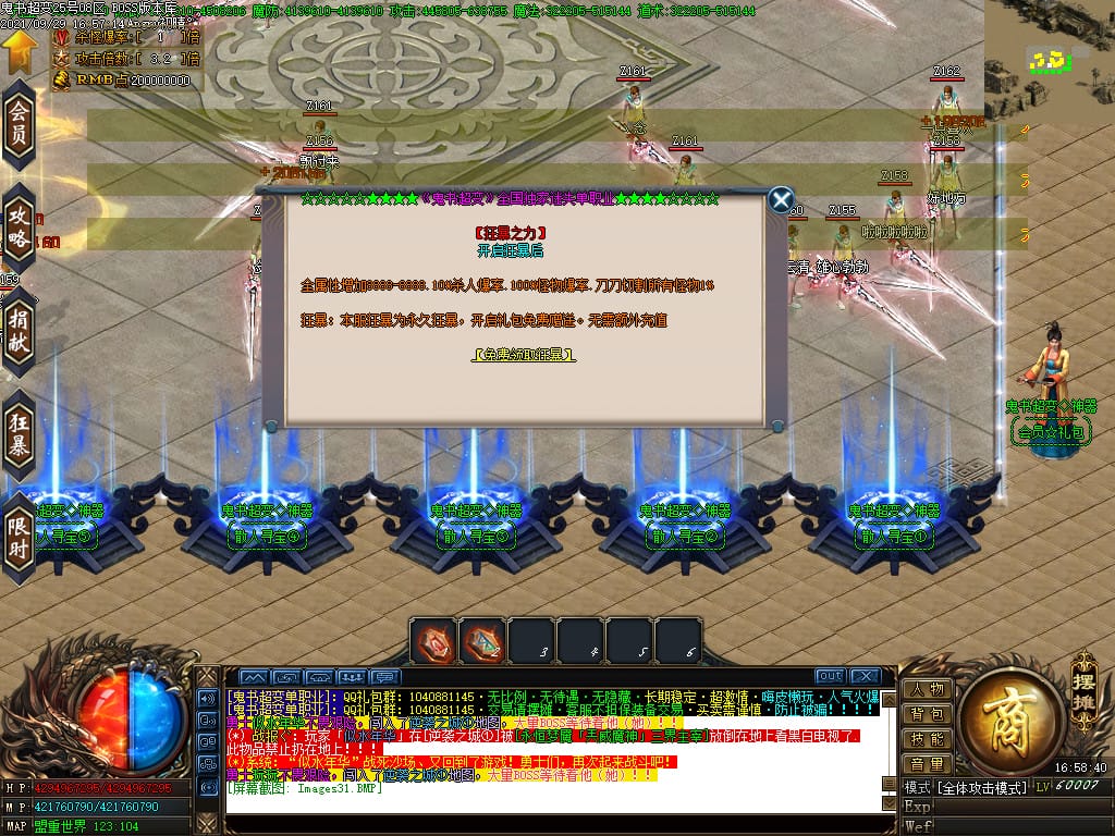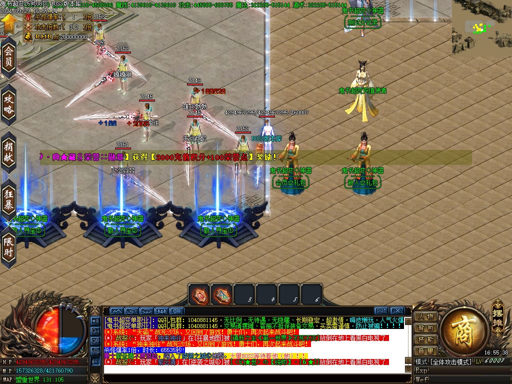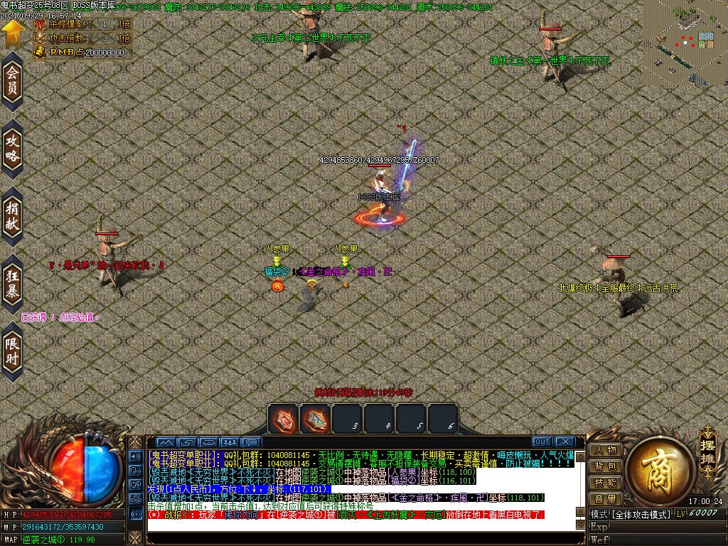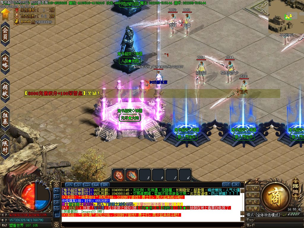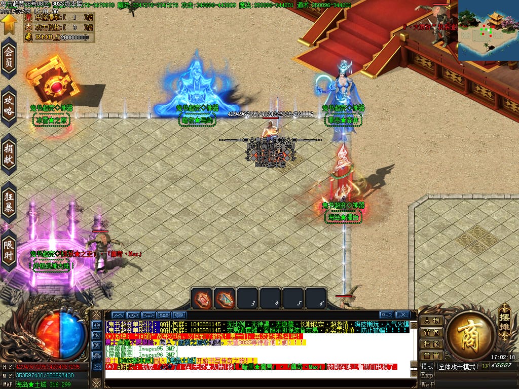 3.转生,等级,爵位都拥有终极大陆,本服活动奖励非常丰厚,记得定时参加,可爆出终极装备