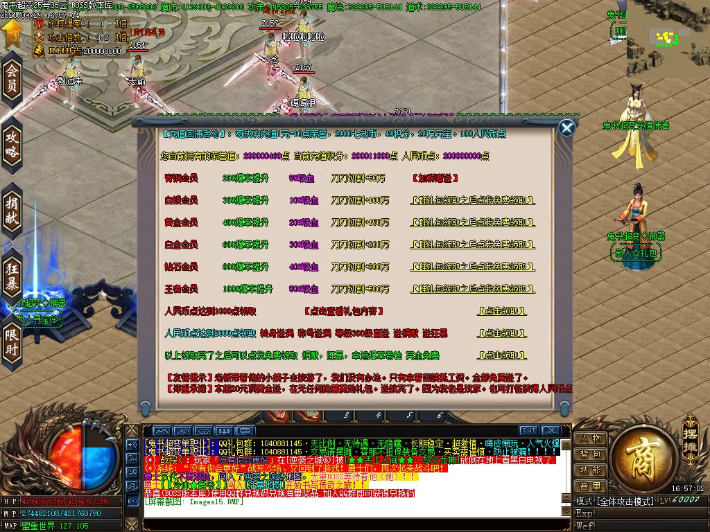 6.米 路线:上线领取回馈购买礼包,提升爆率+切割+吸血,挑战全服BOSS。