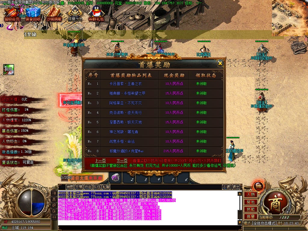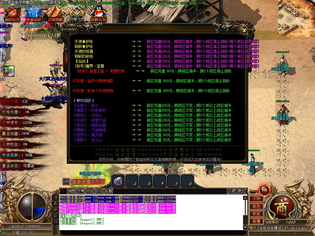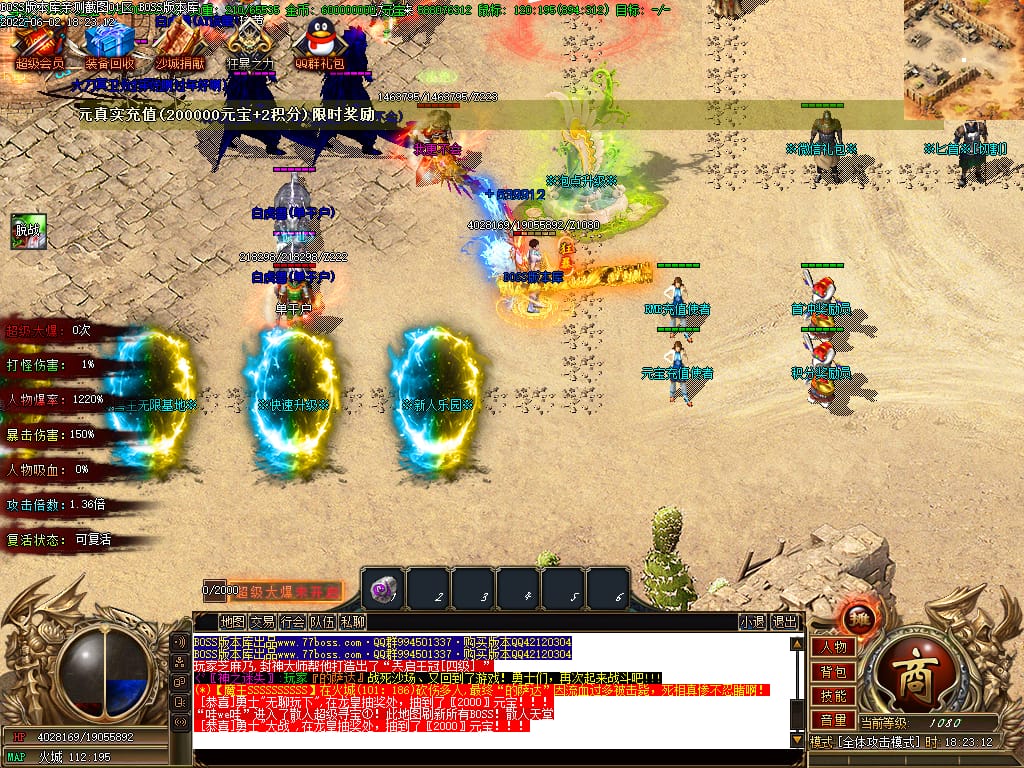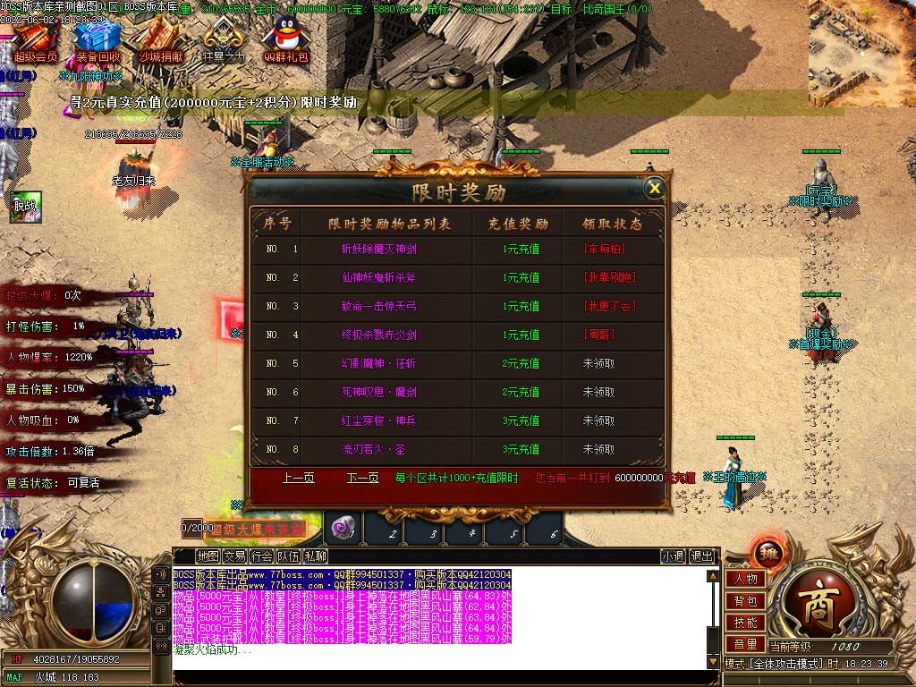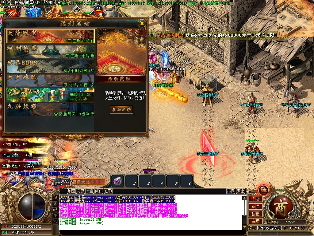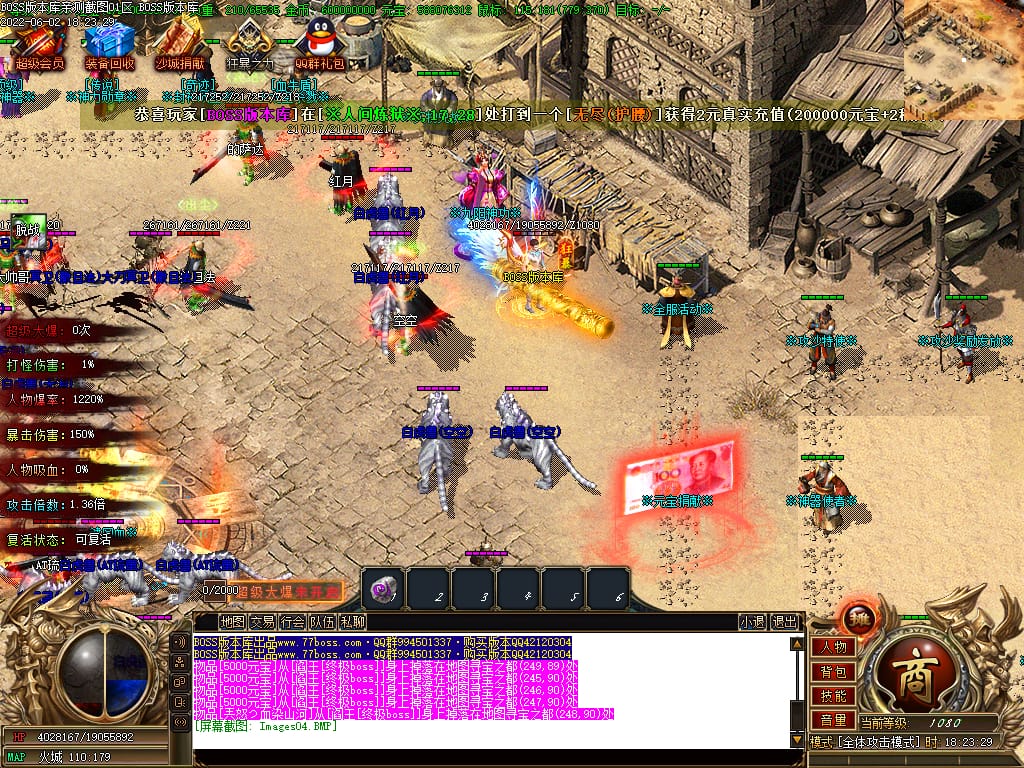 本服有元宝福利.BOSS掉落价值“10米-400米”元宝卷