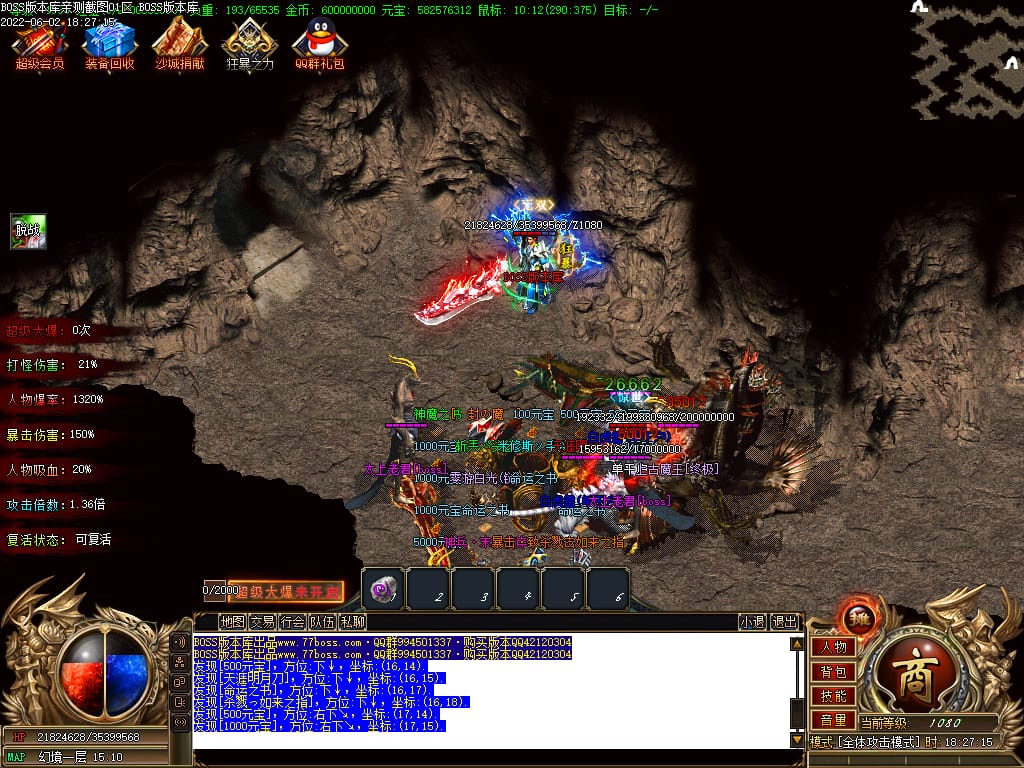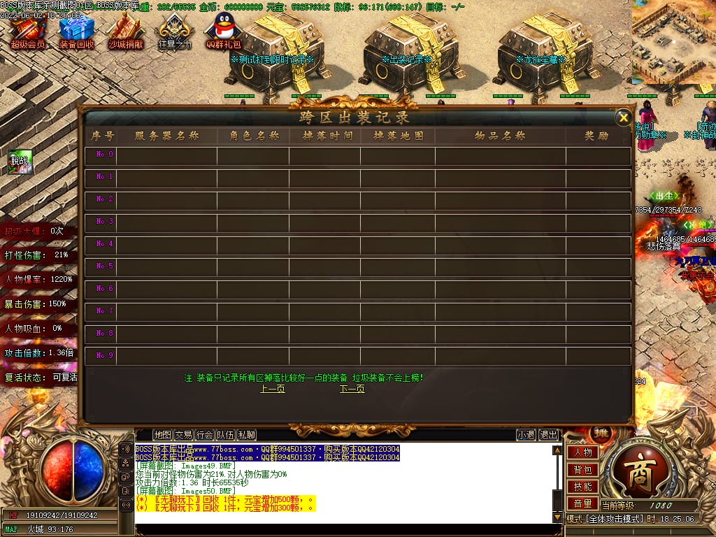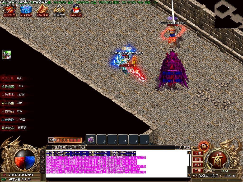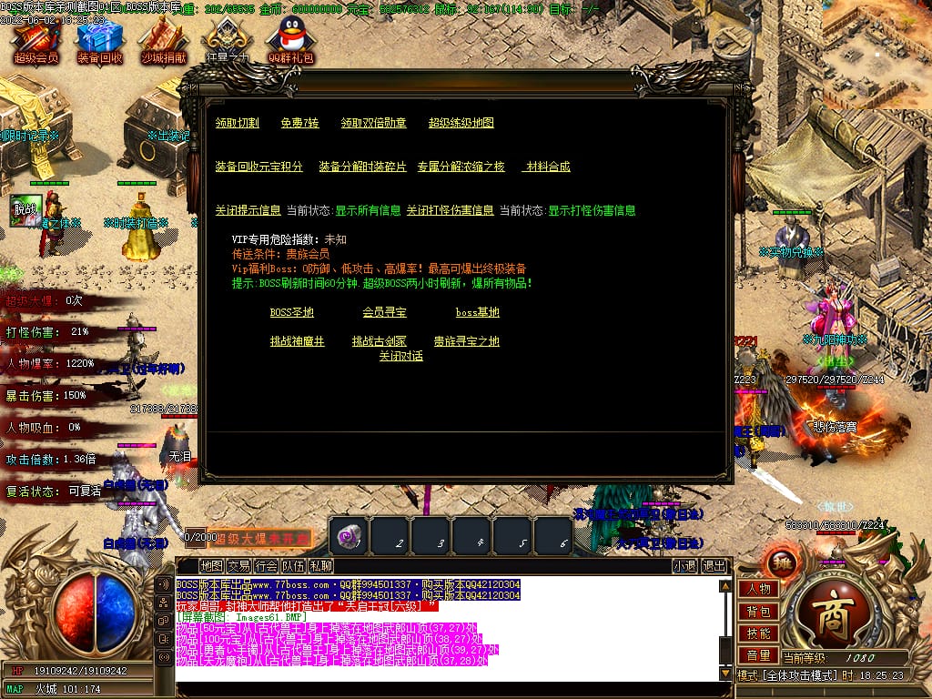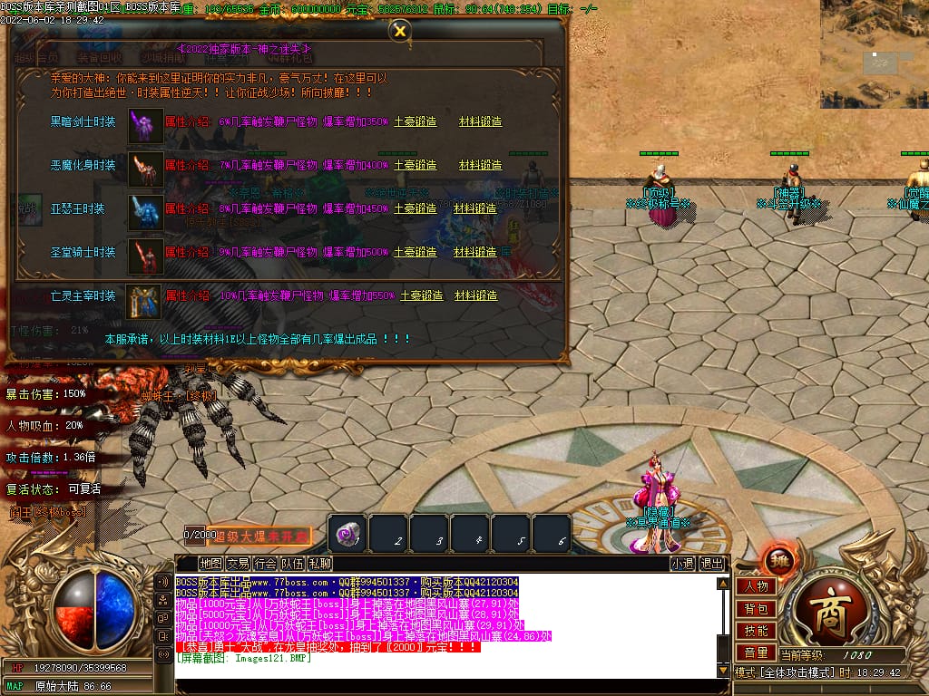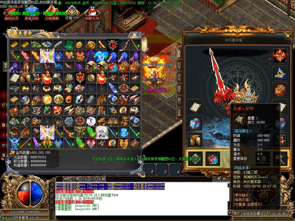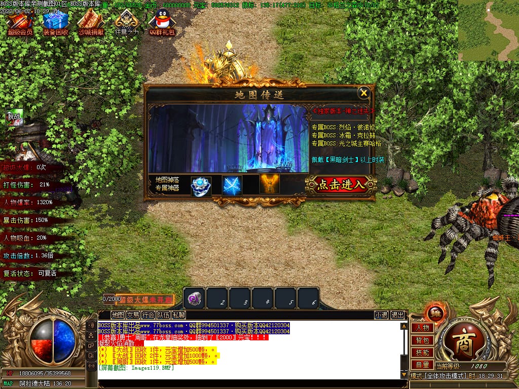 本服游戏装备全部靠打BOSS获得.BOSS血越多.那说明此BOSS爆率更高.游戏管理绝不会出售任何物品.保证游戏公平