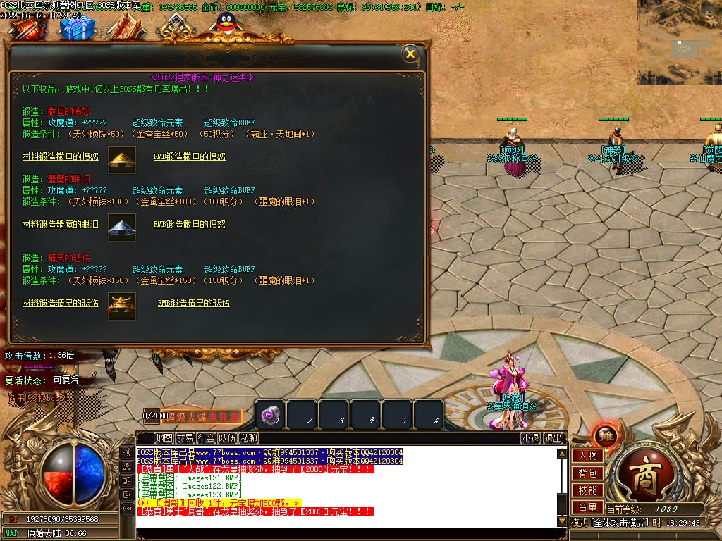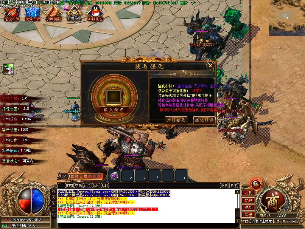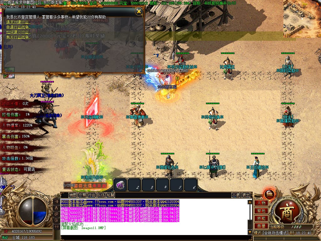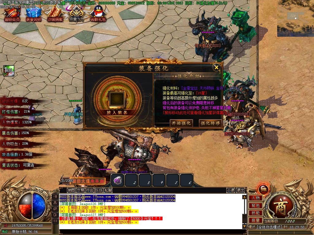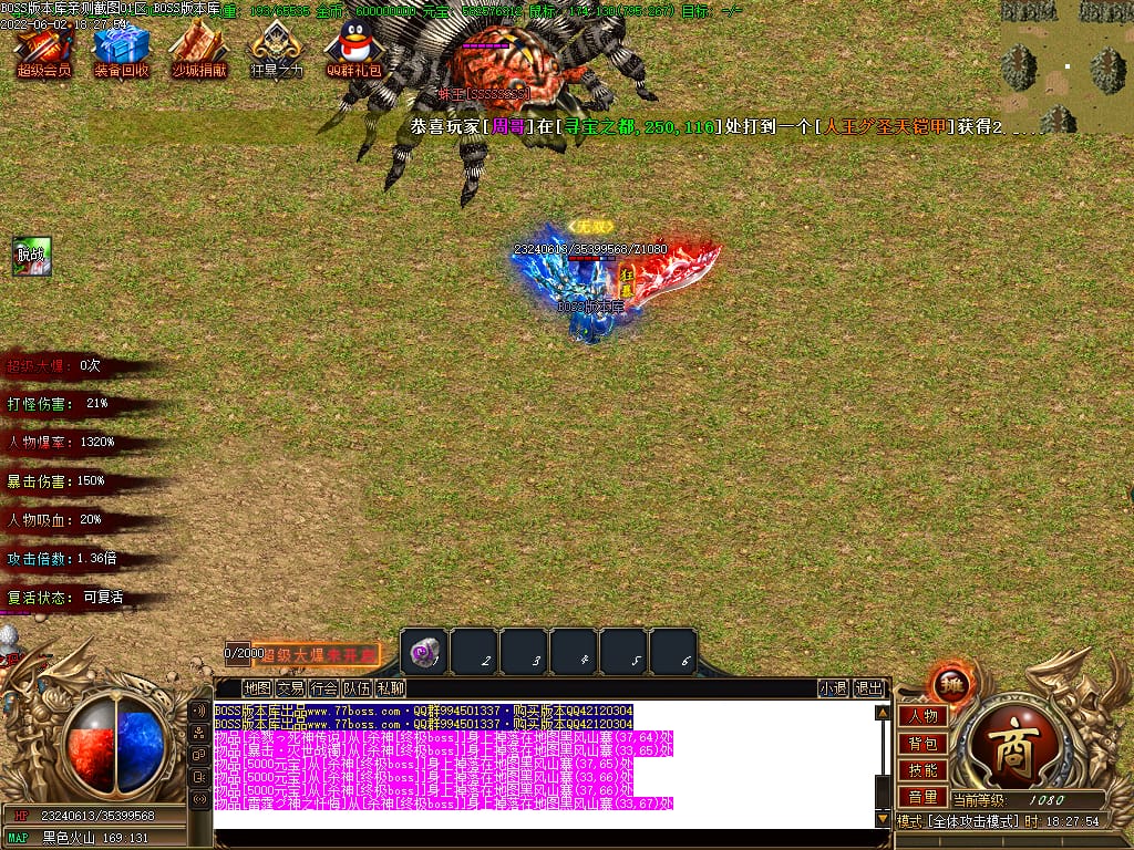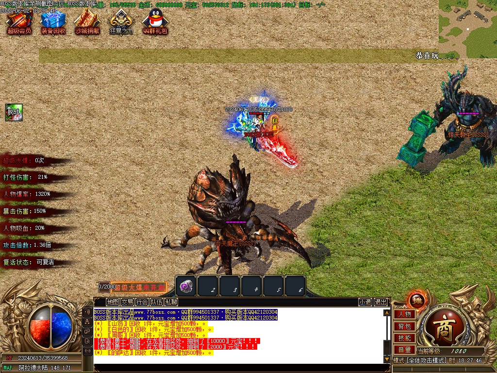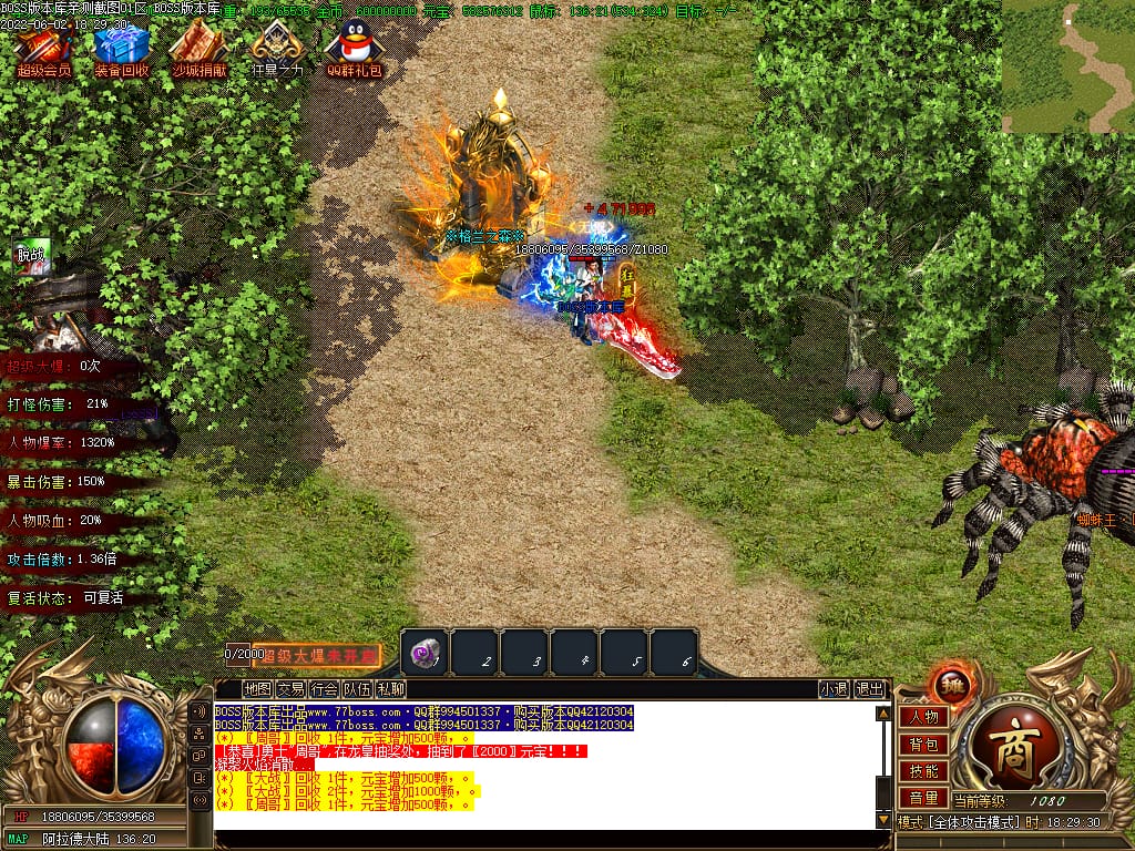 本服游戏装备全部靠打BOSS获得.BOSS血越多.那说明此BOSS爆率更高.游戏管理绝不会出售任何物品.保证游戏公平