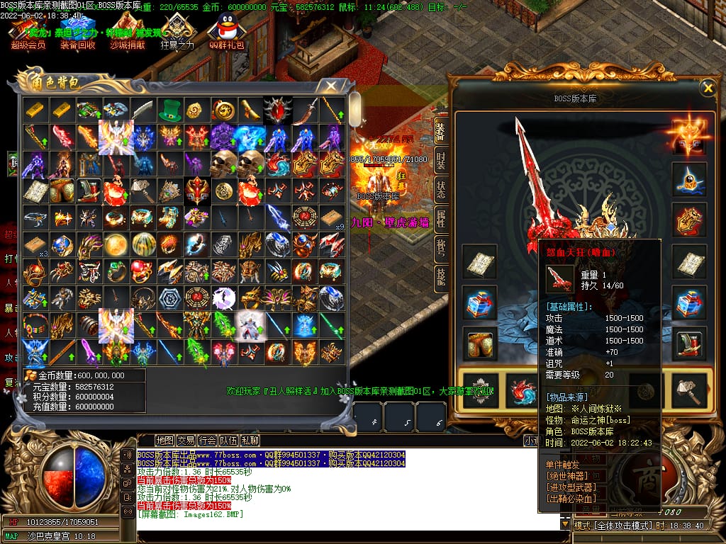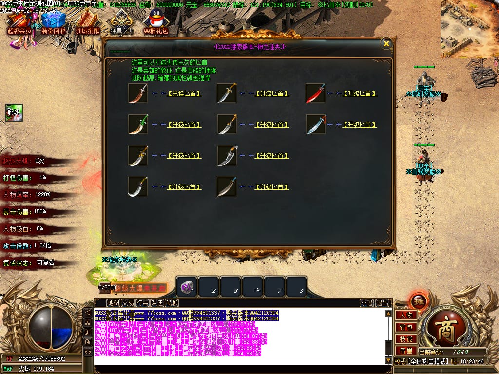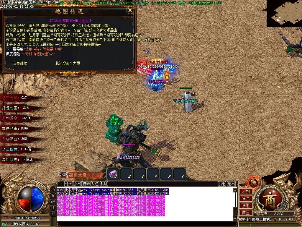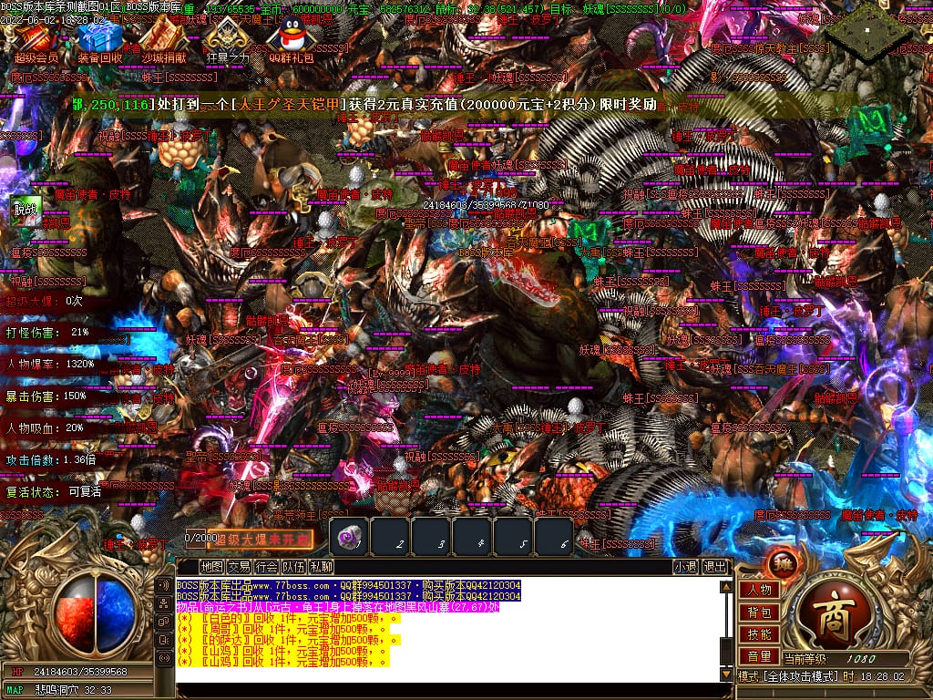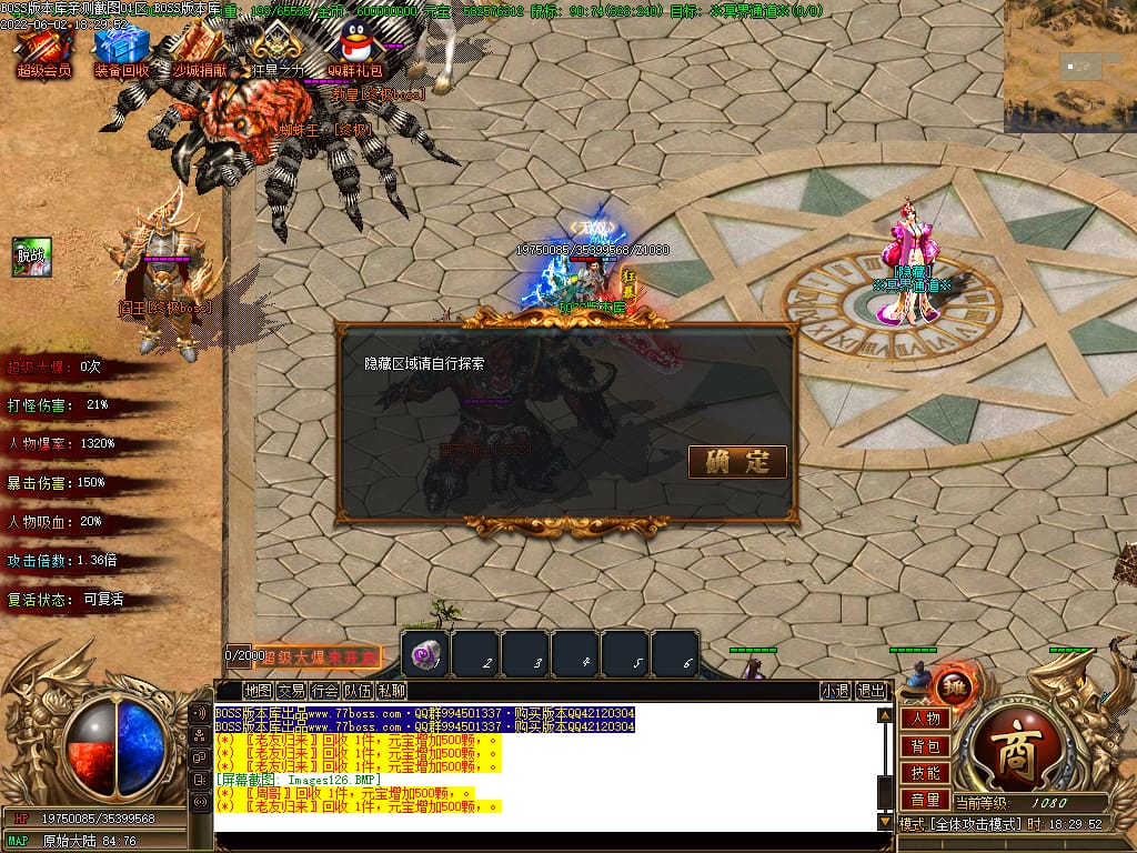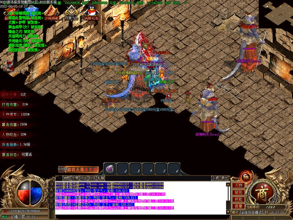 本服游戏装备全部靠打BOSS获得.BOSS血越多.那说明此BOSS爆率更高.游戏管理绝不会出售任何物品.保证游戏公平