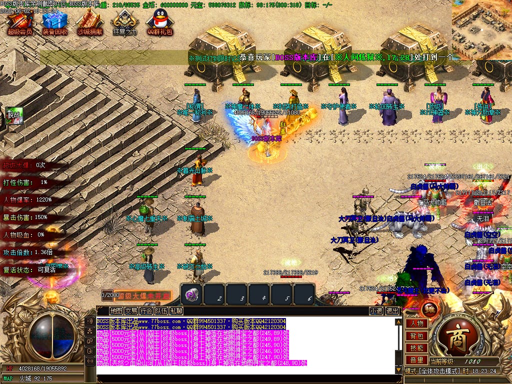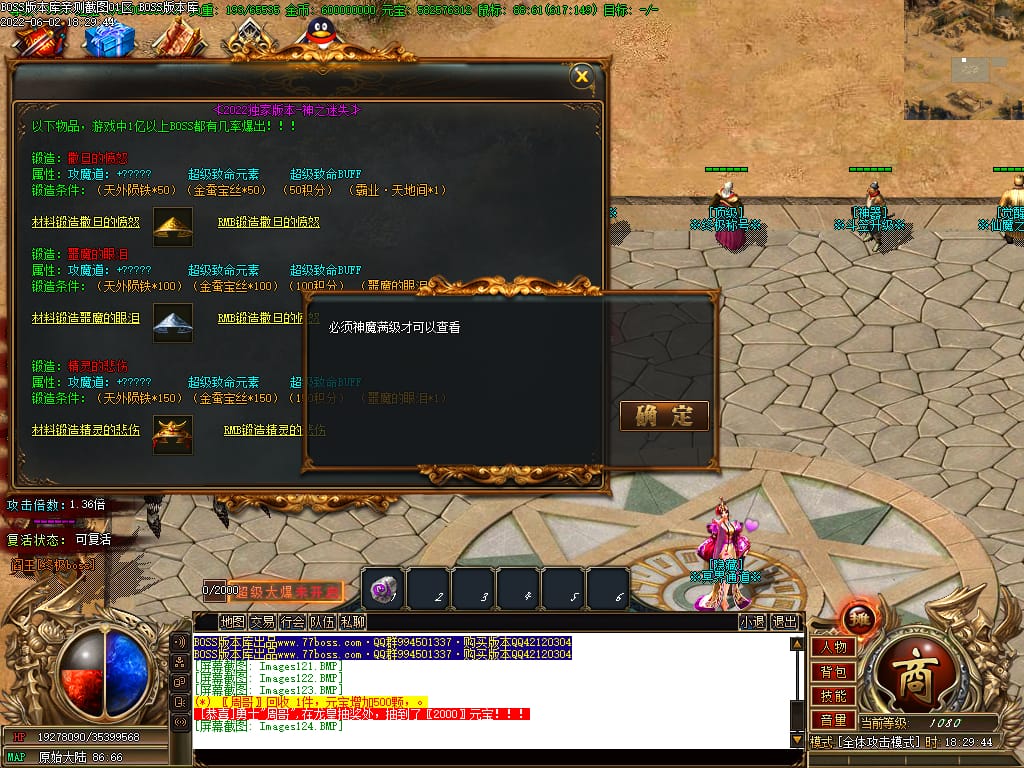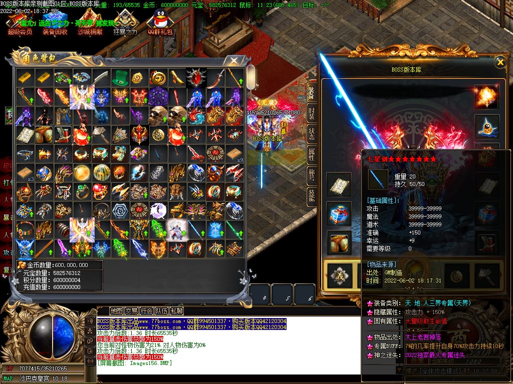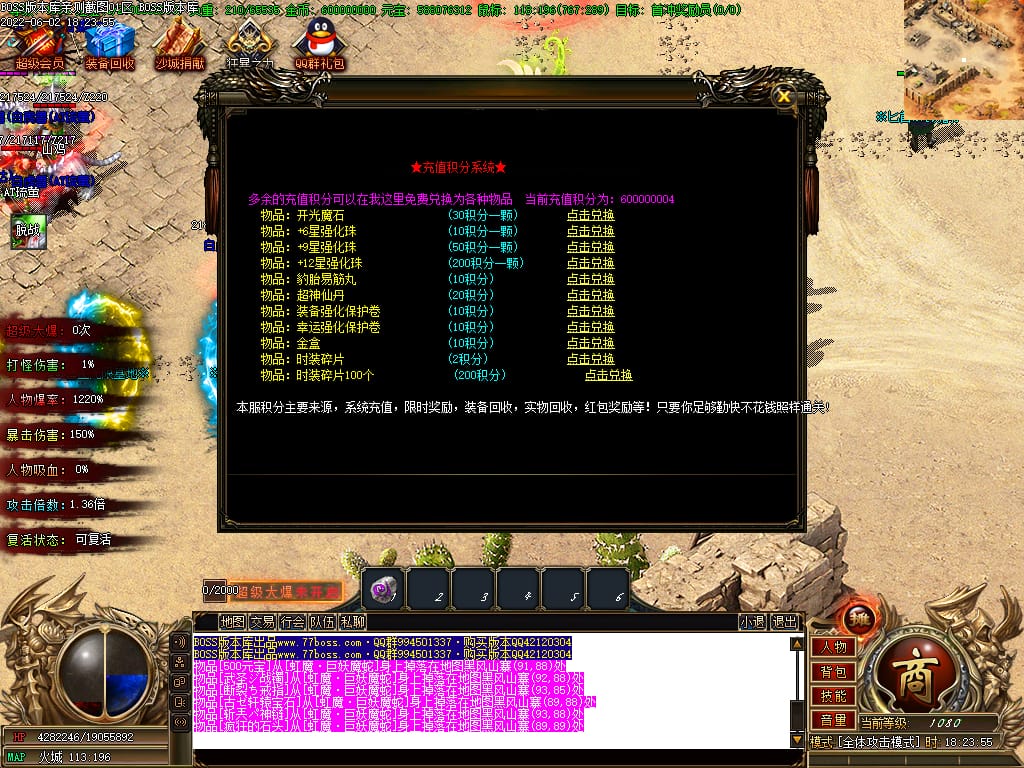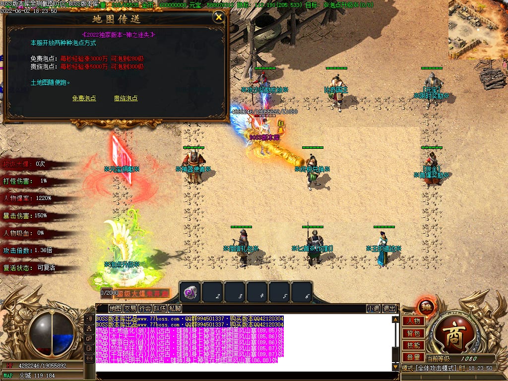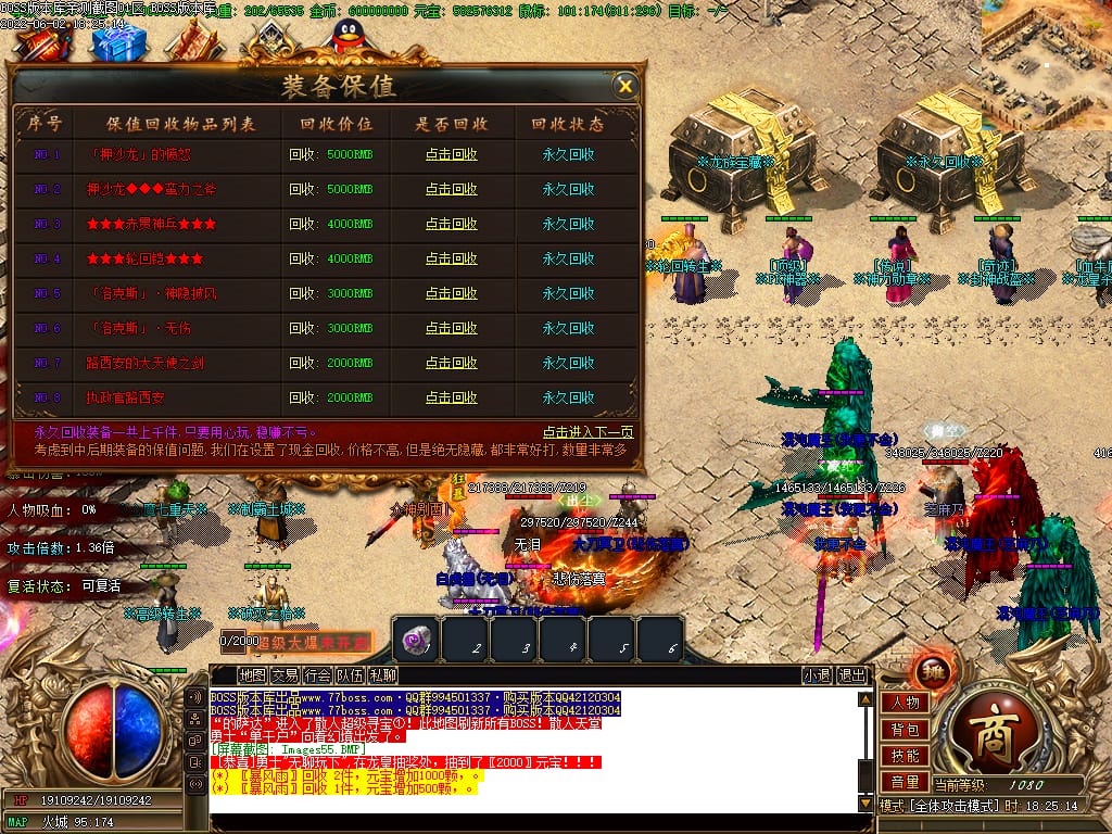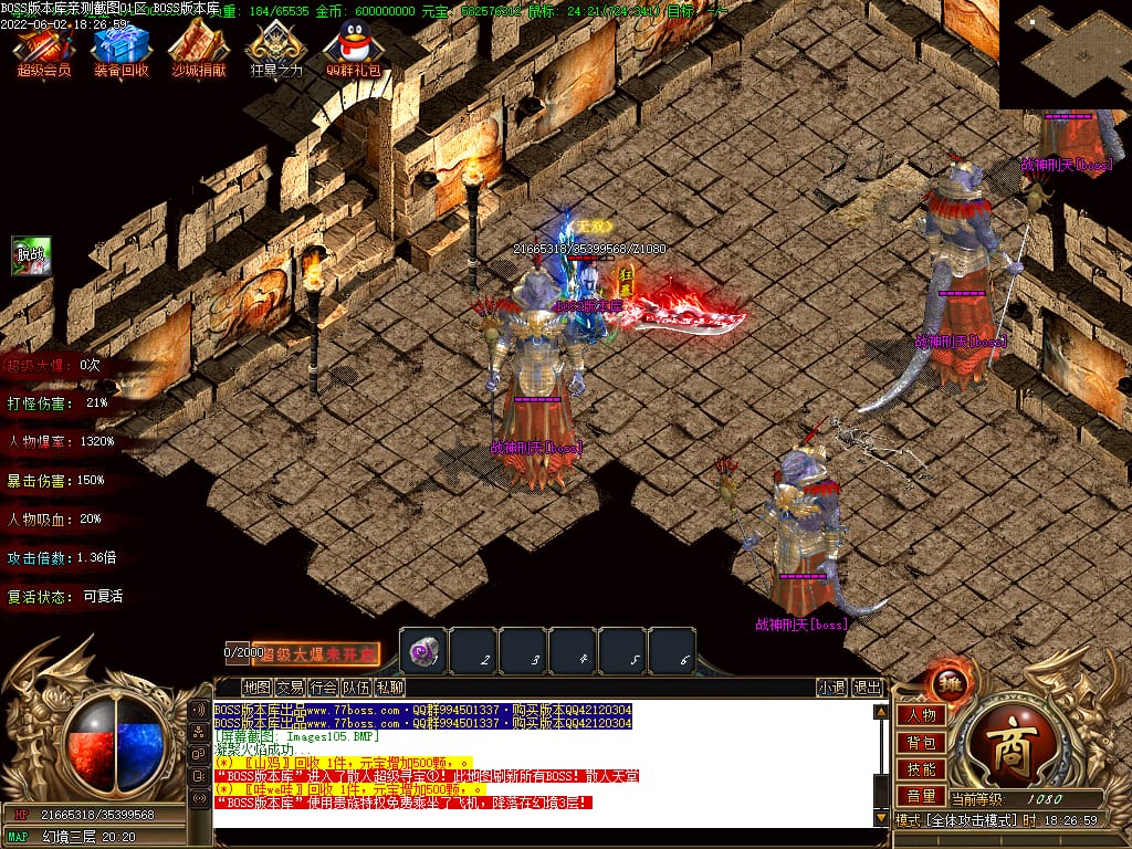 本服游戏装备全部靠打BOSS获得.BOSS血越多.那说明此BOSS爆率更高.游戏管理绝不会出售任何物品.保证游戏公平