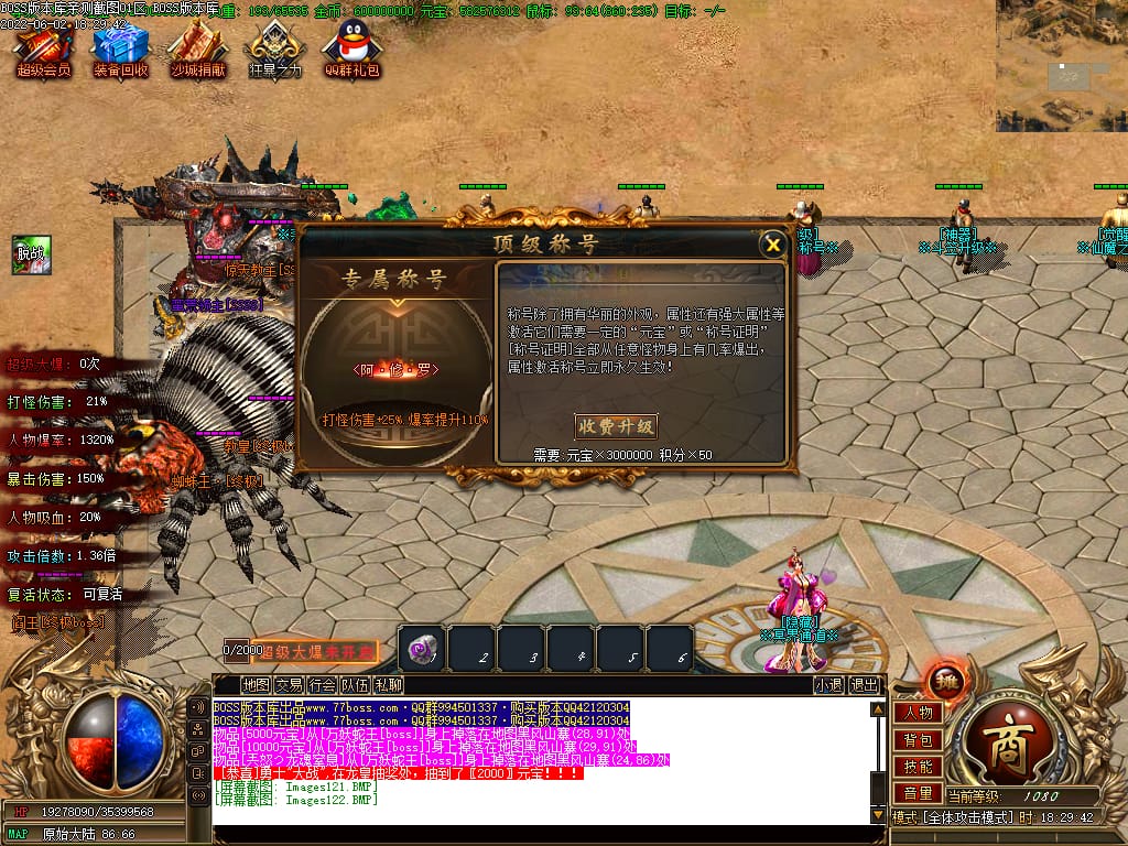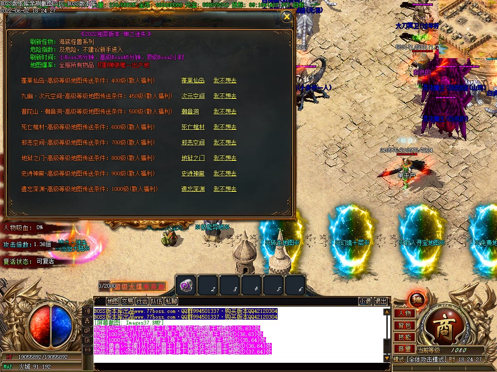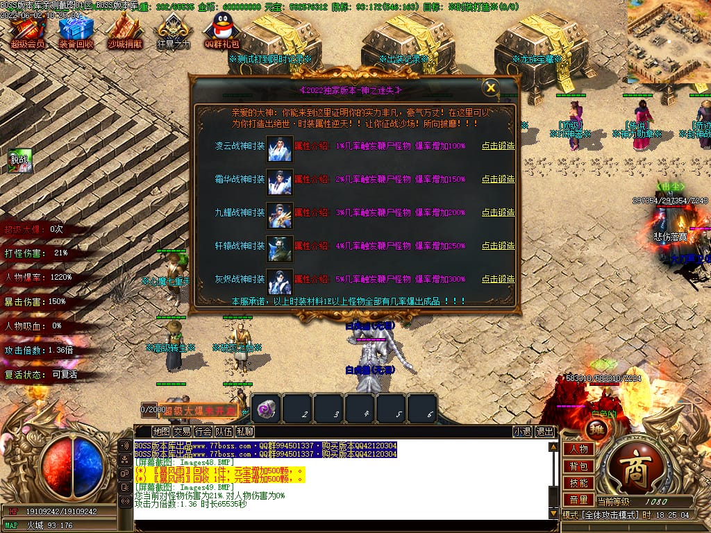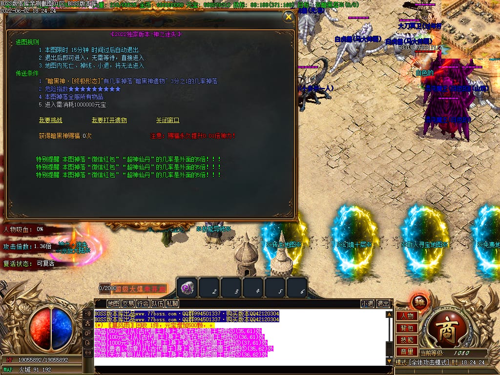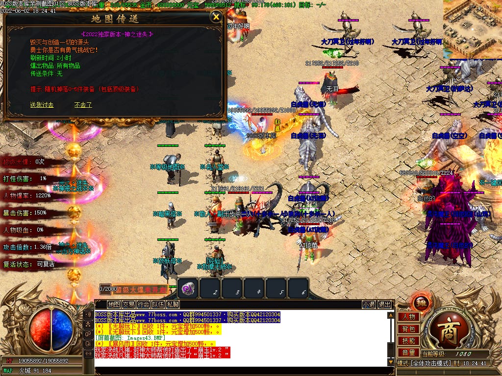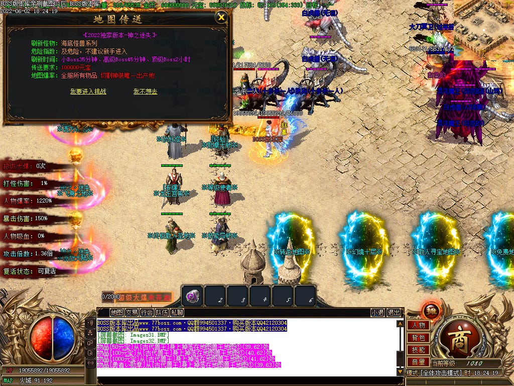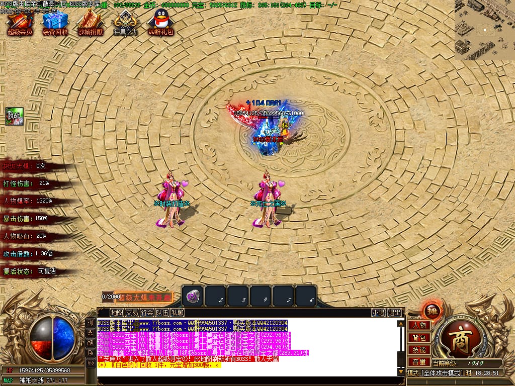 本服游戏装备全部靠打BOSS获得.BOSS血越多.那说明此BOSS爆率更高.游戏管理绝不会出售任何物品.保证游戏公平