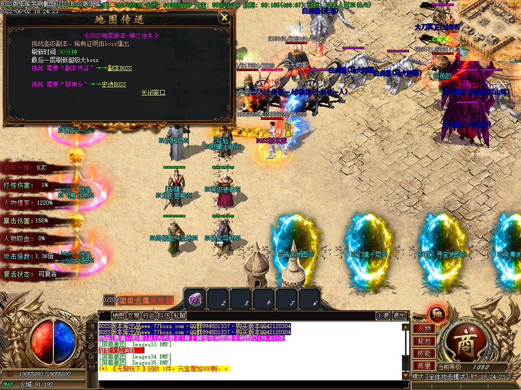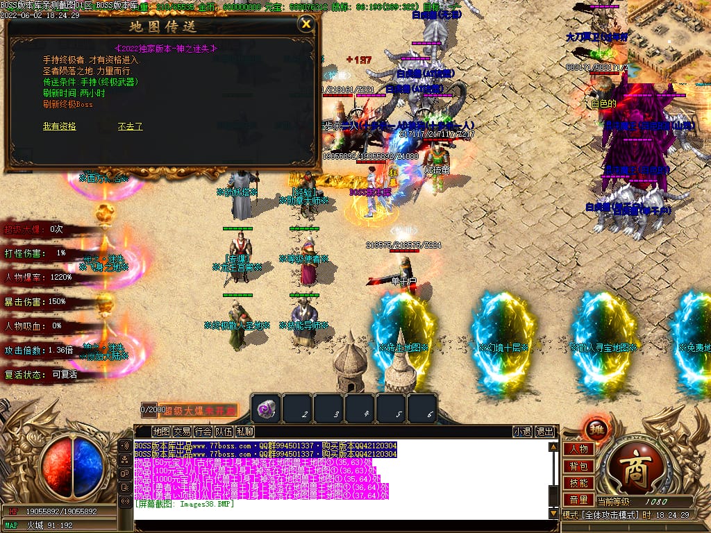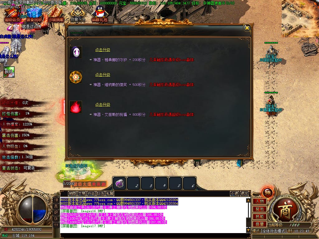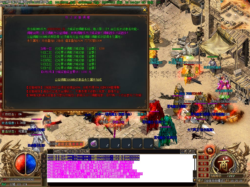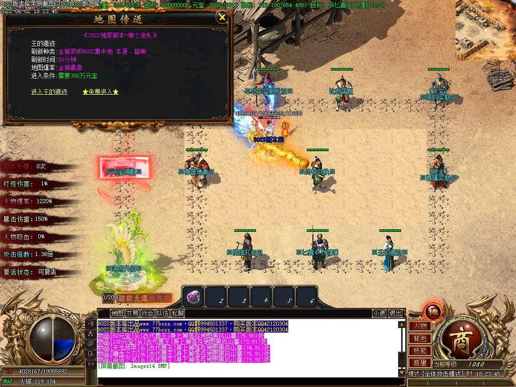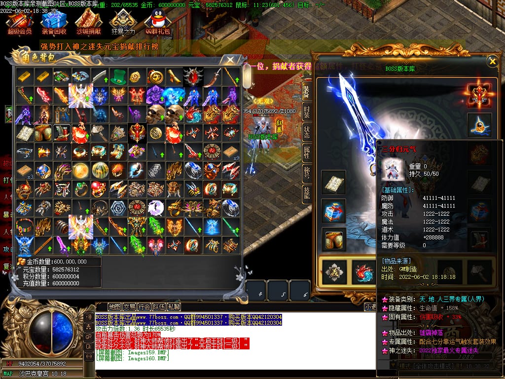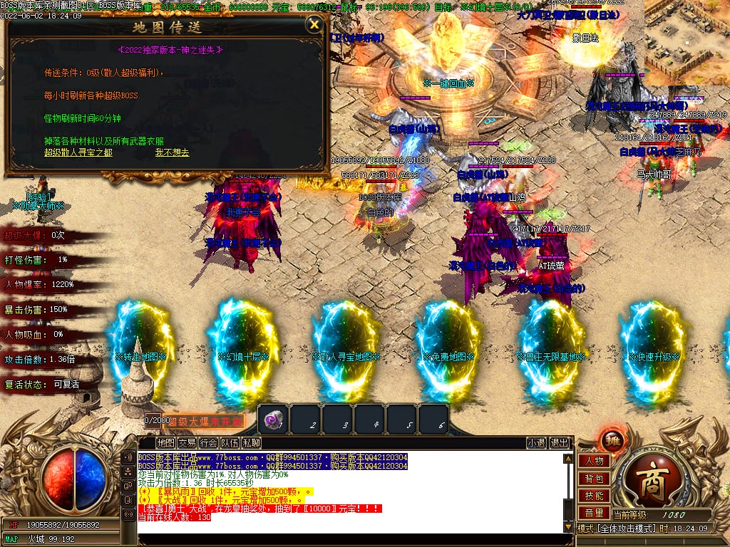 本服游戏装备全部靠打BOSS获得.BOSS血越多.那说明此BOSS爆率更高.游戏管理绝不会出售任何物品.保证游戏公平