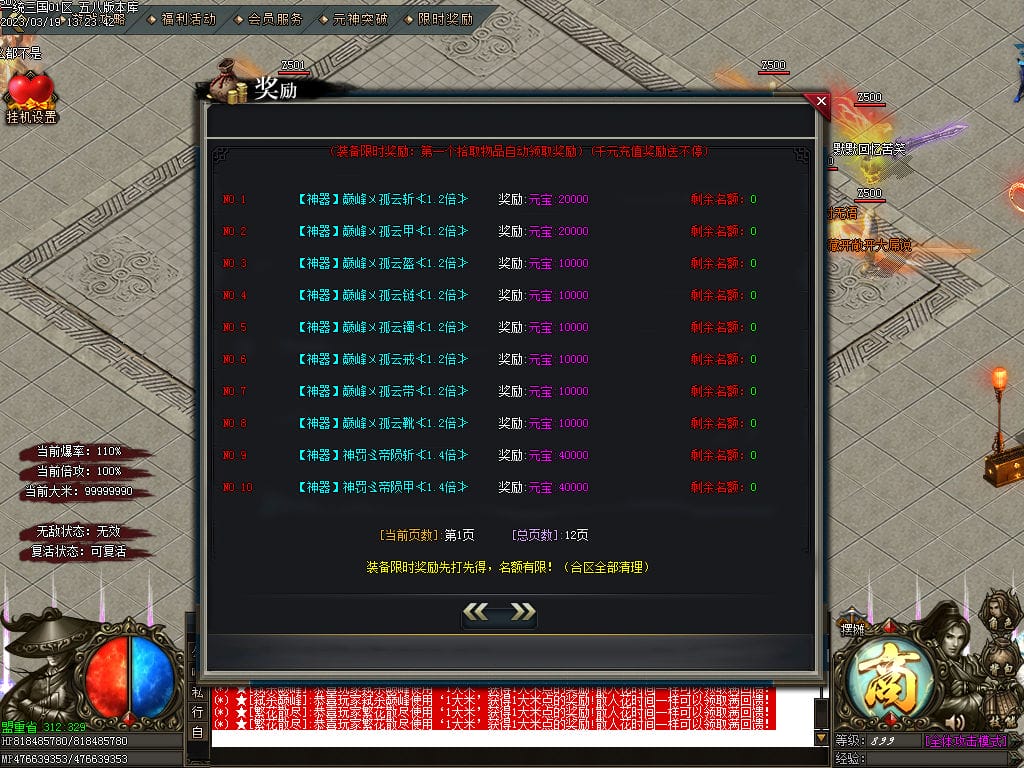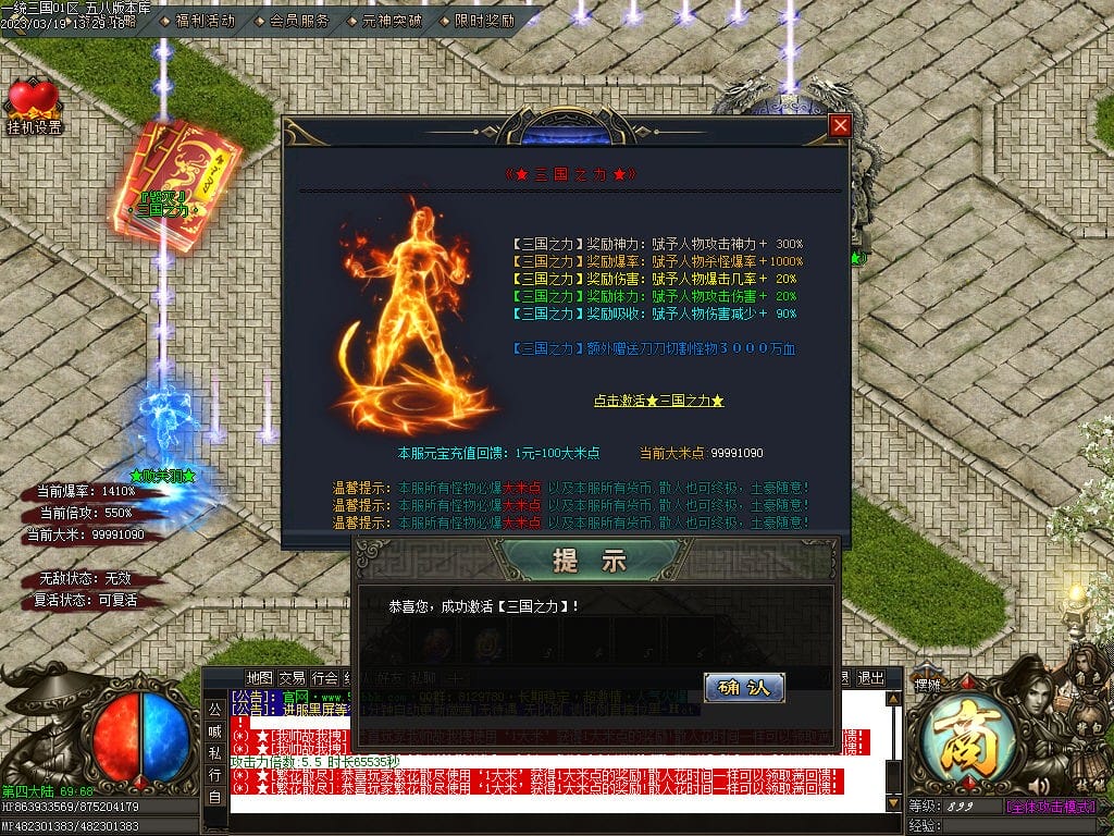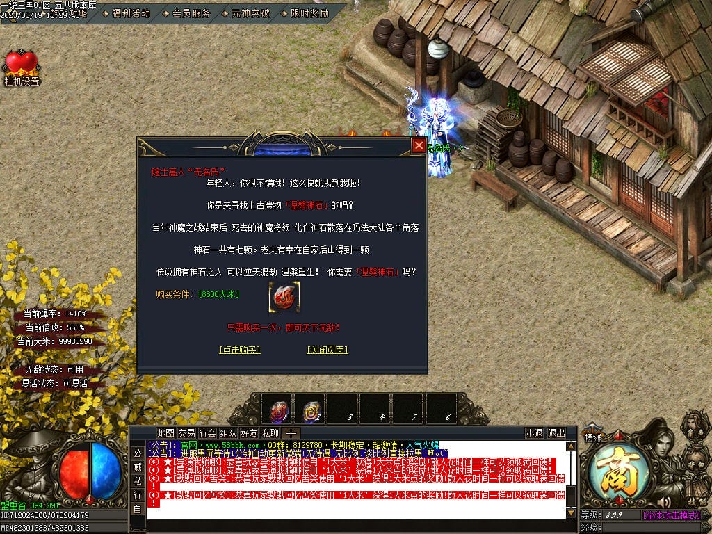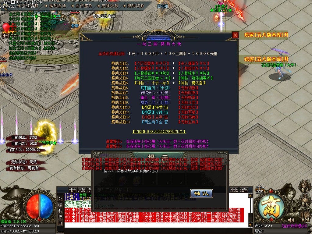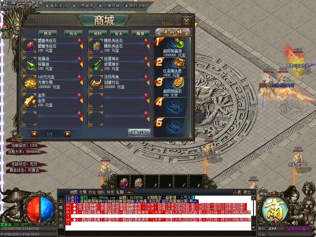 全货币充值比例:1米=100大米+100三国币+50000元宝