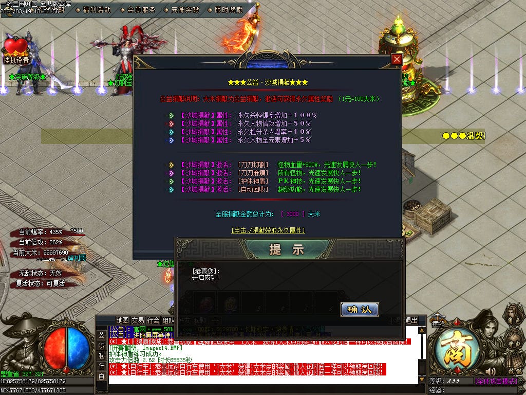 公益捐献说明:大米捐献为公益捐献,激活可获得永久属性奖励(( 1米=100大米)