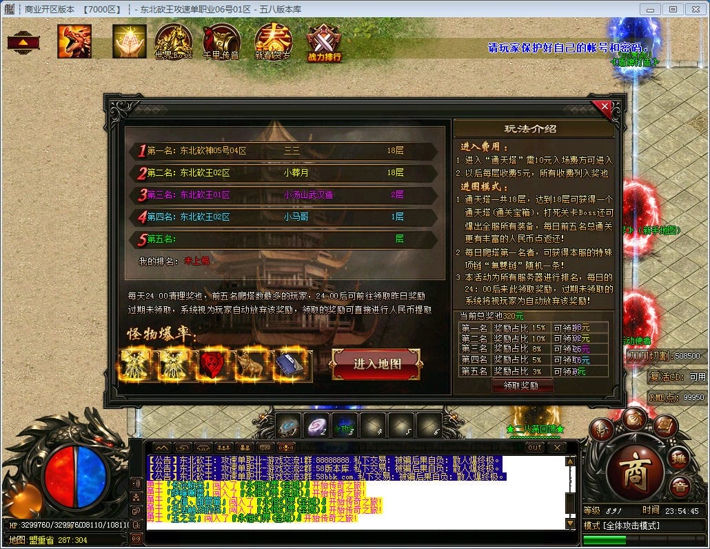 【介绍】所有地图免费进,小怪都爆终极,不要问我为什么,两横一竖就是干!
