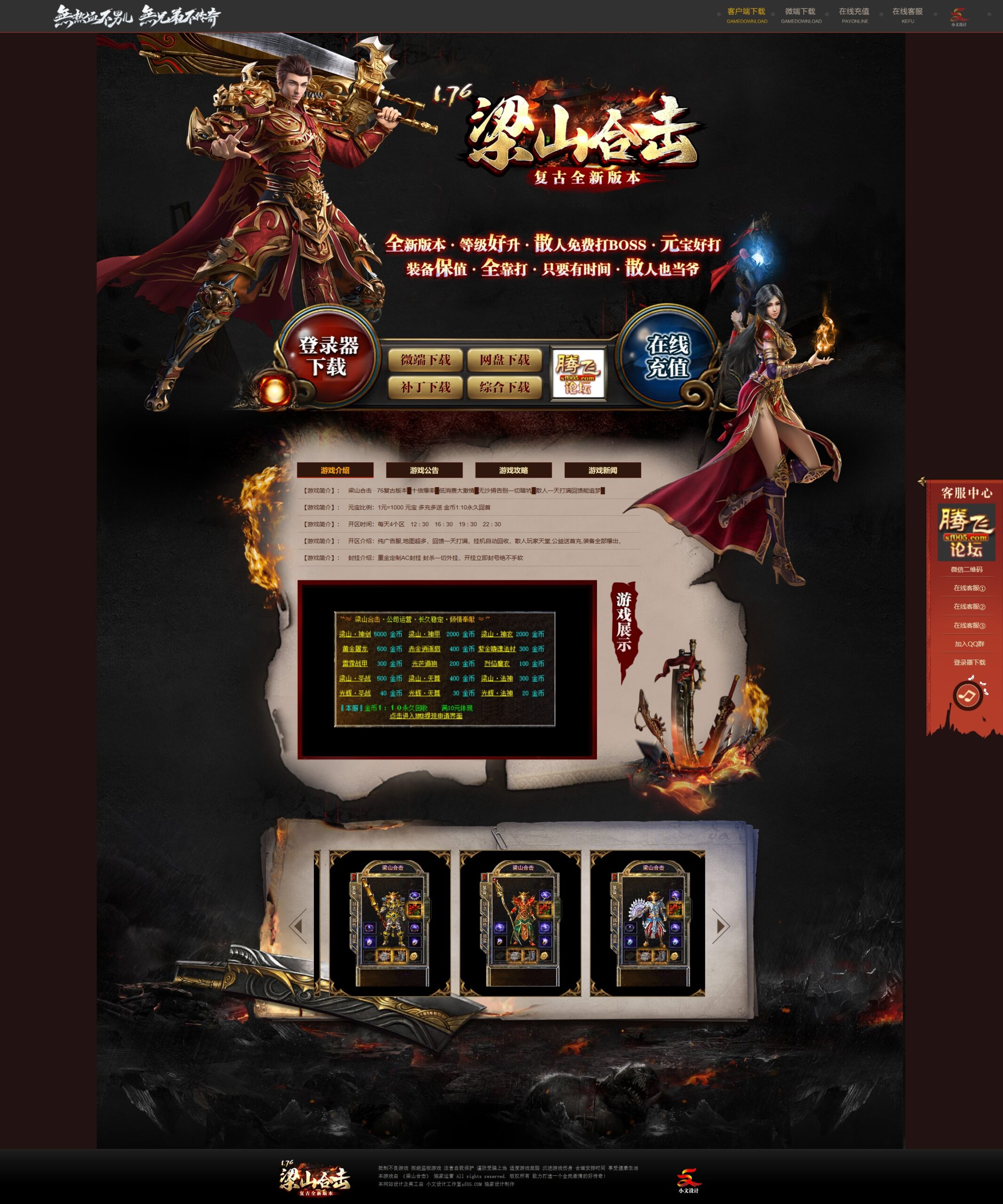 【游戏简介】:梁山合击 · 76复古版本█十倍爆率█低消费大激情█无沙捐告别一切暗坑█散人一天打满回馈能追梦█