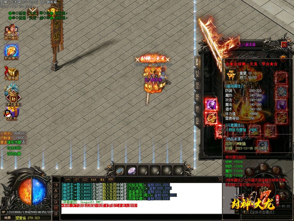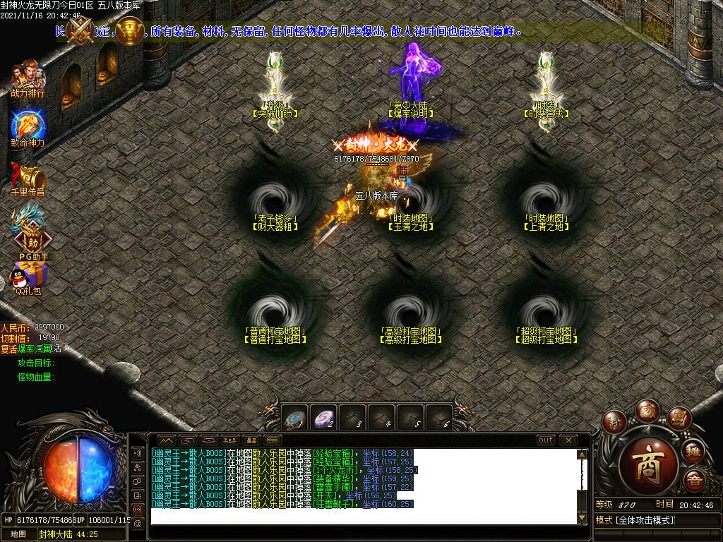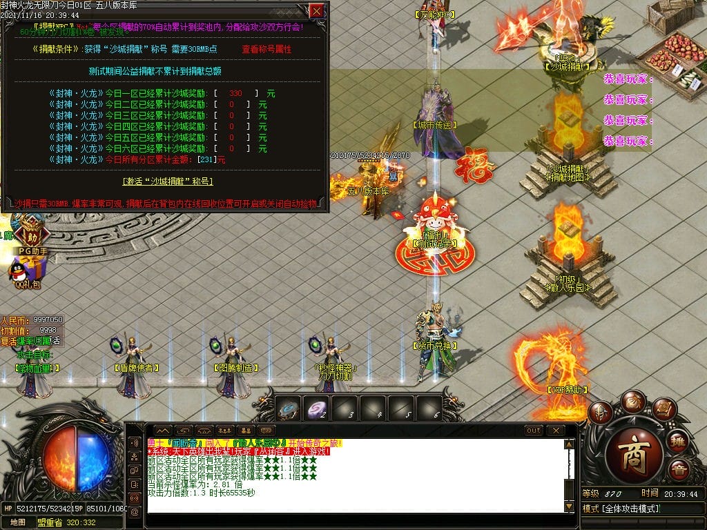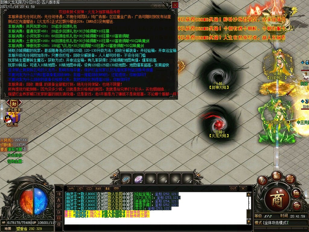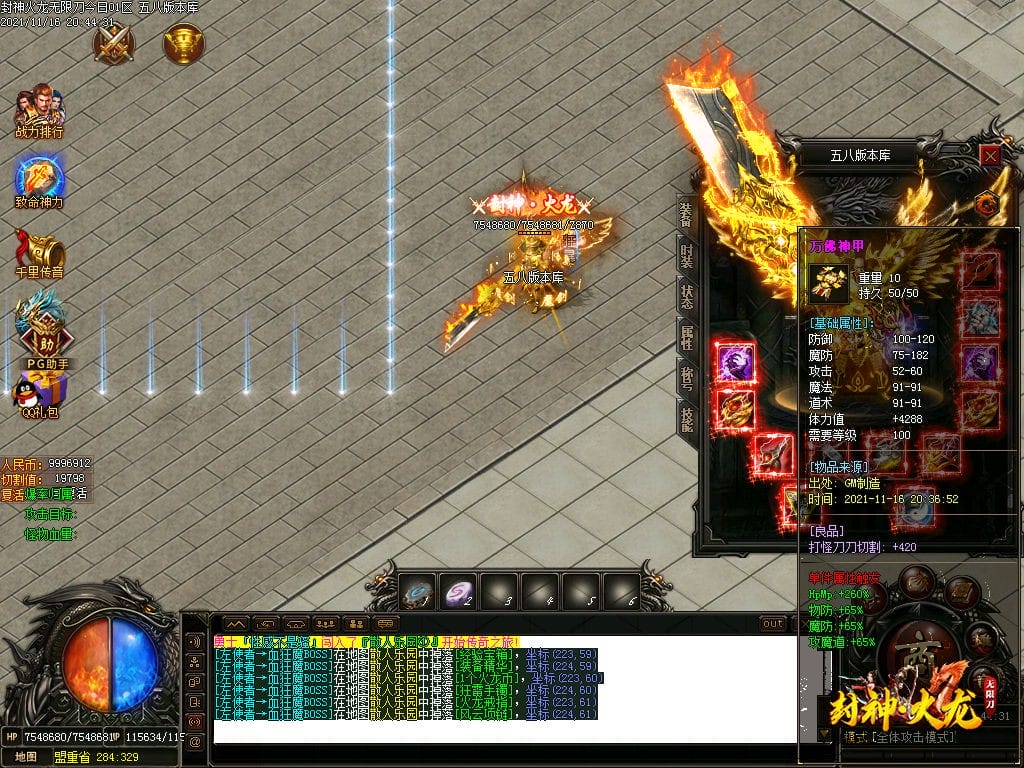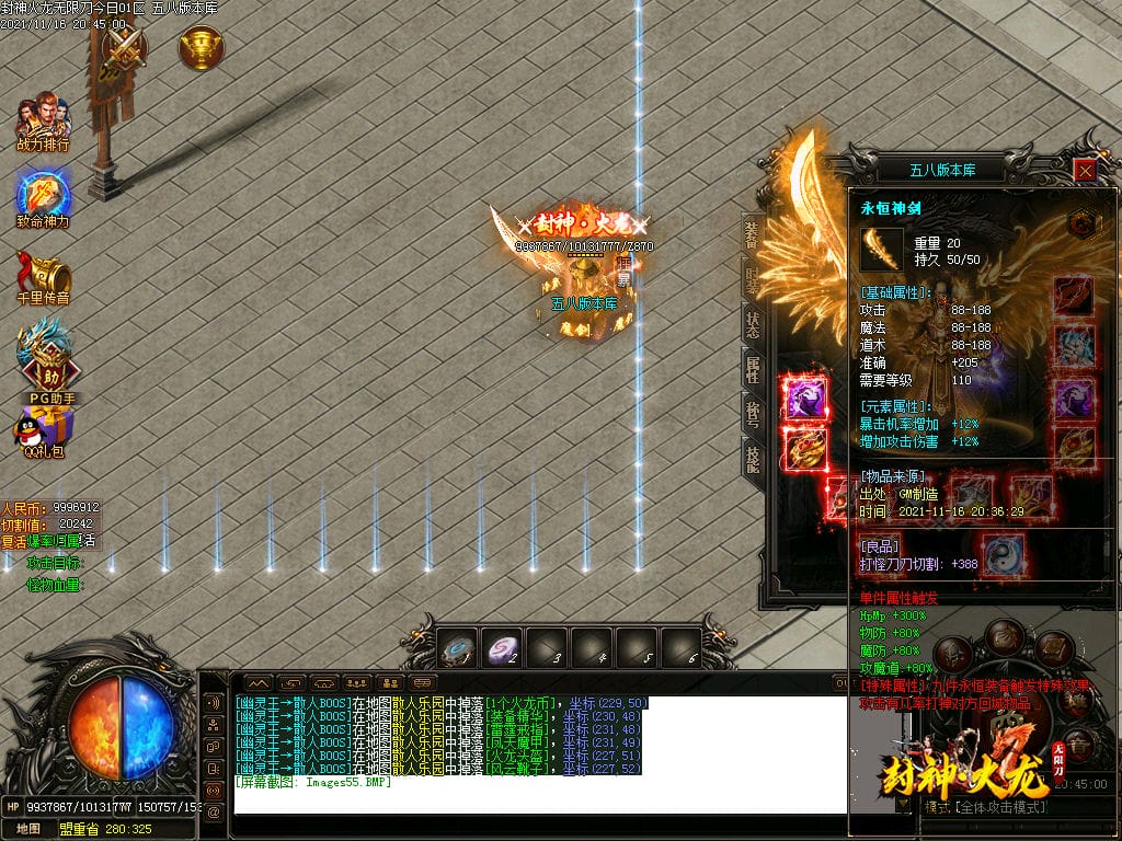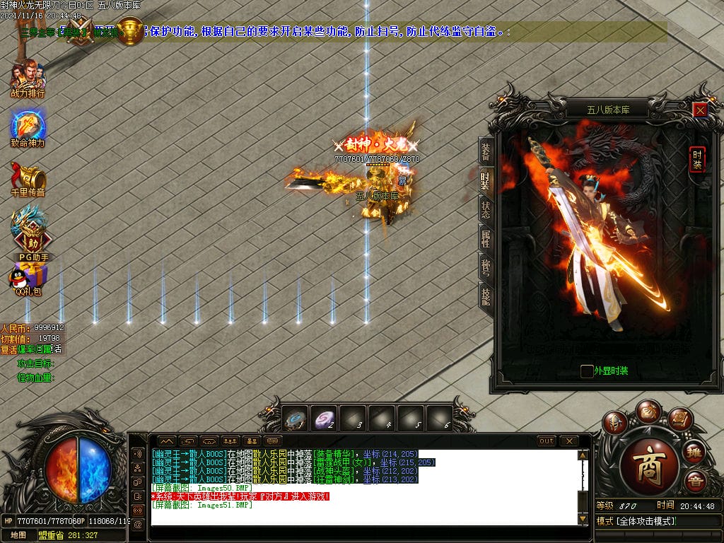 10月封神火龙无限刀单职业传奇版本-带假人-带光柱-沙城捐献-限时首爆