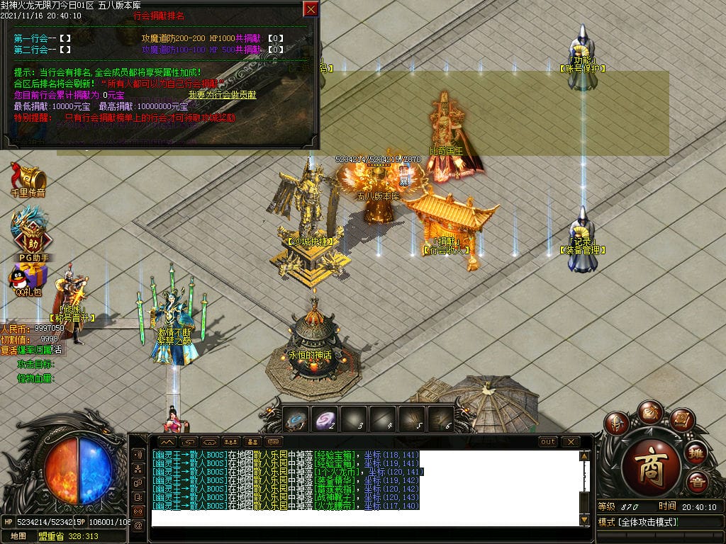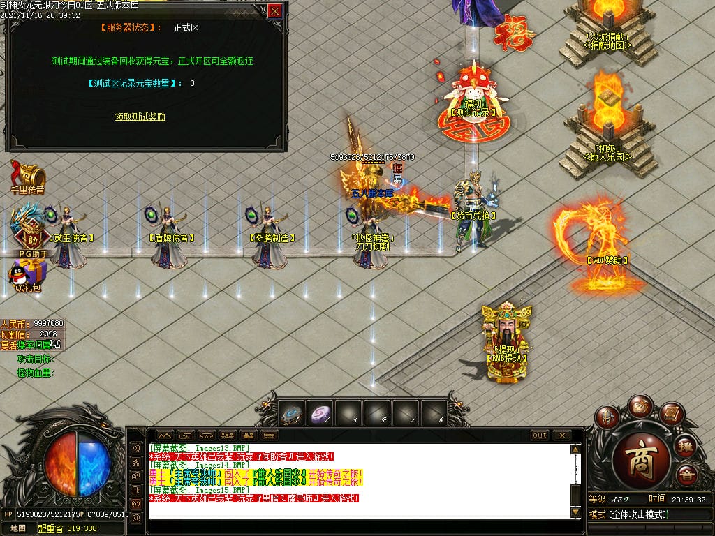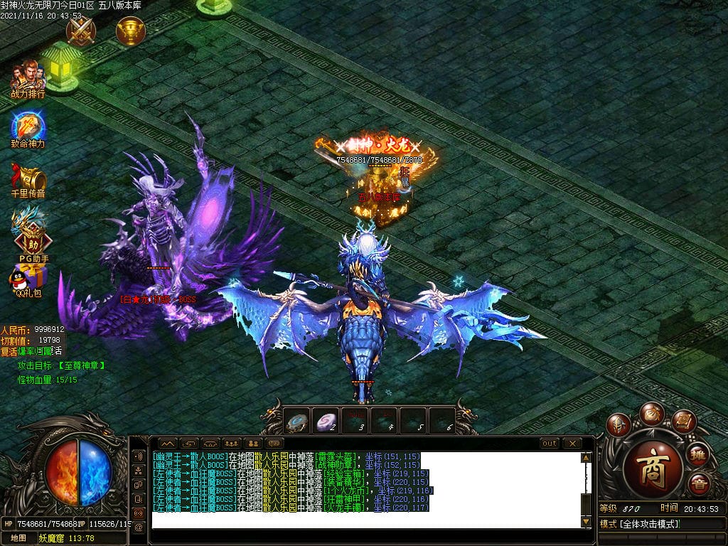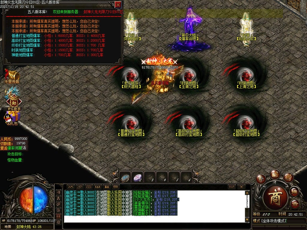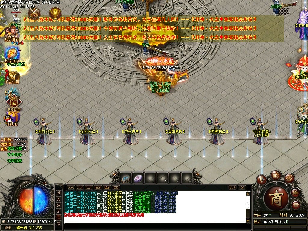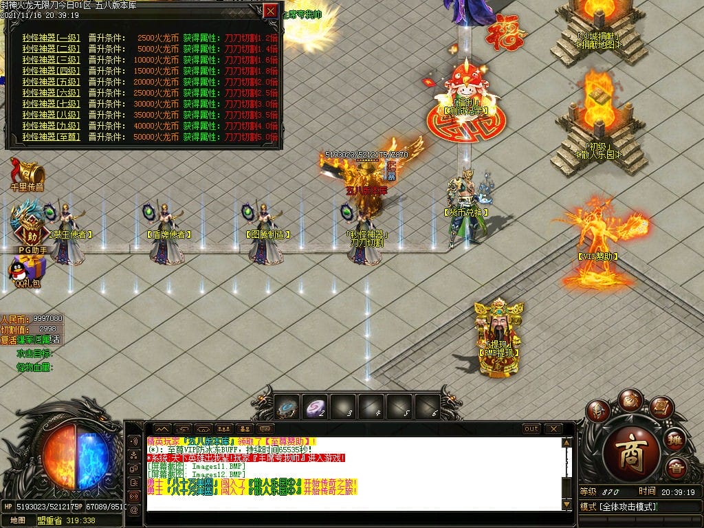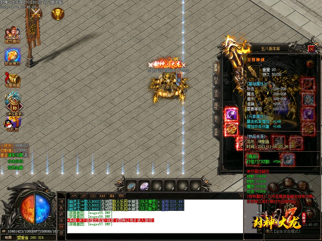 10月封神火龙无限刀单职业传奇版本-带假人-带光柱-沙城捐献-限时首爆
