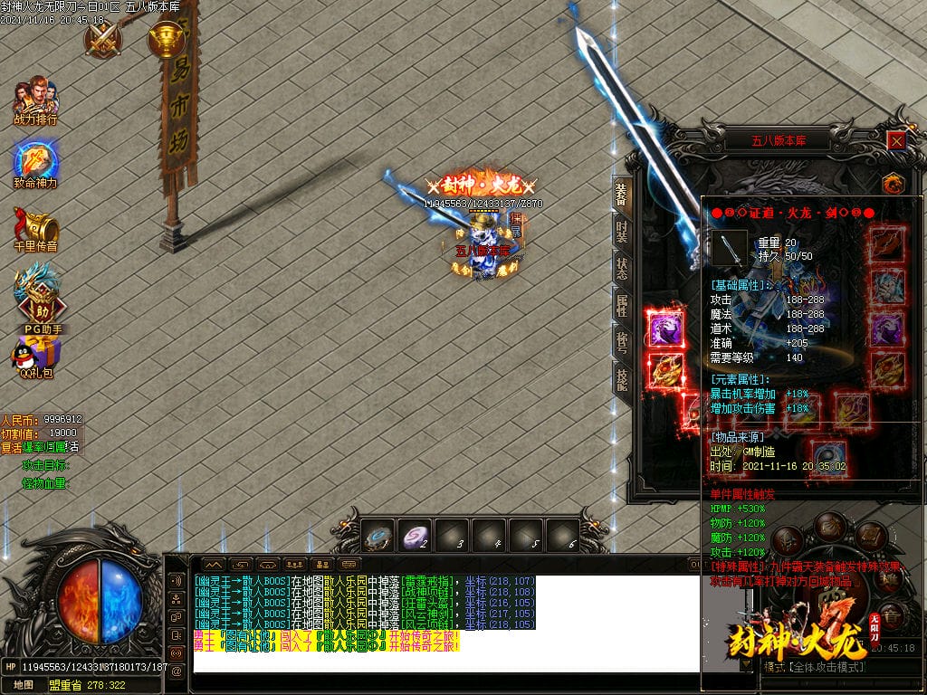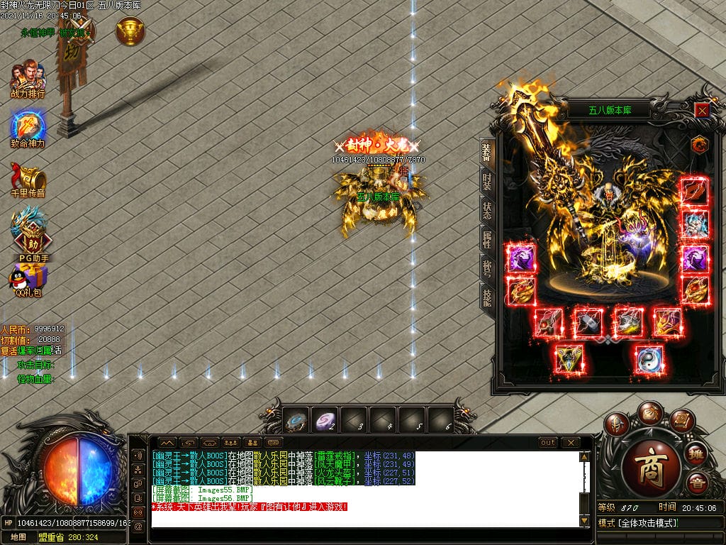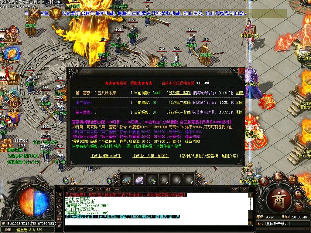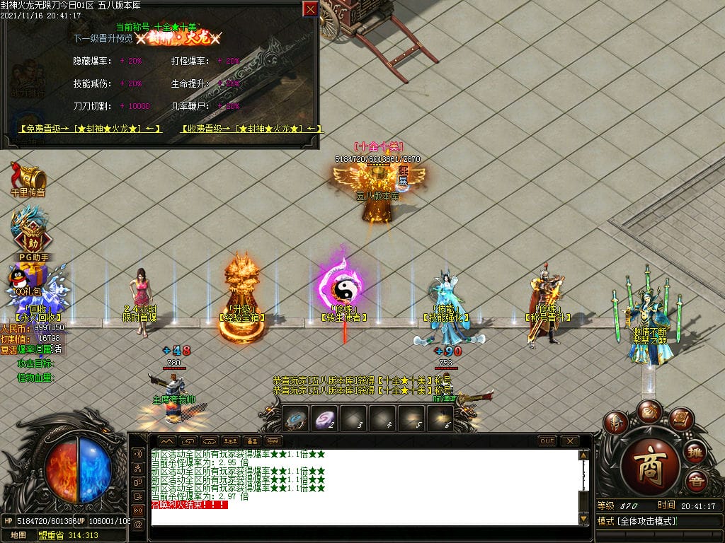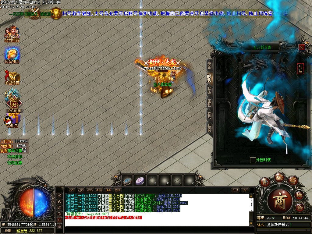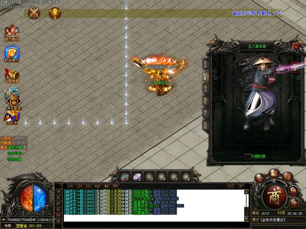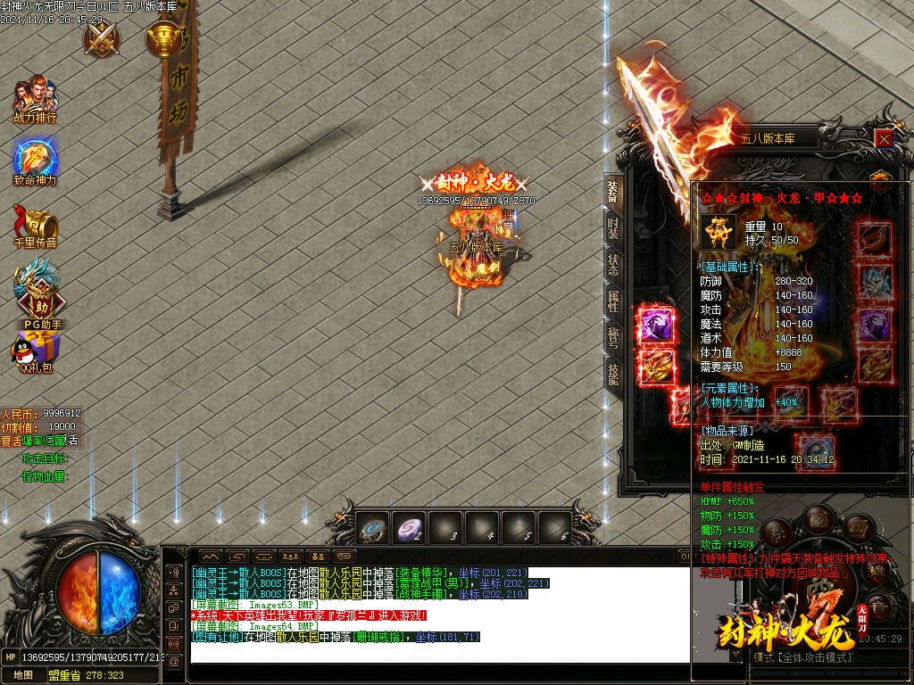 10月封神火龙无限刀单职业传奇版本-带假人-带光柱-沙城捐献-限时首爆
