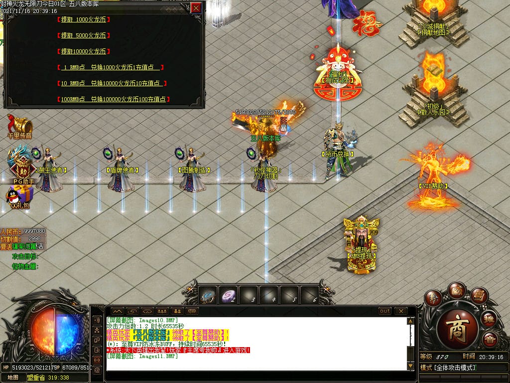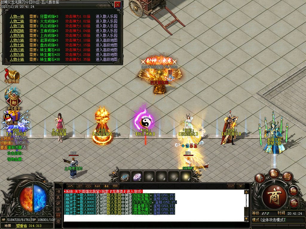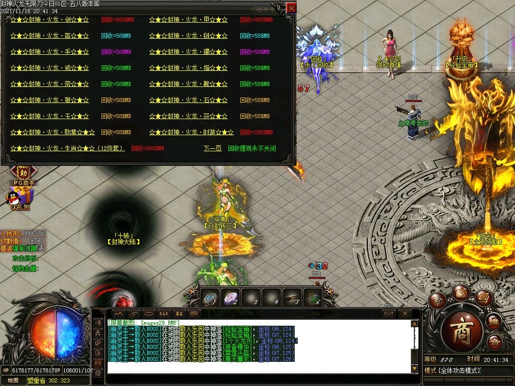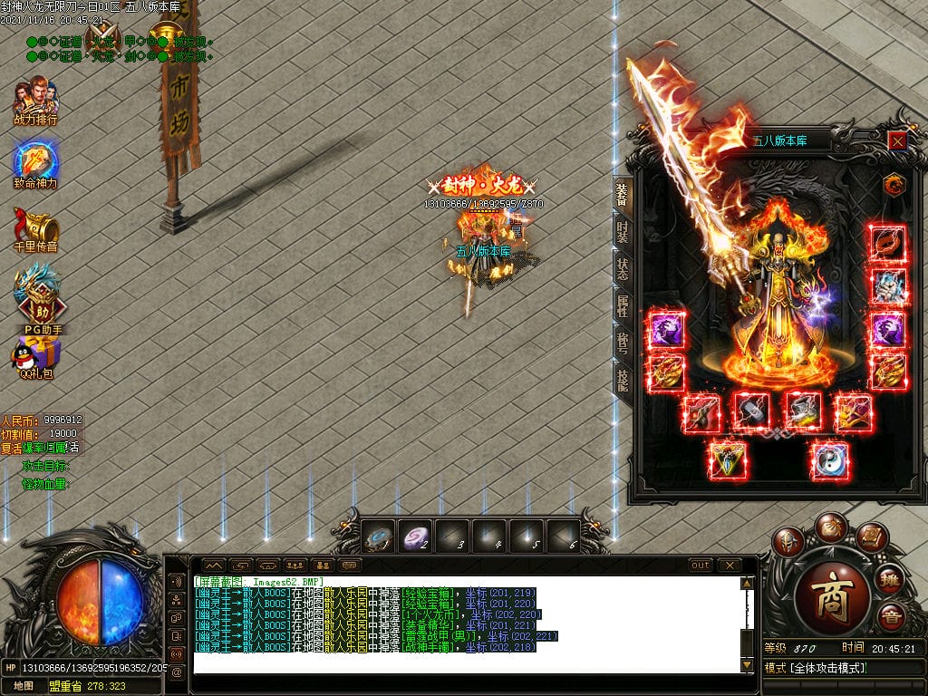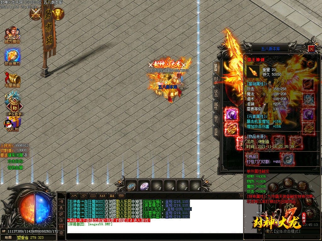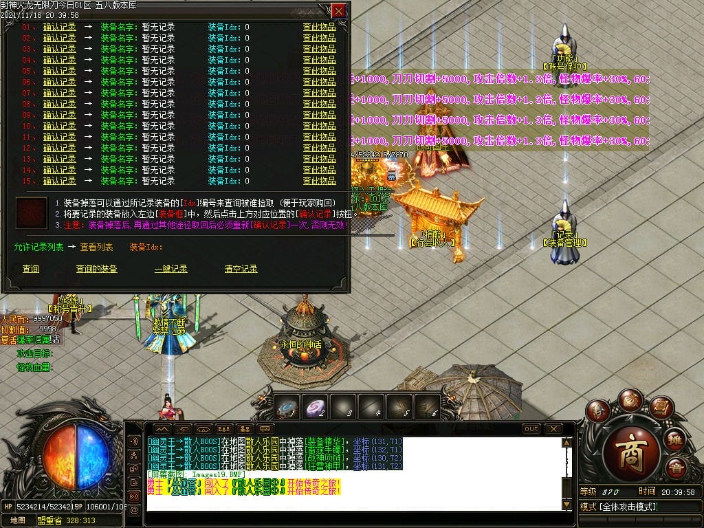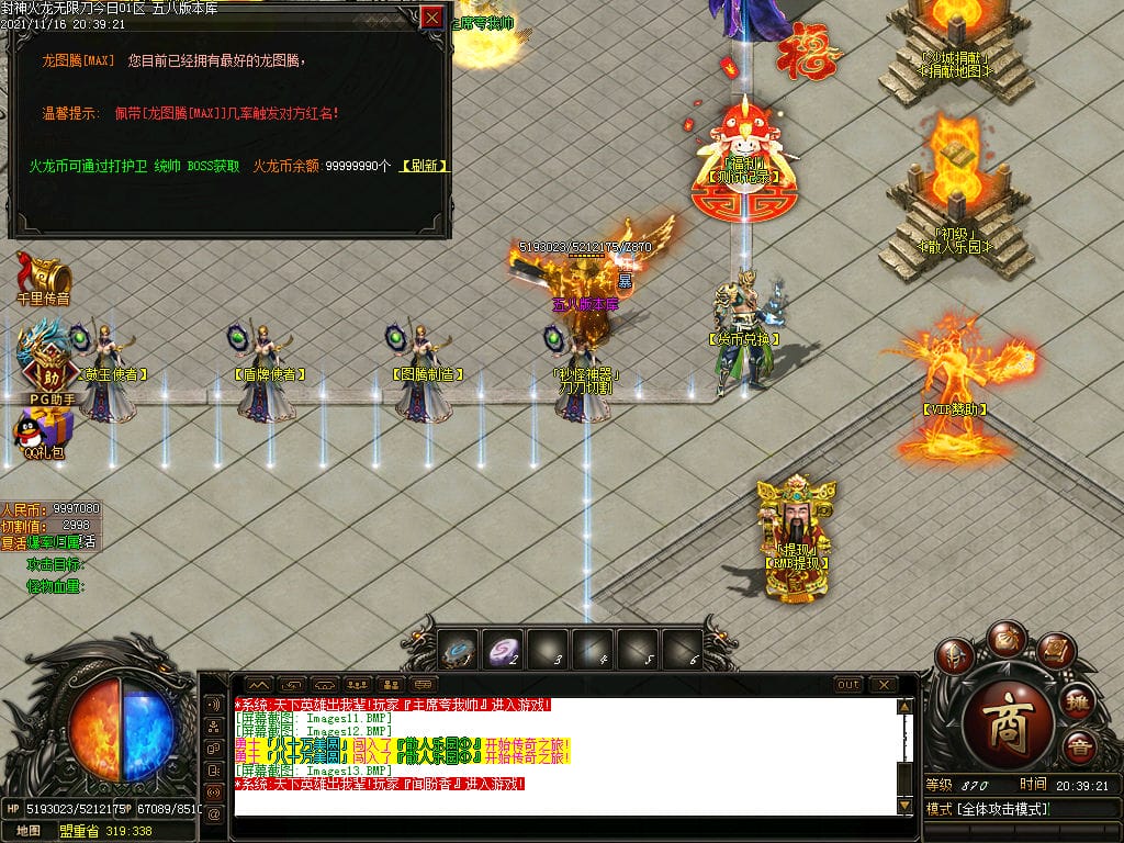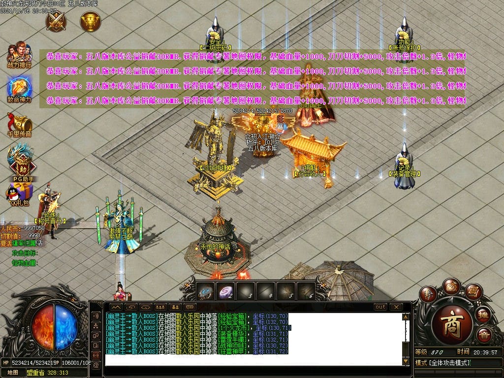 10月封神火龙无限刀单职业传奇版本-带假人-带光柱-沙城捐献-限时首爆