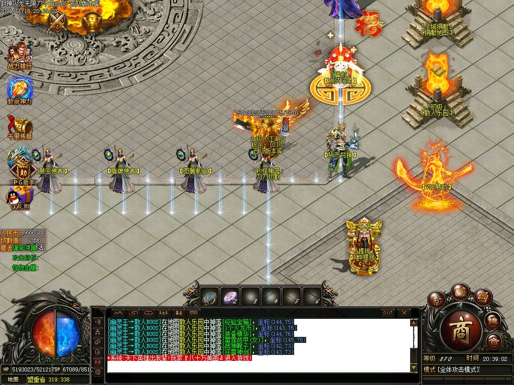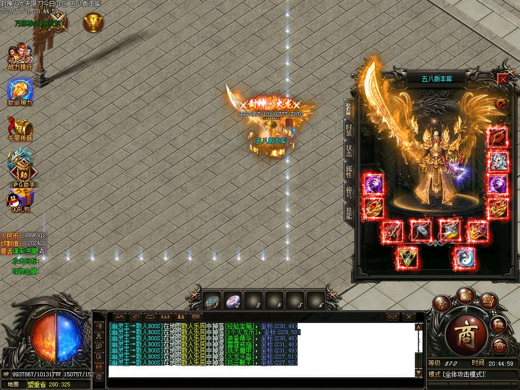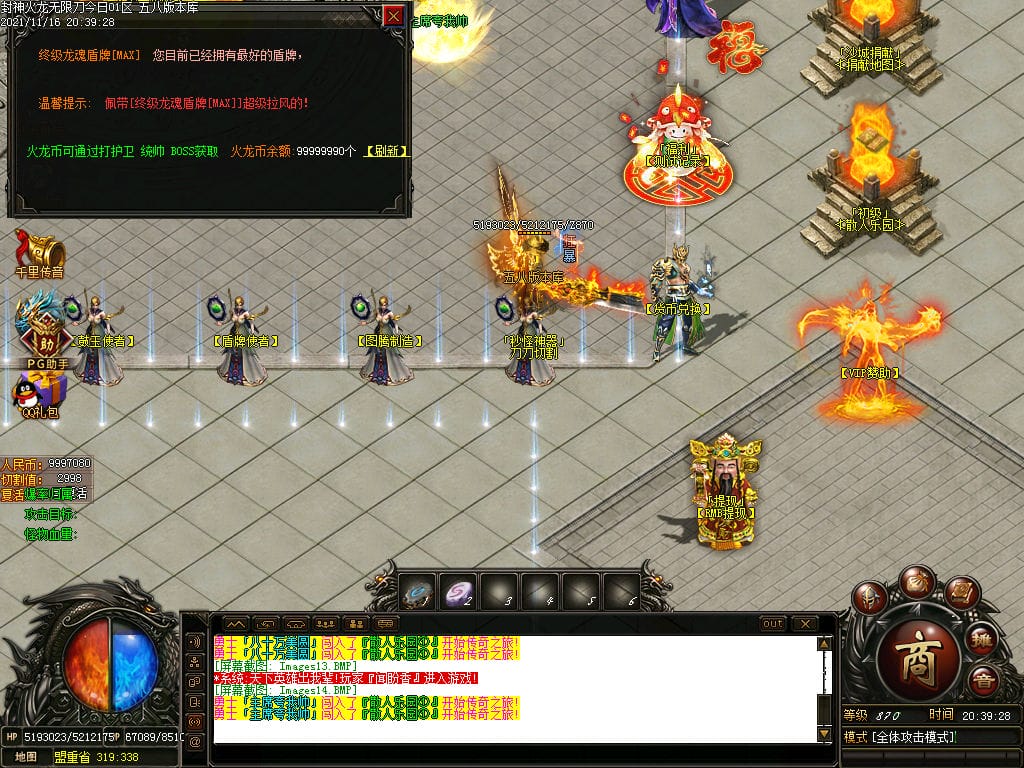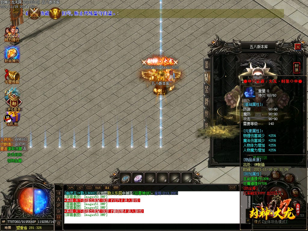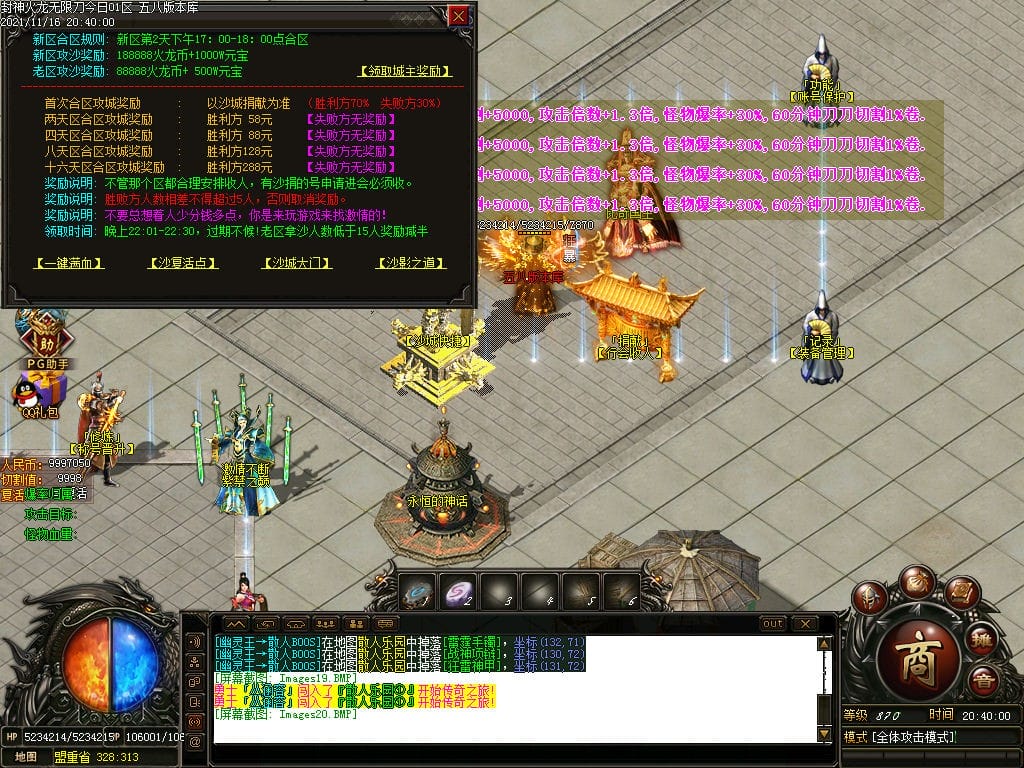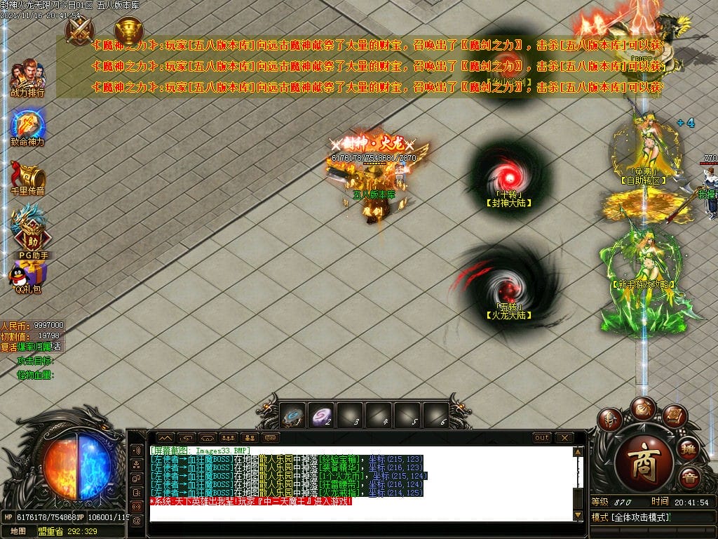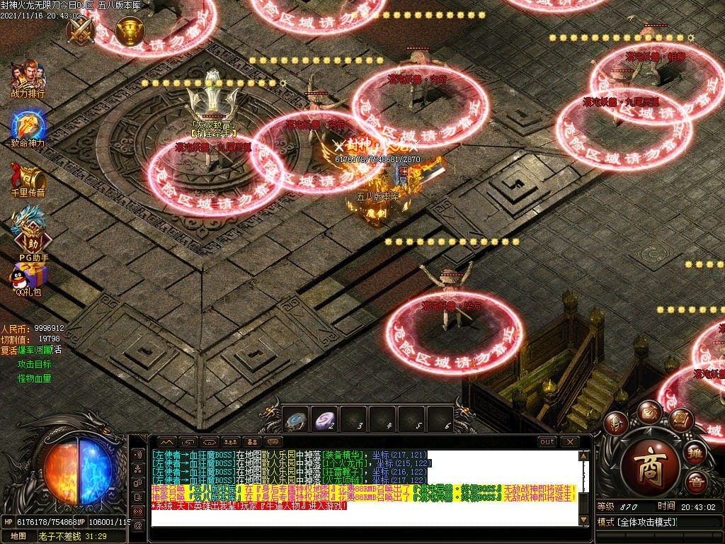 10月封神火龙无限刀单职业传奇版本-带假人-带光柱-沙城捐献-限时首爆