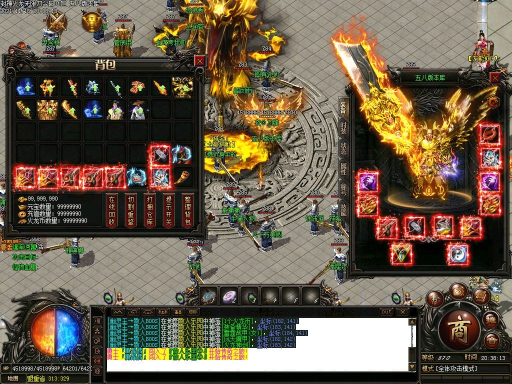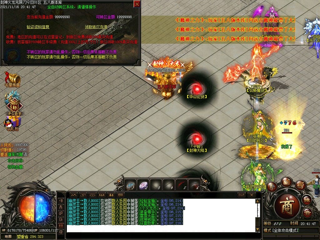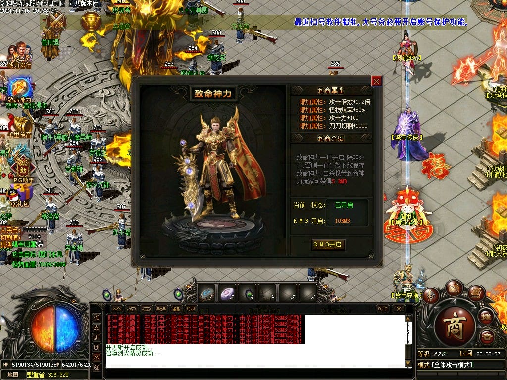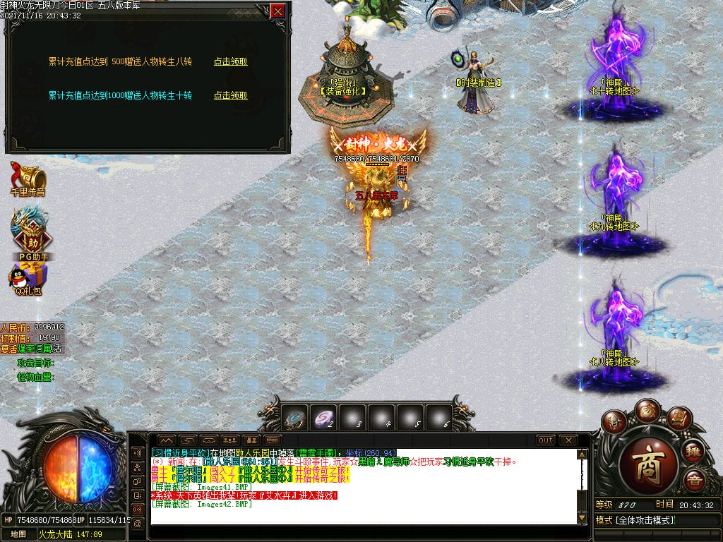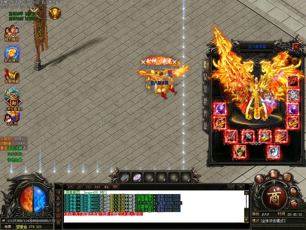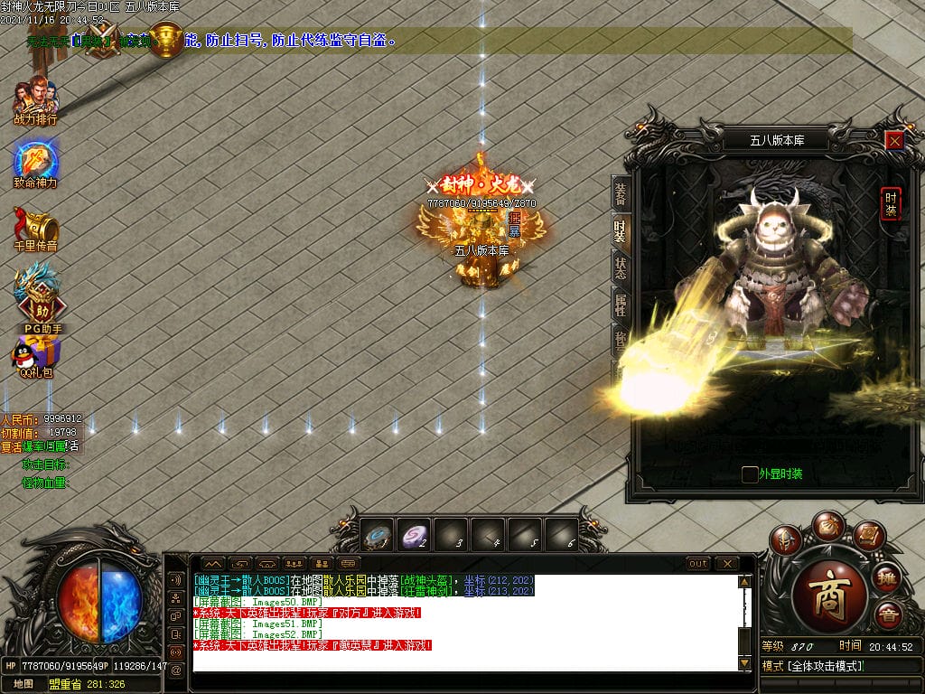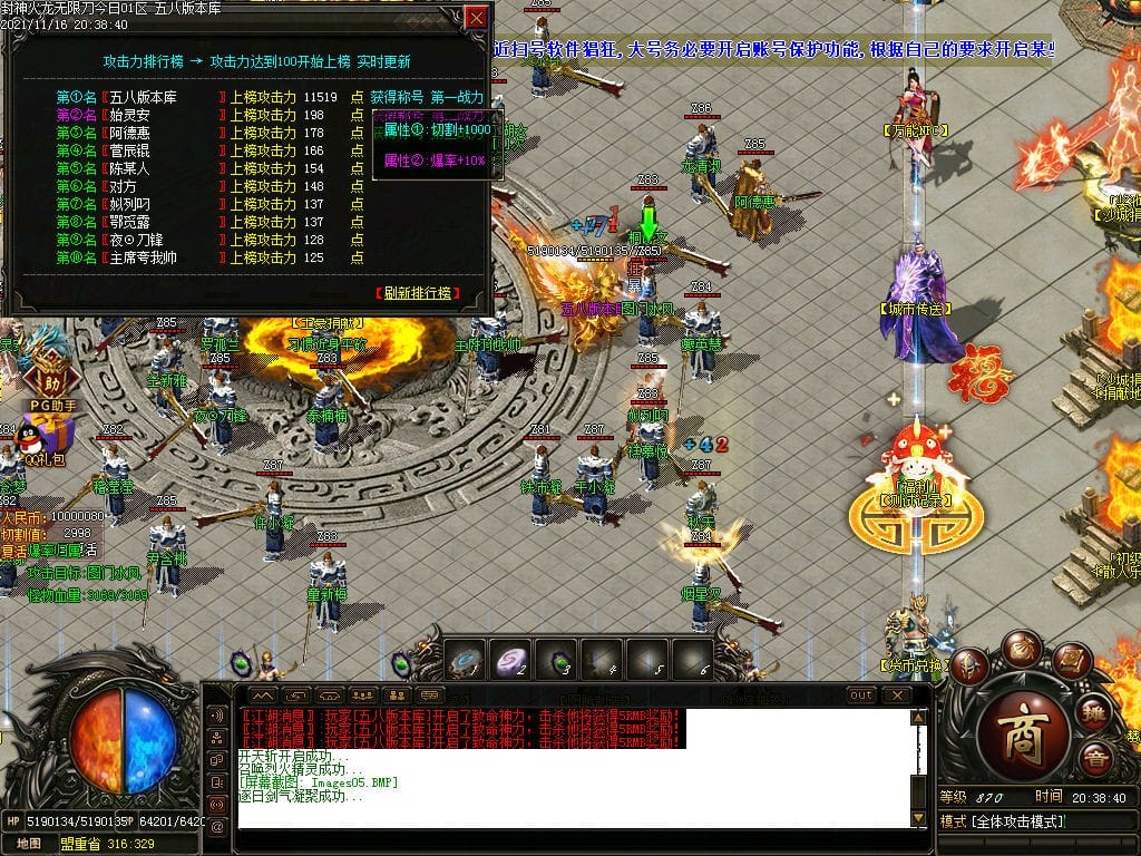 10月封神火龙无限刀单职业传奇版本-带假人-带光柱-沙城捐献-限时首爆
