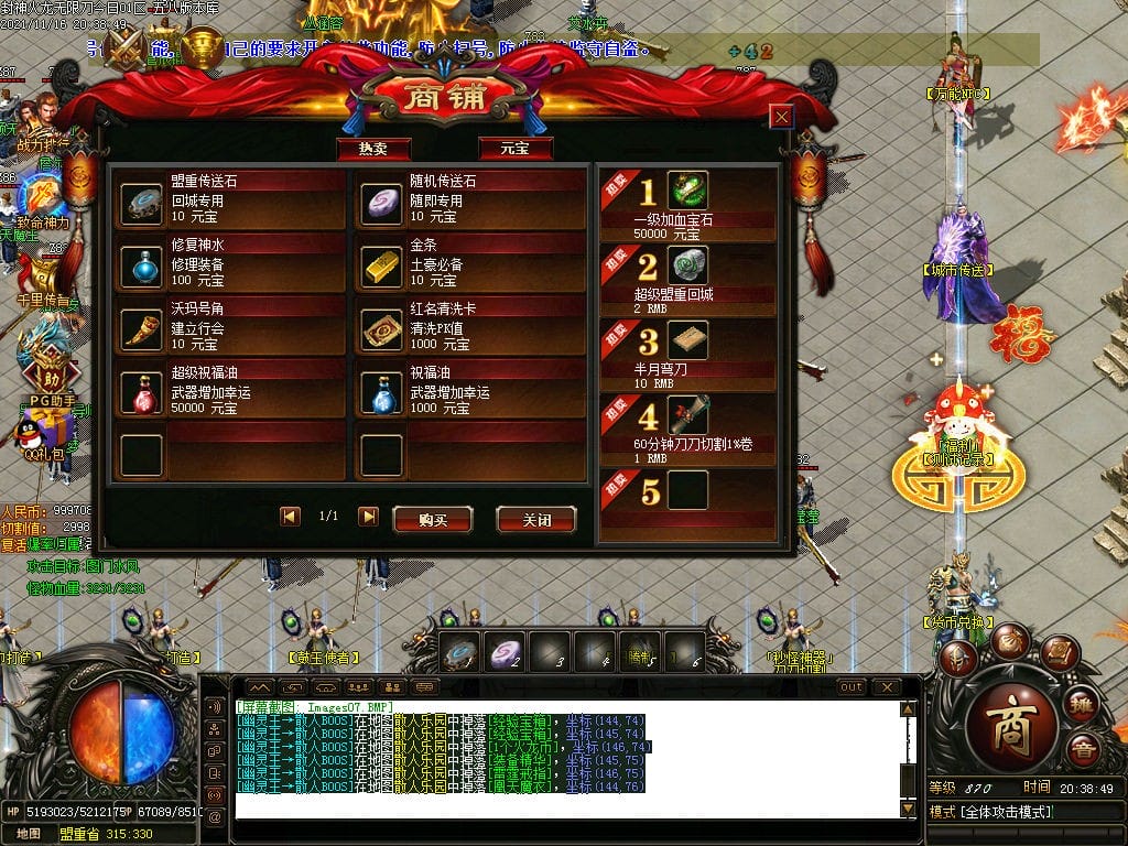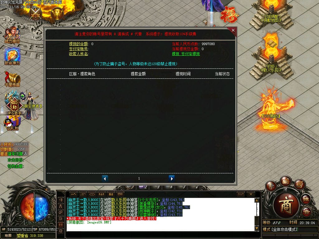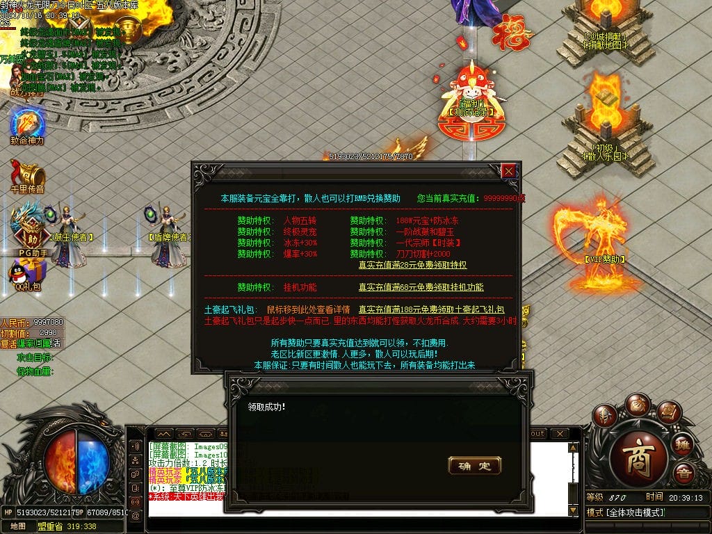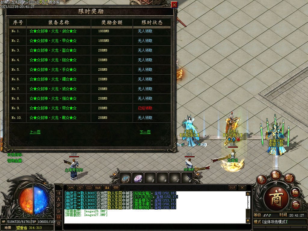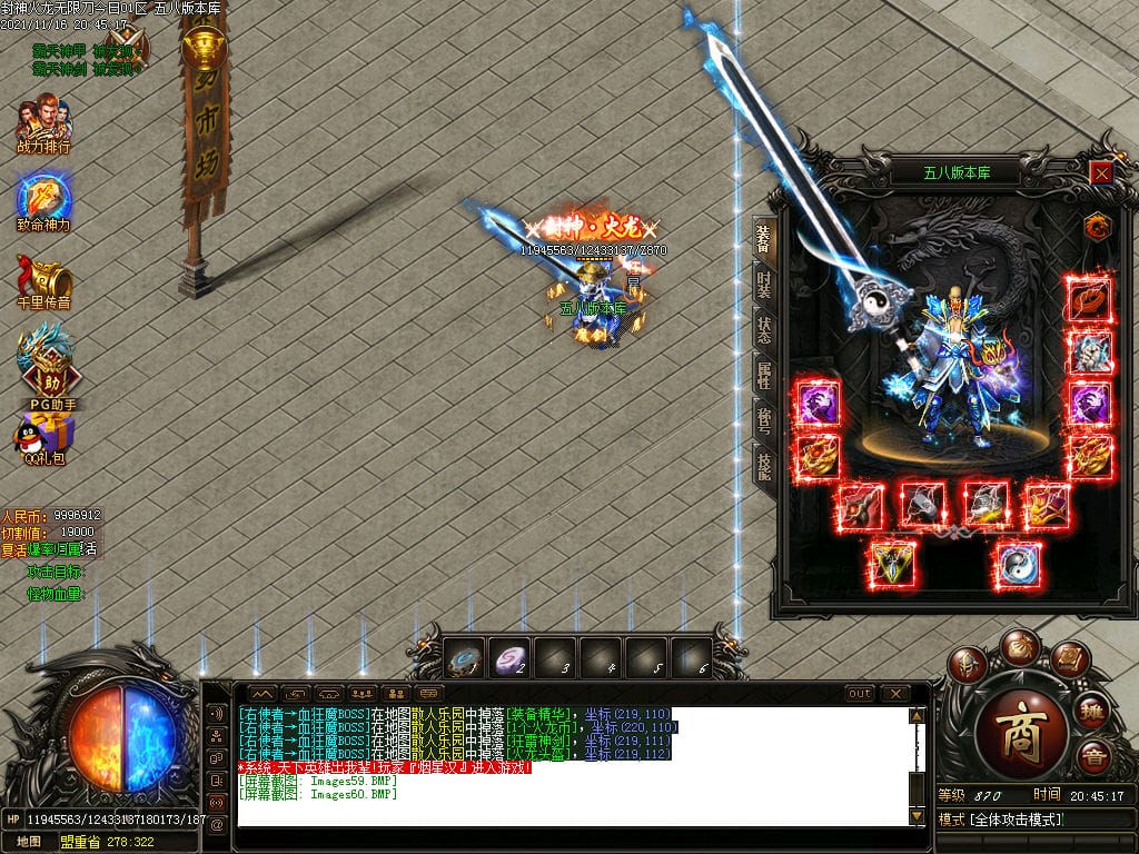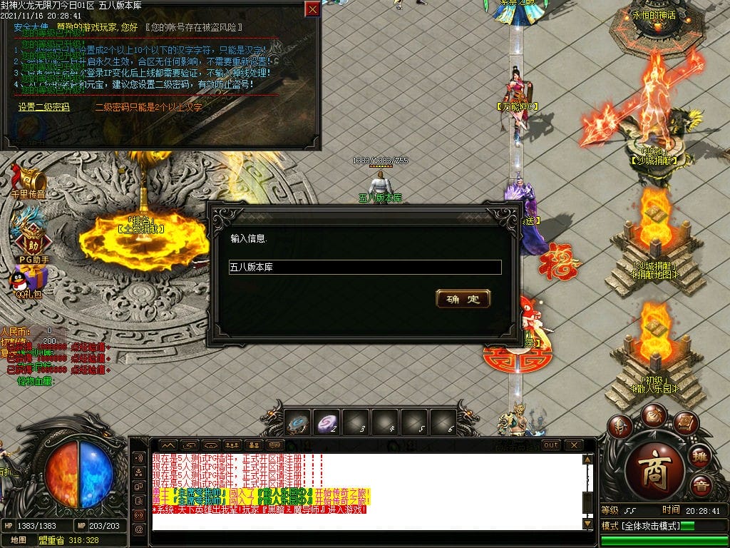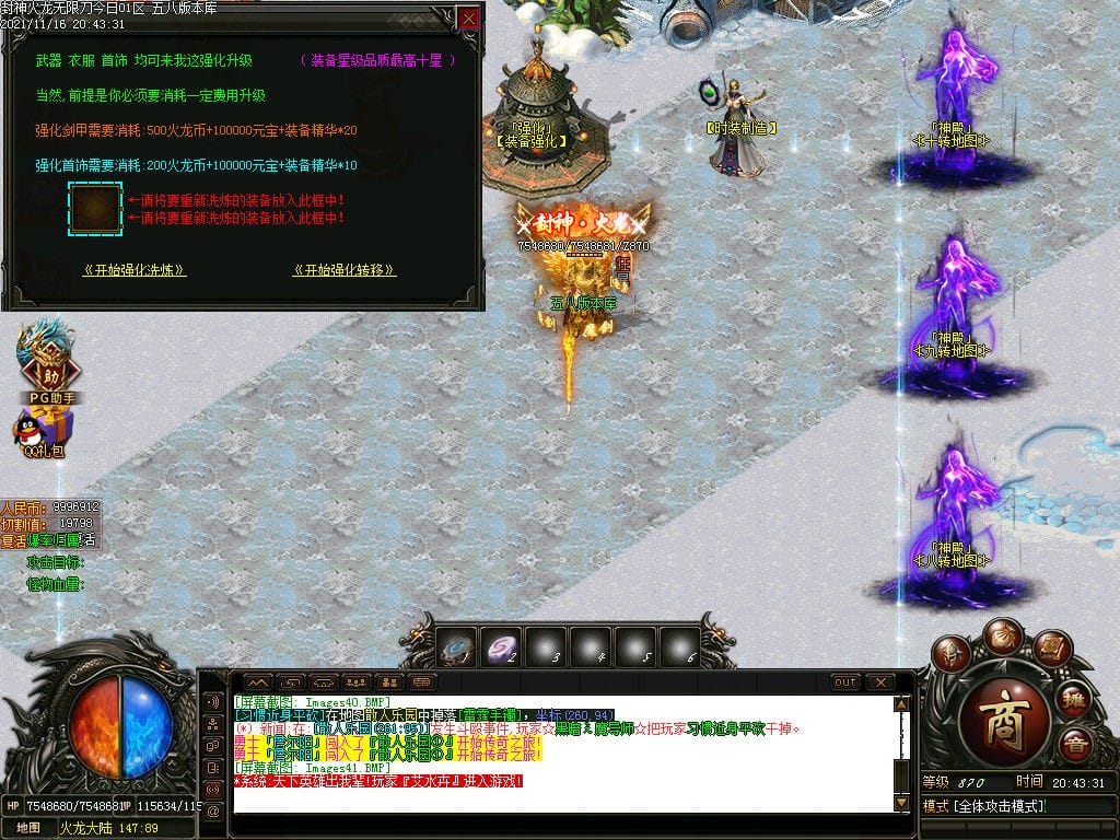 10月封神火龙无限刀单职业传奇版本-带假人-带光柱-沙城捐献-限时首爆