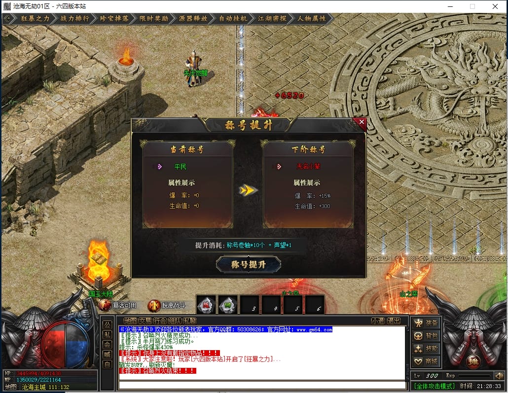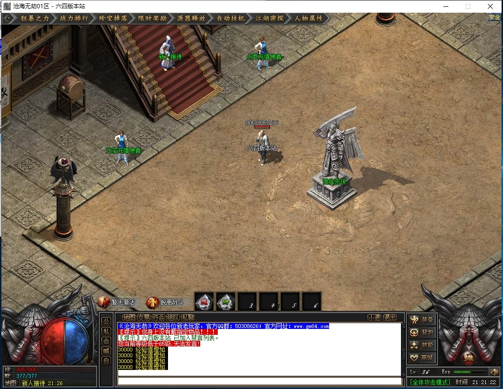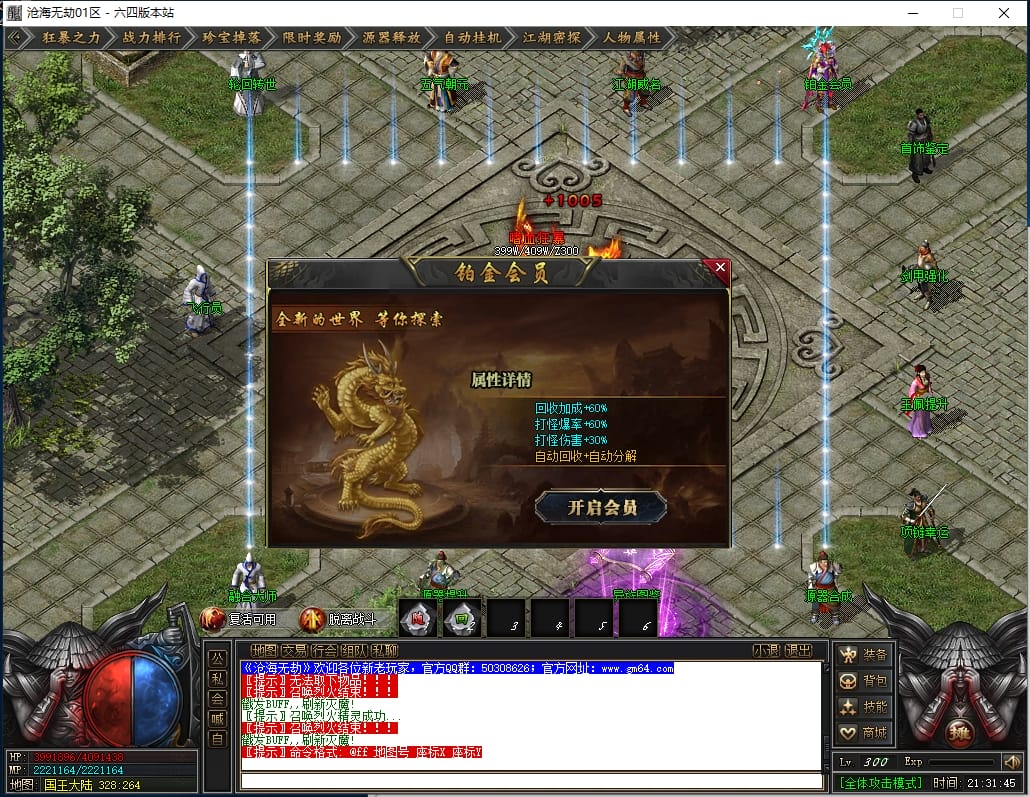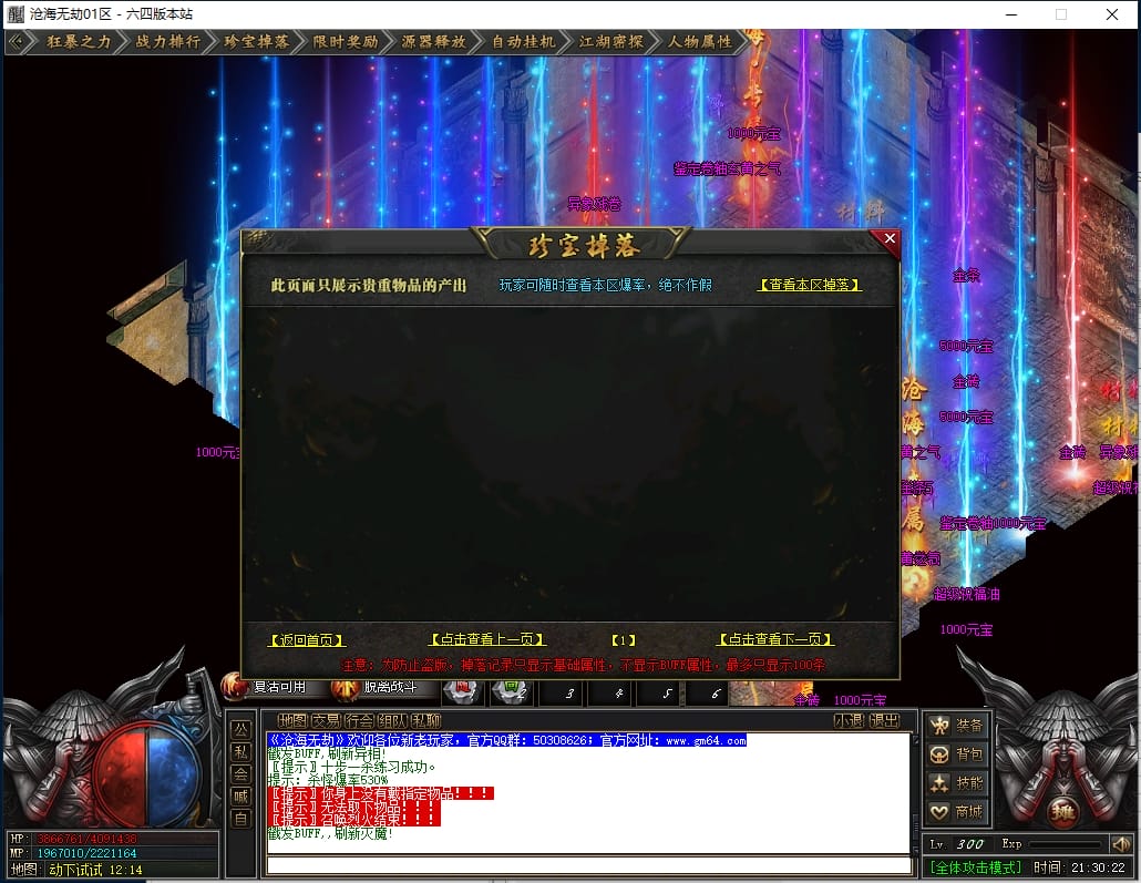总计:1050点券+38W元宝 《优势:爆率加成,自动回收,回收加成,搬砖必备》