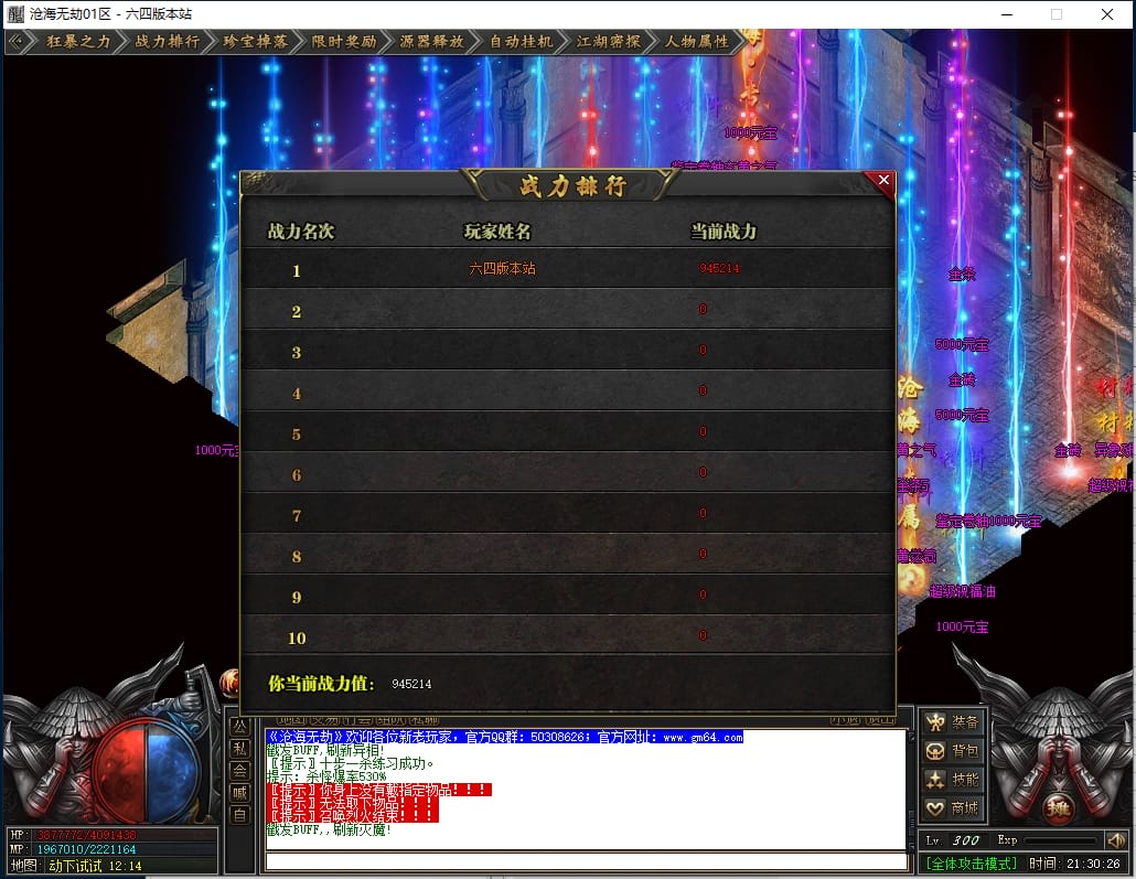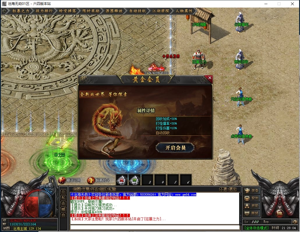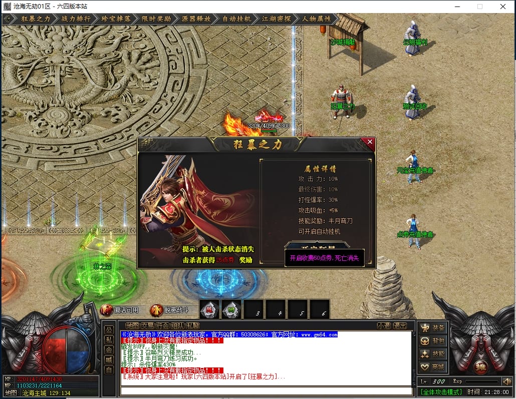 2.狂暴之力:开启需 50点券( 导航栏和主城npc都可开启)