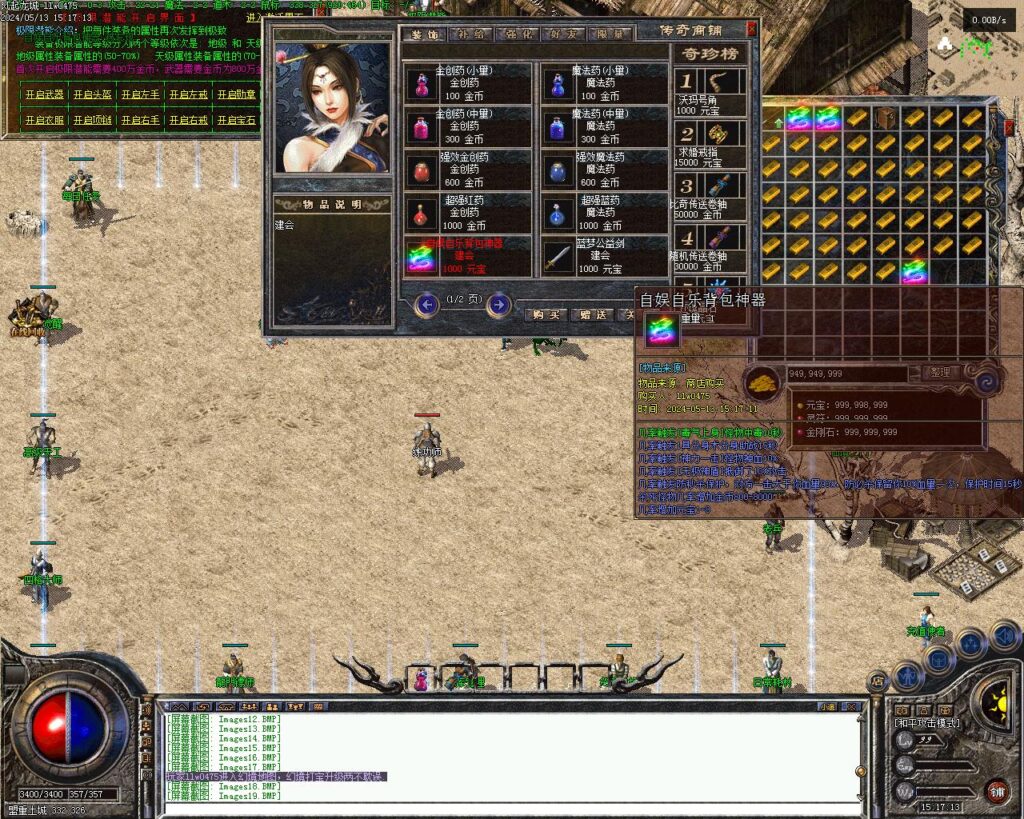 16.增加了货币兑换NPC,散人也可以兑换到充值,我设置的是金刚石兑换游戏点,游戏点就是充值,金刚石唯一获得途径是我新加的背包神器,