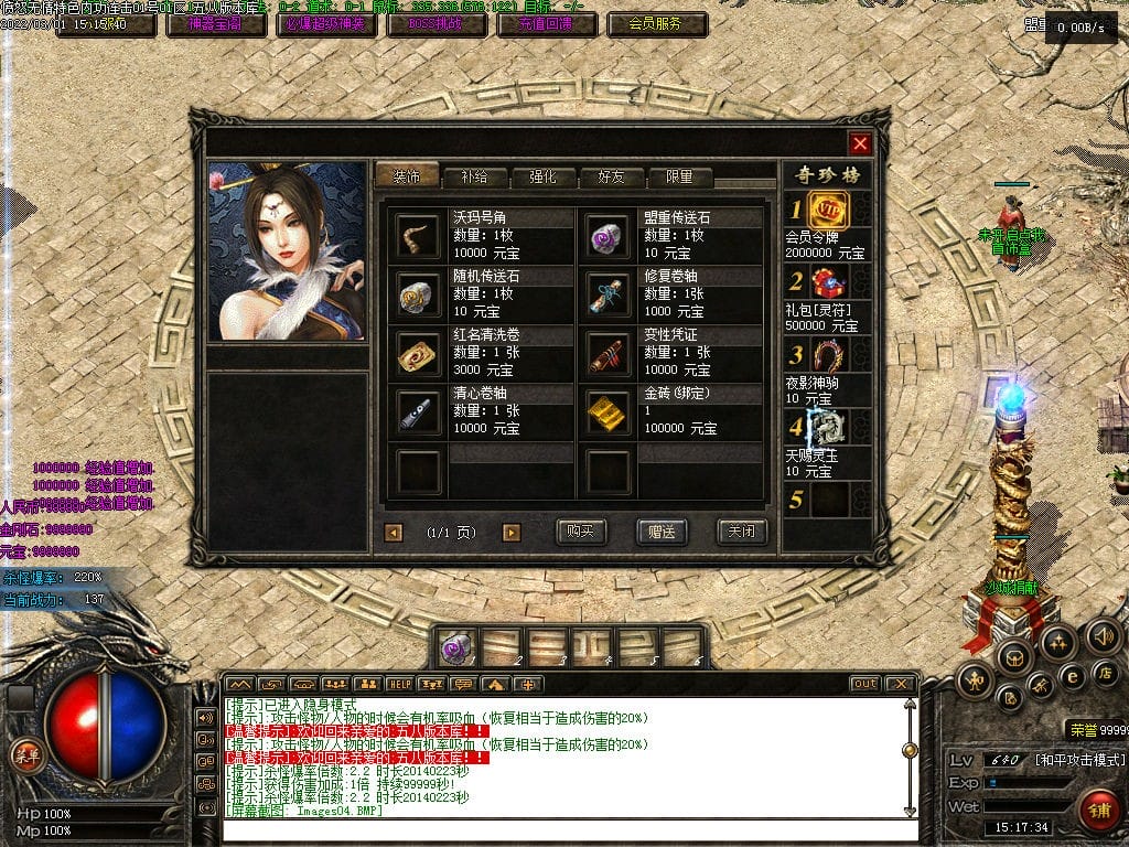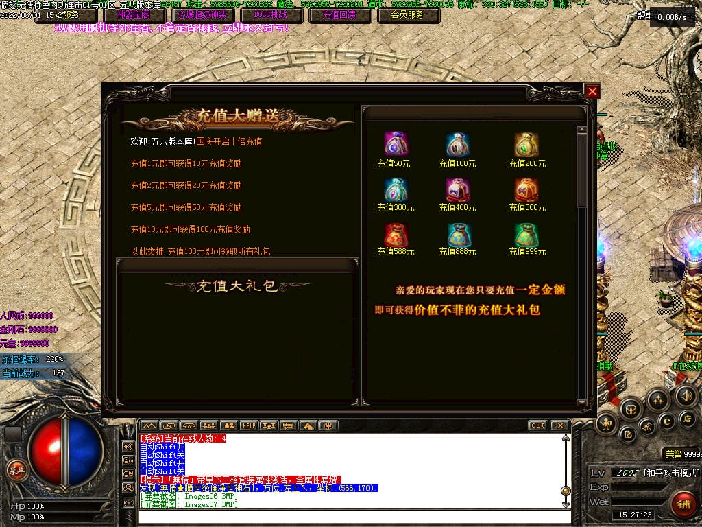 【尊敬的愤怒無情玩家】普通玩家泡点每秒100w只限安全区,会员玩家200w不限制任何地图的随身泡点!