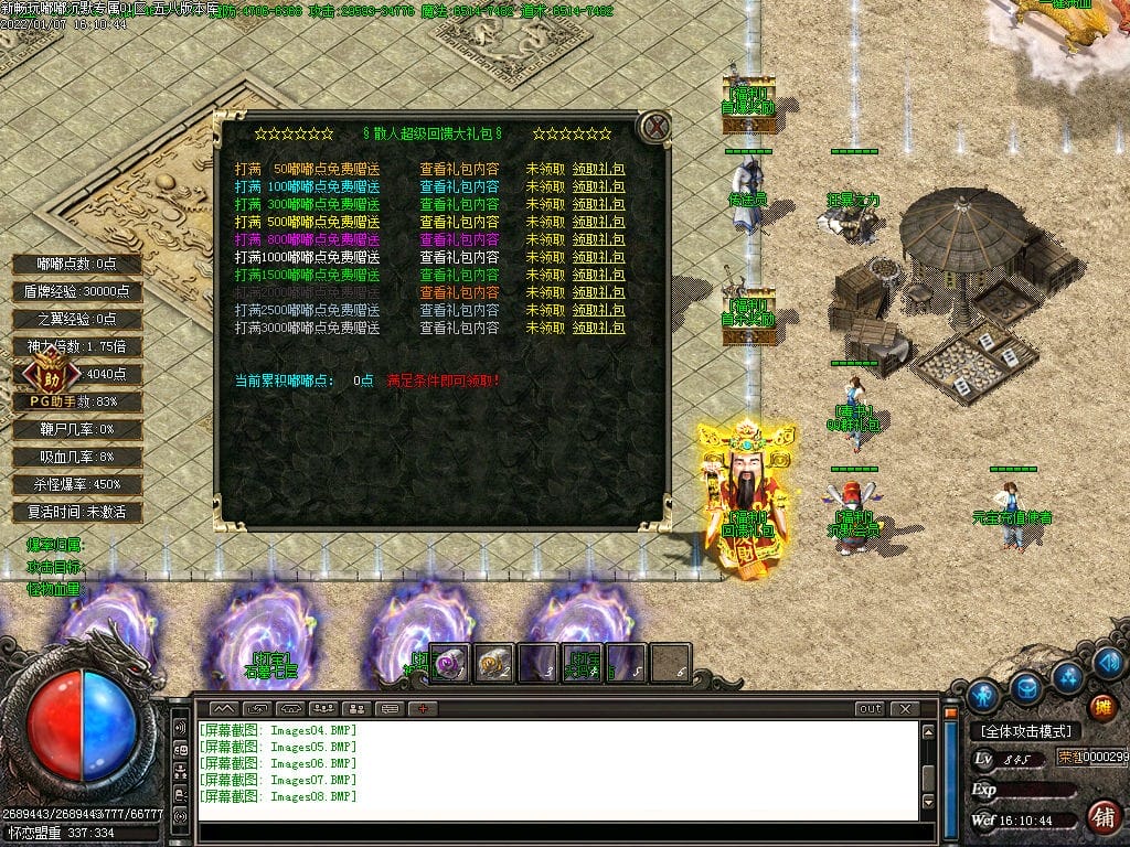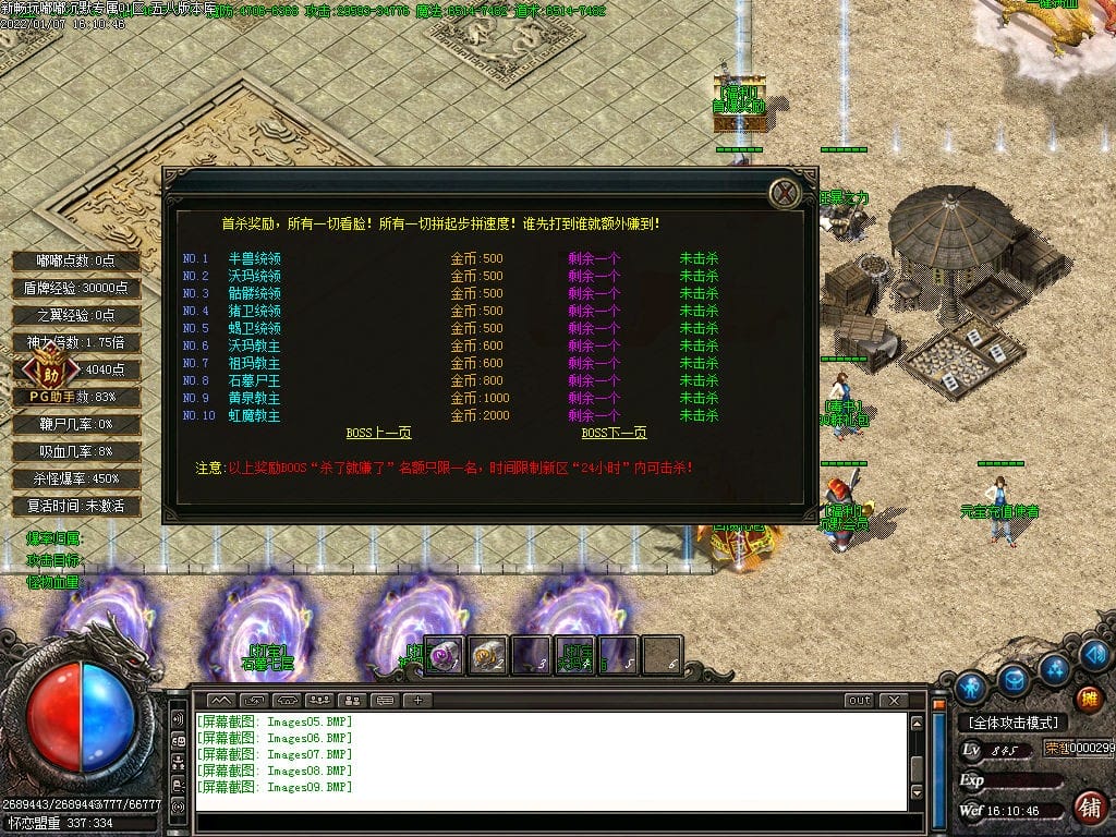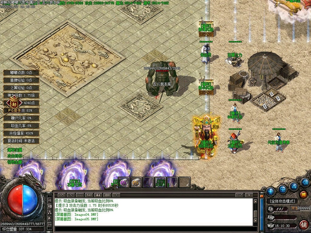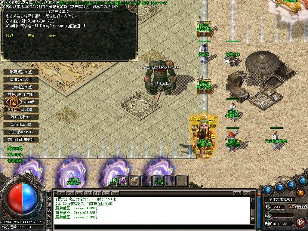 4、关于挂机:可以挂机(1大陆转生地图+所有城池野外)洞穴不能挂!