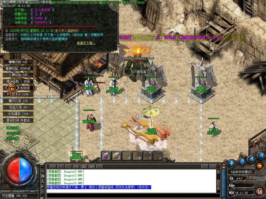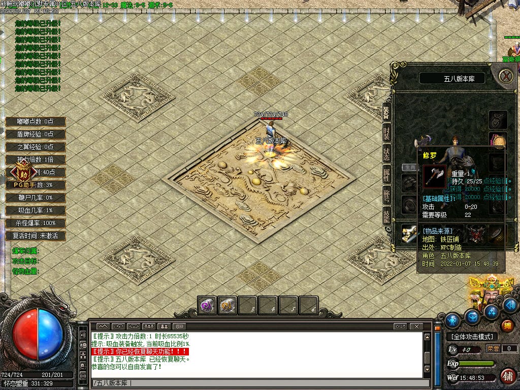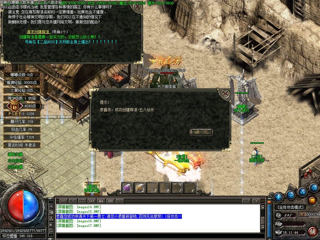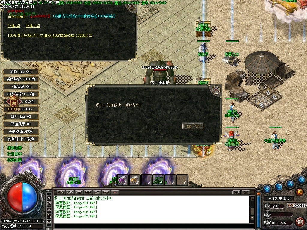 4、关于挂机:可以挂机(1大陆转生地图+所有城池野外)洞穴不能挂!