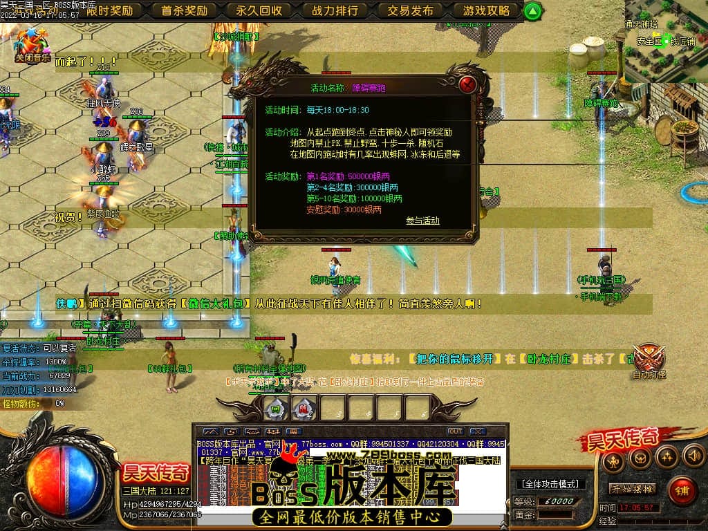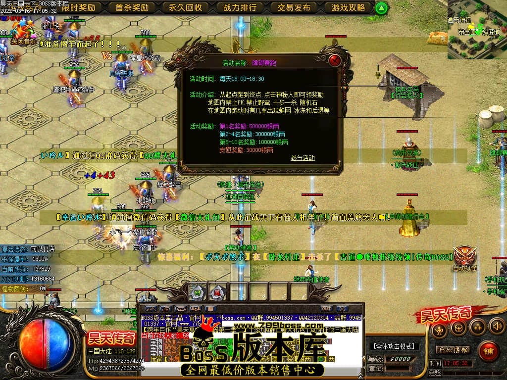全区活动:(天降福利)(BOSS降临)(天天酷跑)(世界BOSS)(必爆材料)(必爆神器)