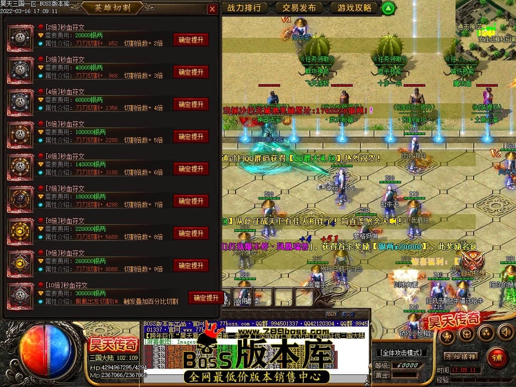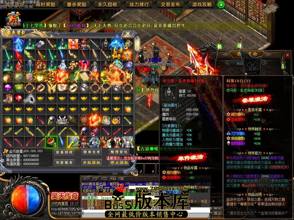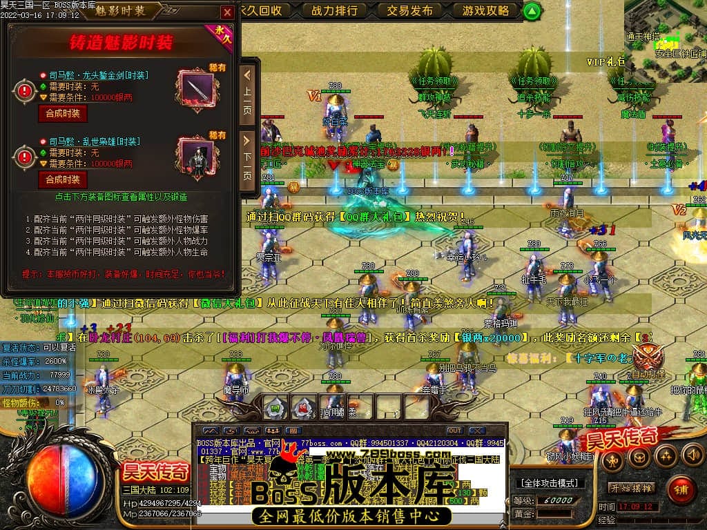 版本介绍:三国剧情单职业,精致UI,酷炫装备,装备多,刀速较快,内容丰富,吸金功能多,有好玩NPC,可独家,高消费
