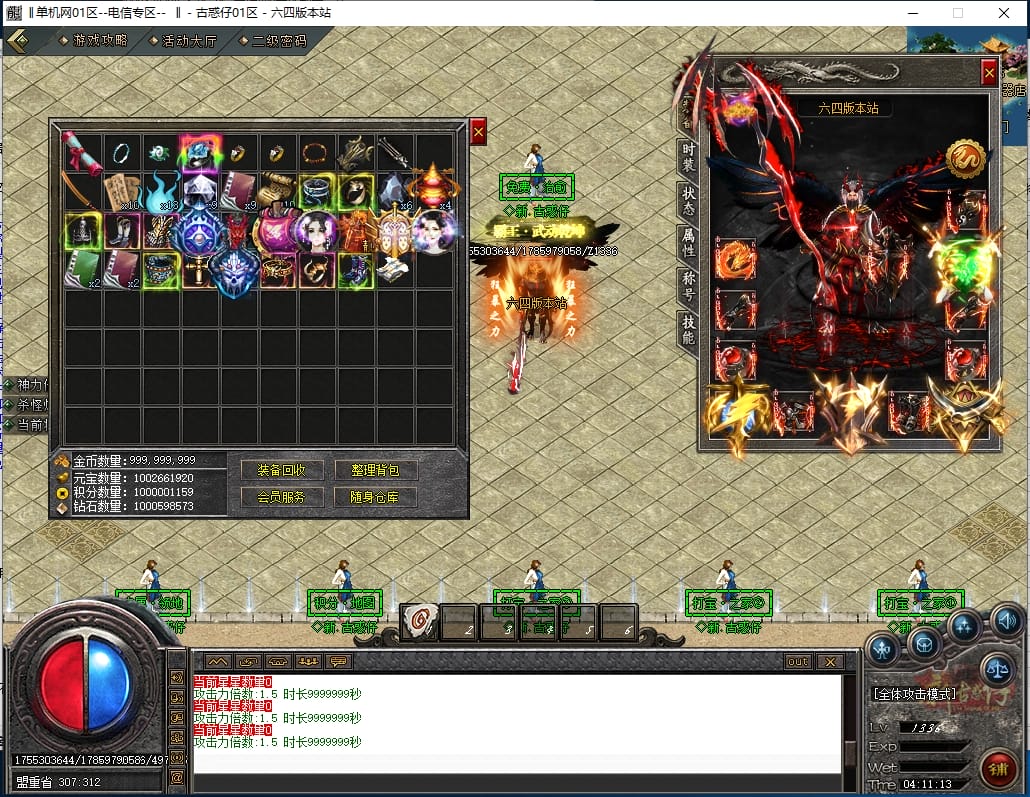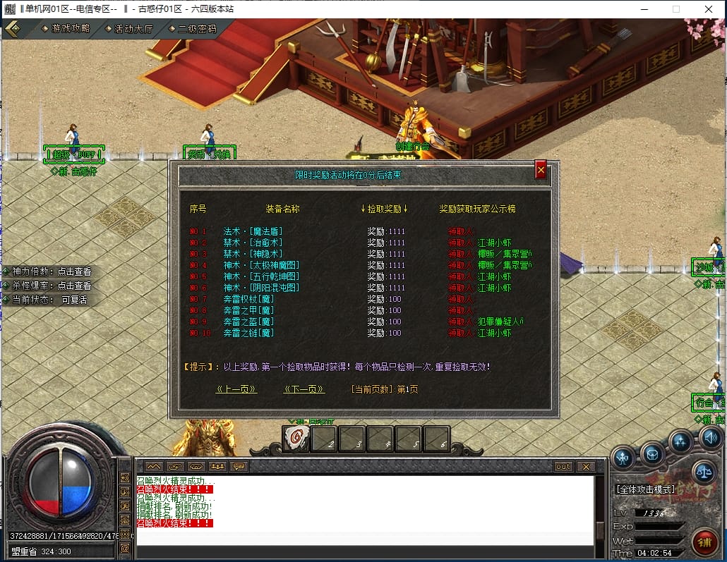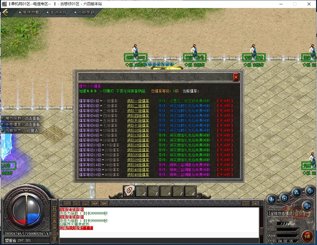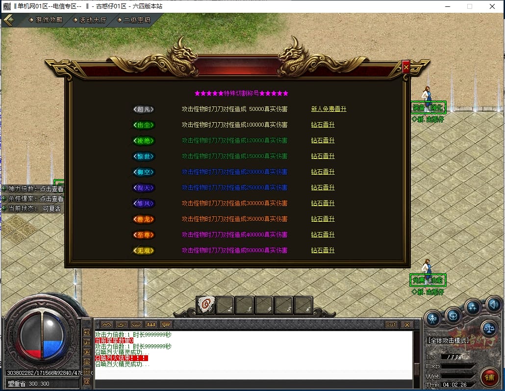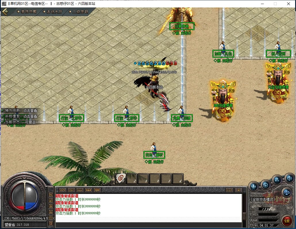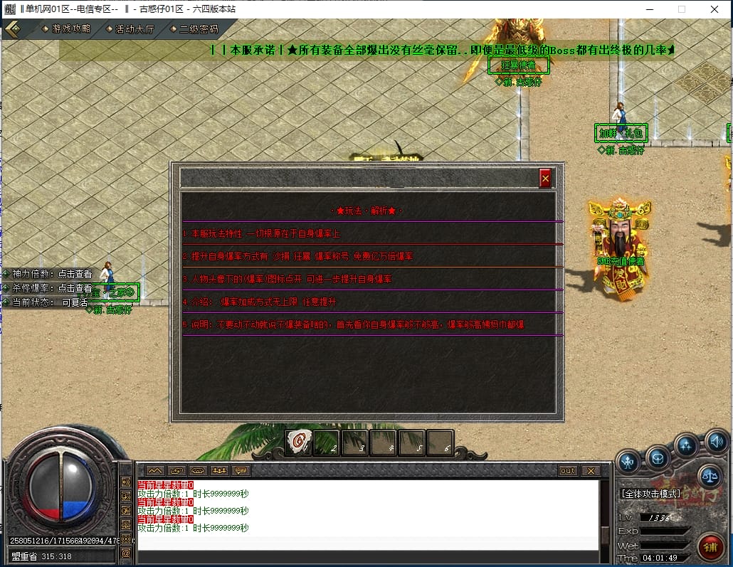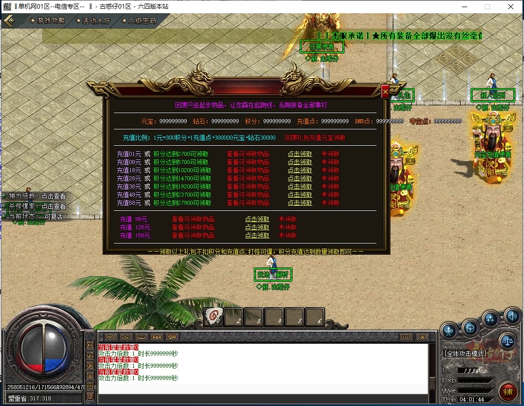 <重要:回馈使者处通过积分免费领取全部礼包!游戏内大量产出,终极装备全靠爆,怪物级越高爆率越高