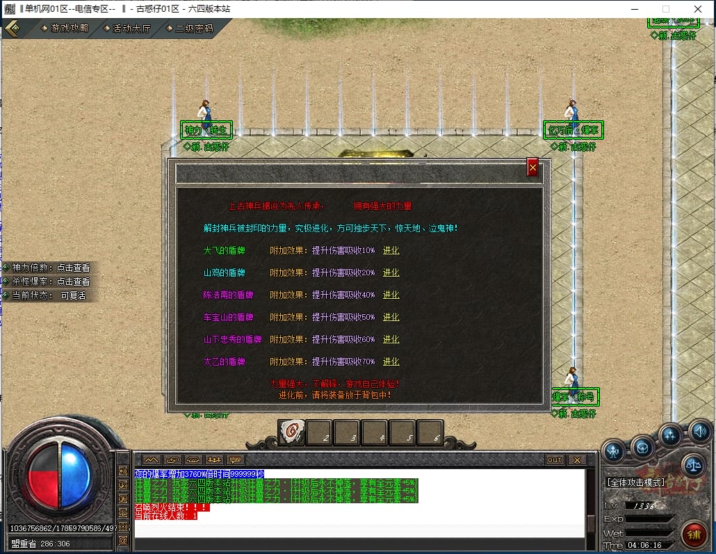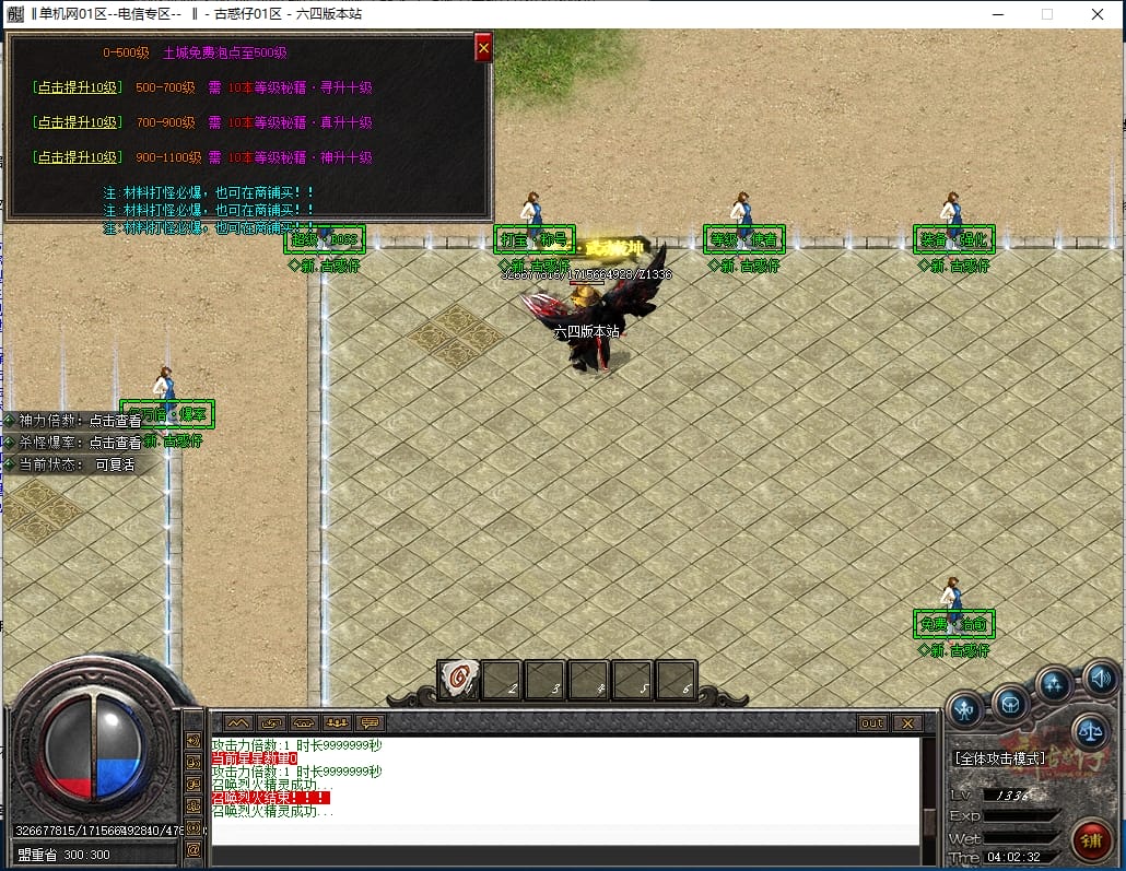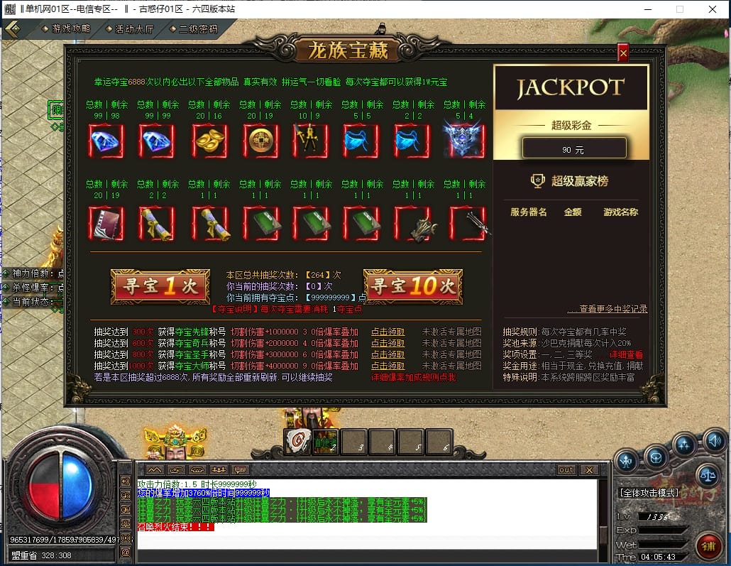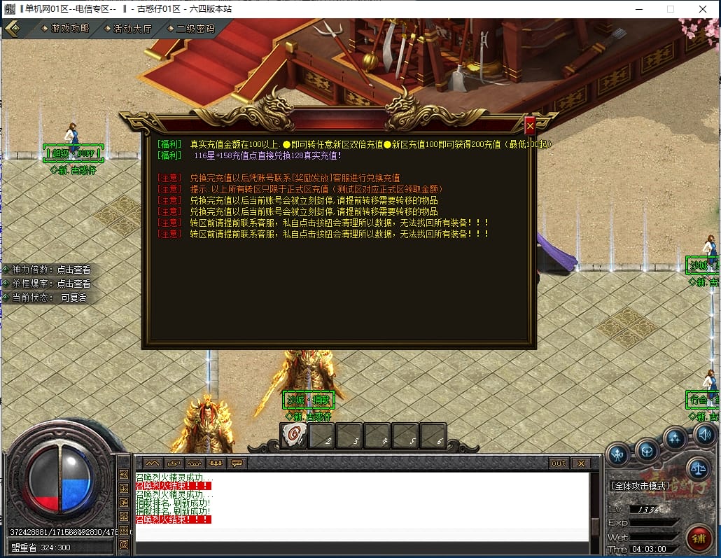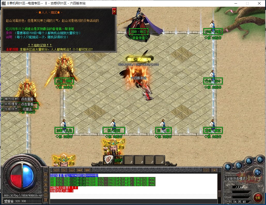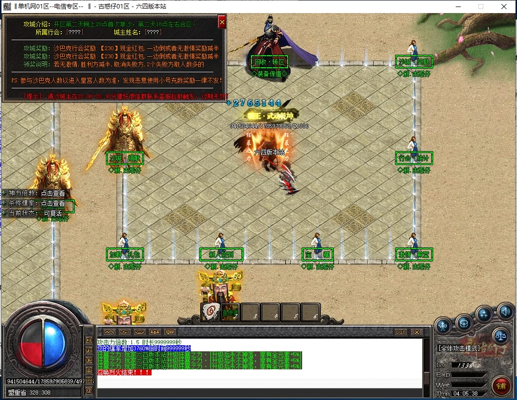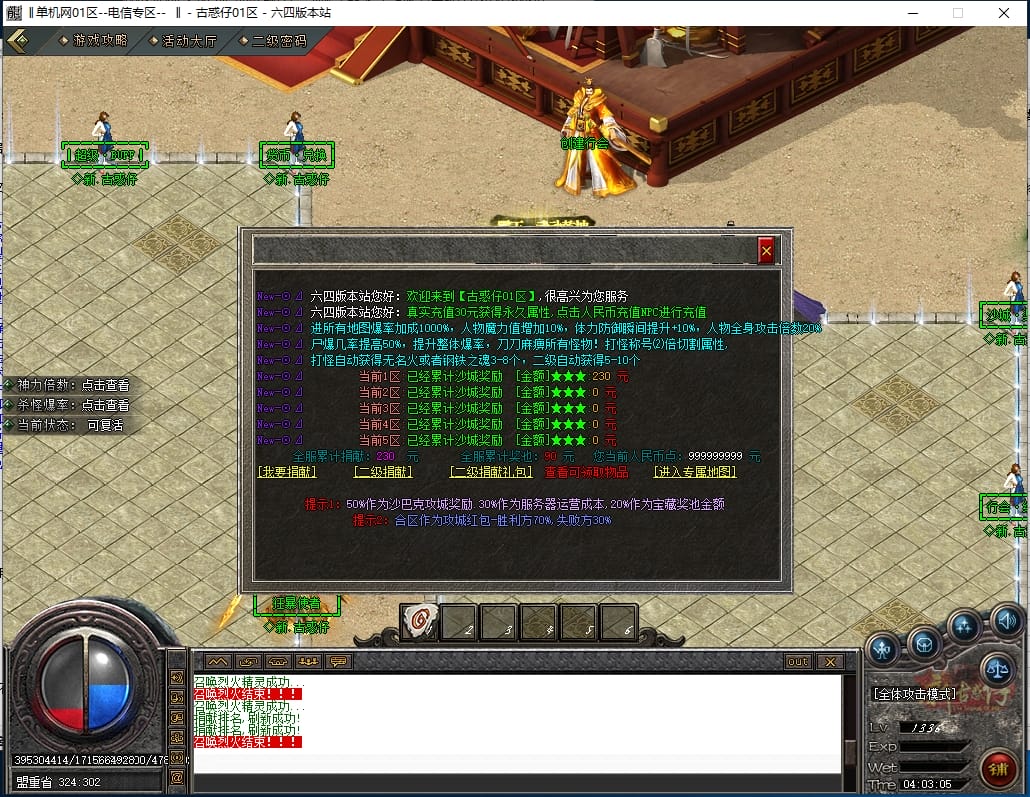 <重要:回馈使者处通过积分免费领取全部礼包!游戏内大量产出,终极装备全靠爆,怪物级越高爆率越高