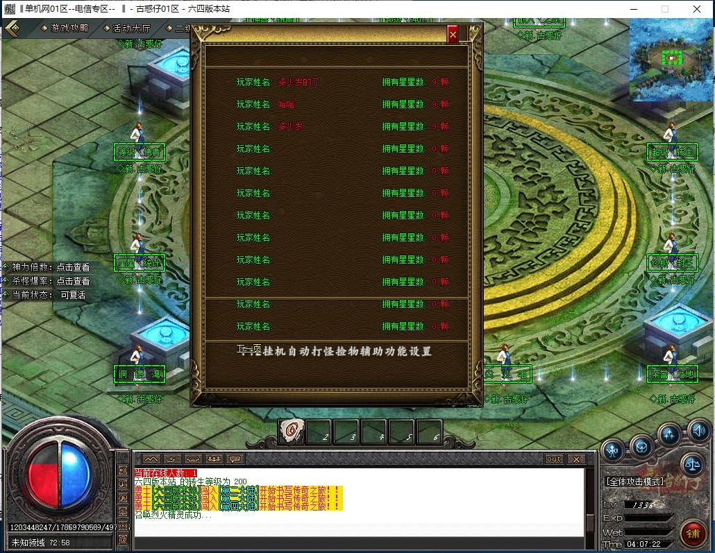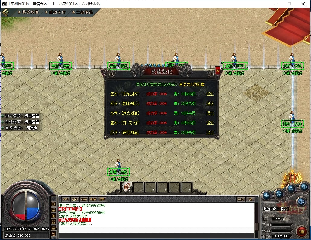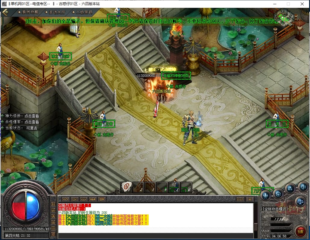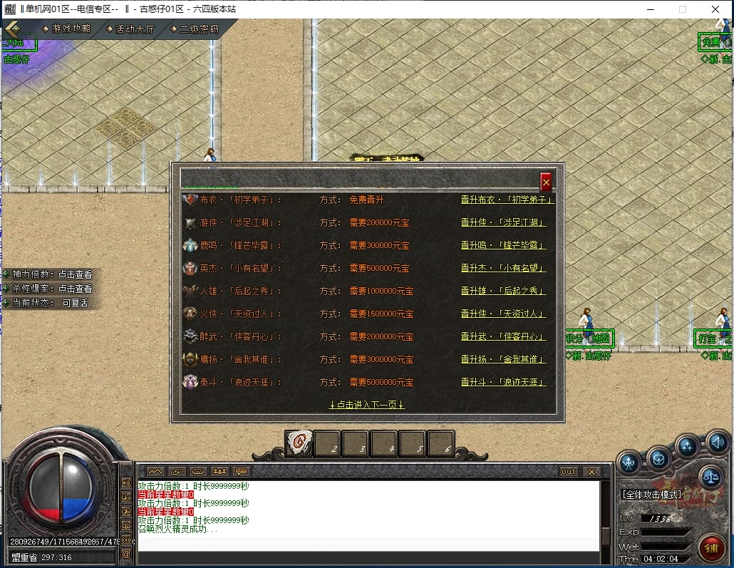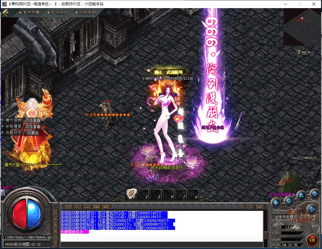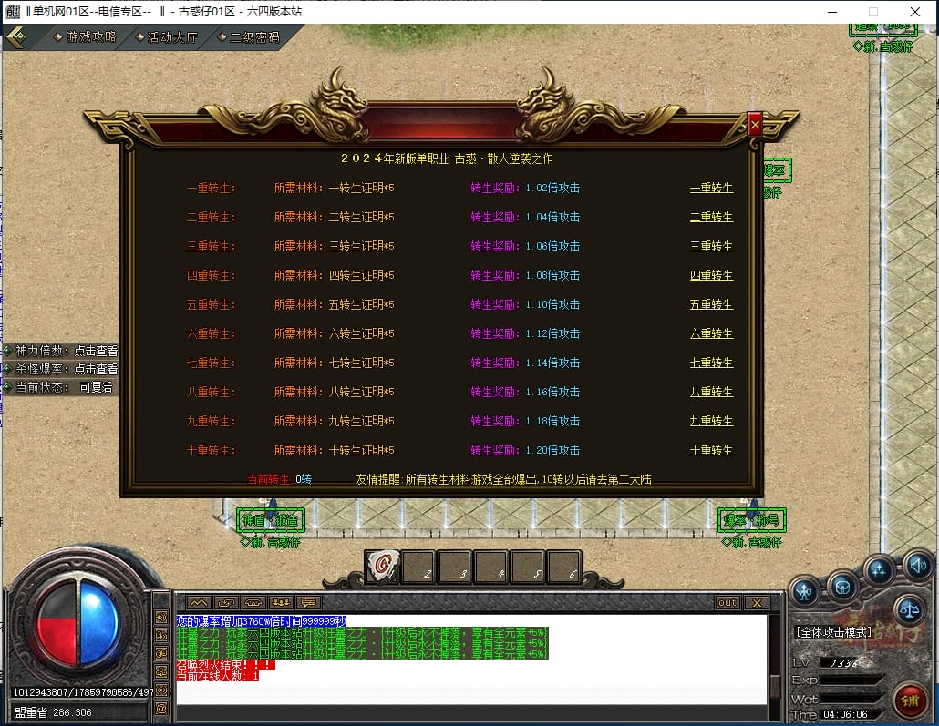 <4.散人路线:<先去新手地图打元宝,积分,装备,等级书,转生材料,然后下高级大陆。