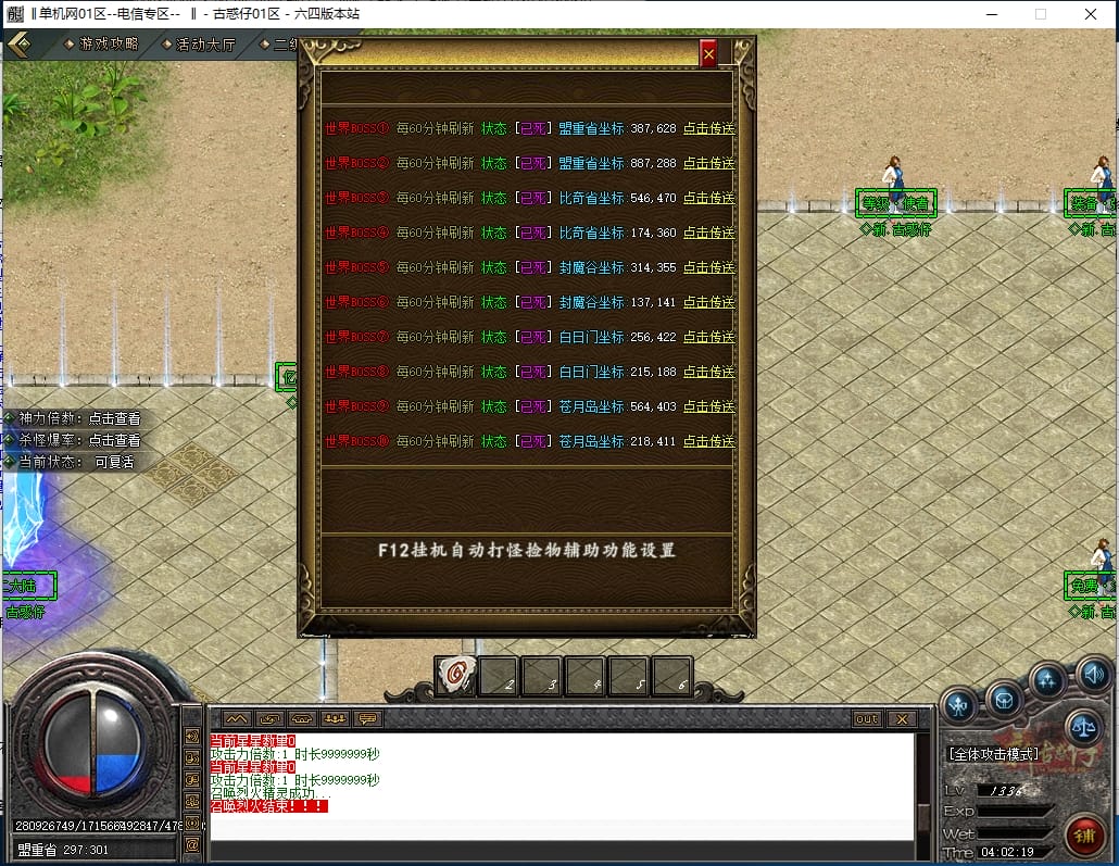 <爆率封号,地图越高级 BOSS的数量越多!